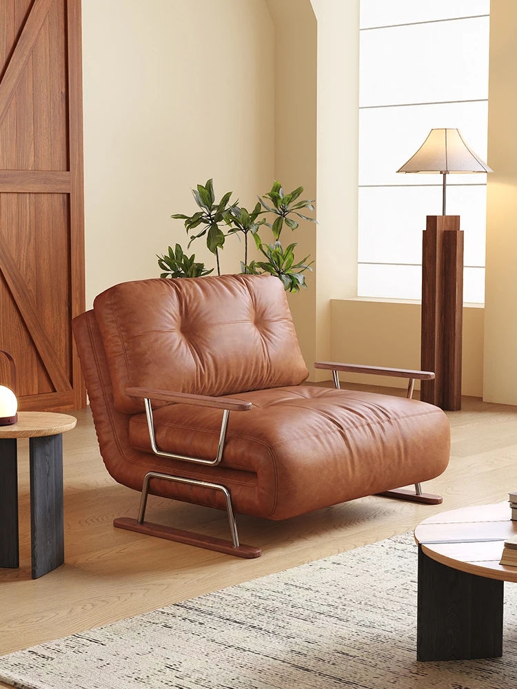 ワーナースパゼソファベッド 本革折りたたみ式 二用途一体型 シングル 2025年新作 小型住宅向け ヴィンテージ風 書斎に最適!快適な眠りとおしゃれなデザインを実現!