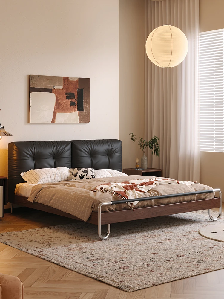 Wanas Cloud Pillow Solid Wood Bed - 2025 New Retro Style - 1.8m Double Leather Upholstered Bed for Master Bedroom - Perfect for Home Comfort and Elegant Design
