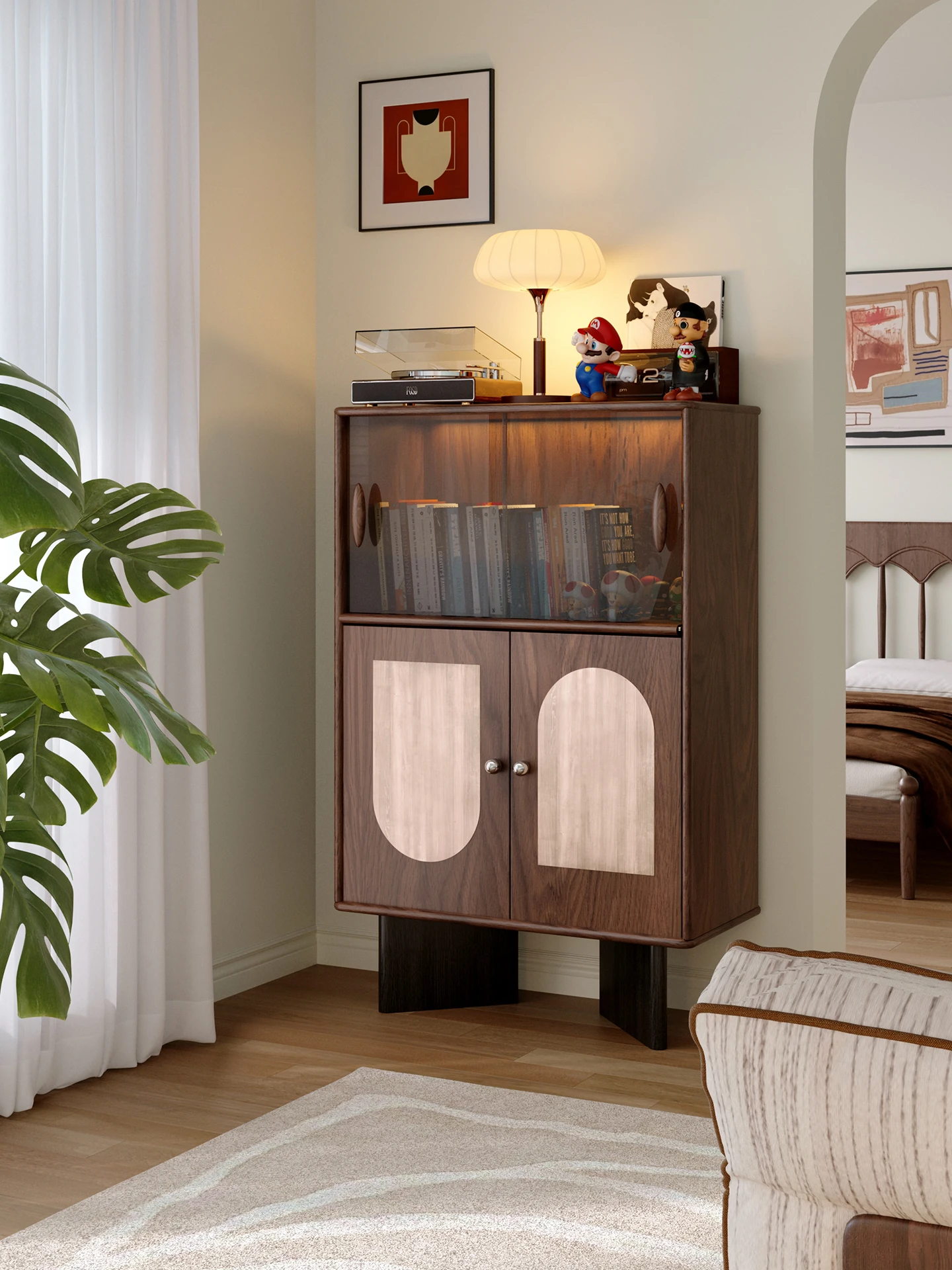 Huanas Vintage Style Solid Wood Side Cabinet - Spacious Storage and Elegant Glass Display Cabinet for a Luxurious Living Room Experience