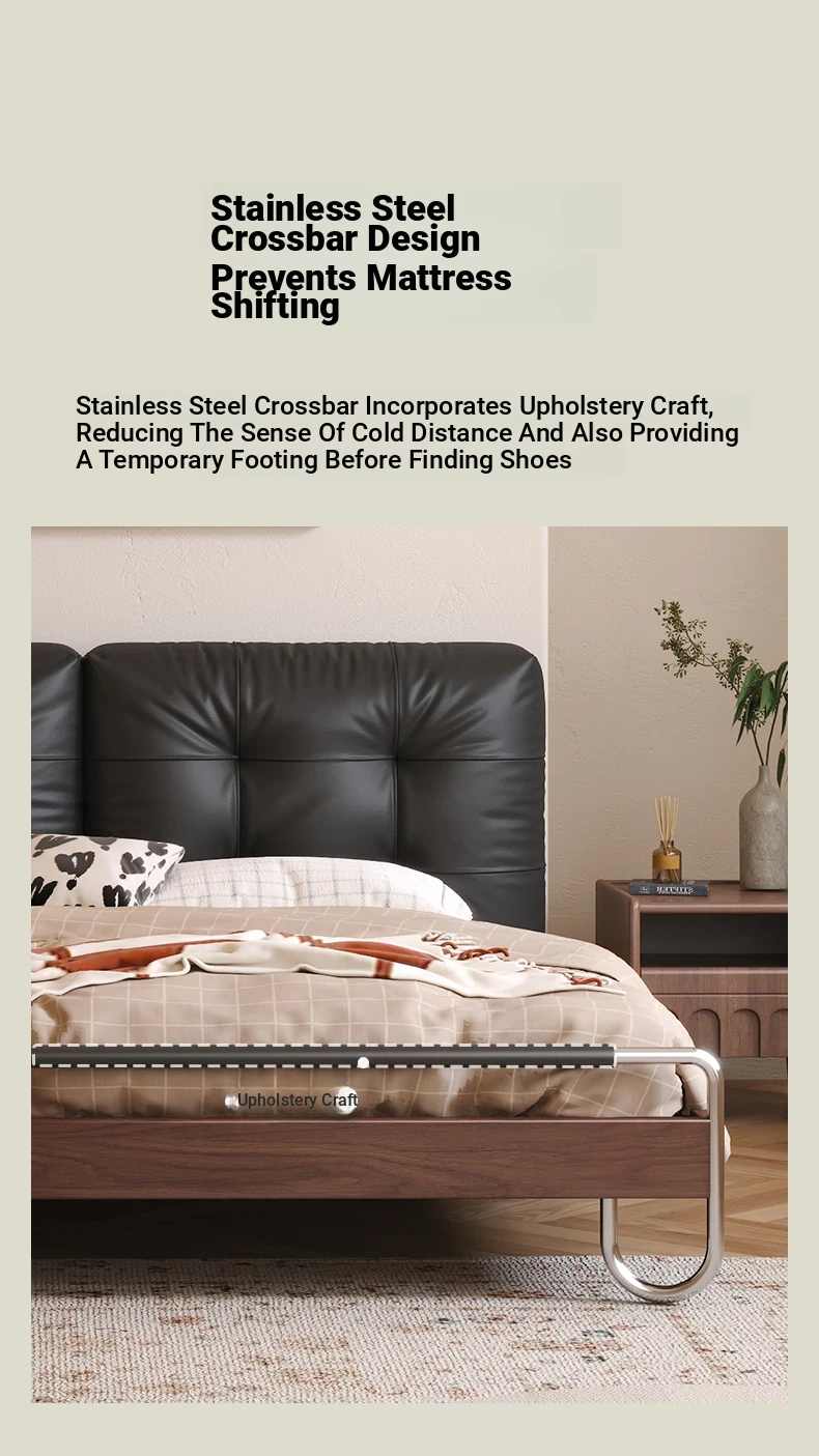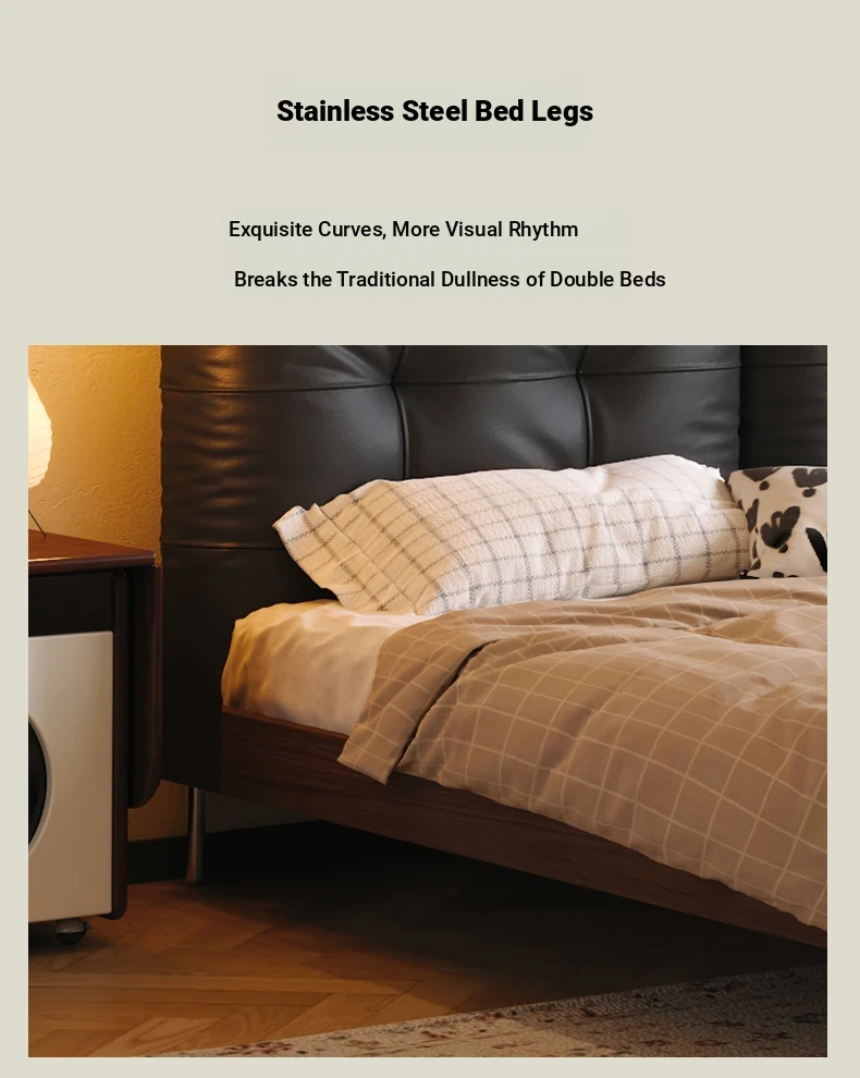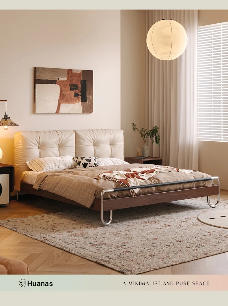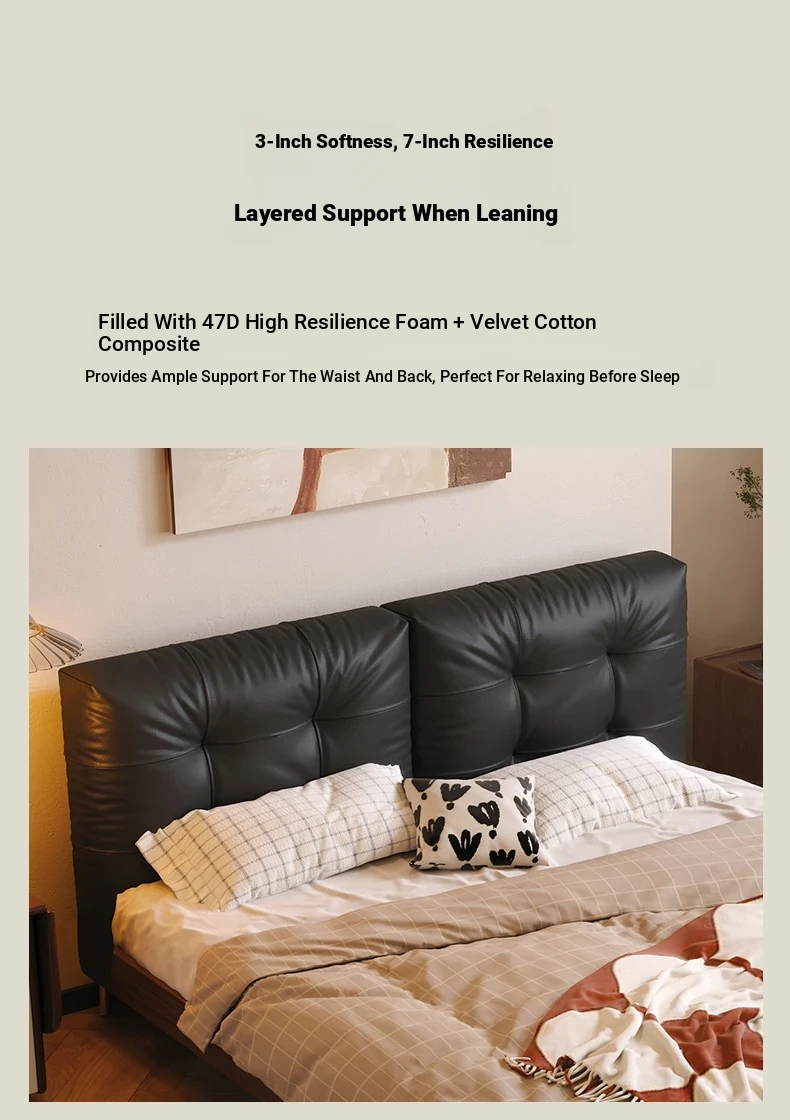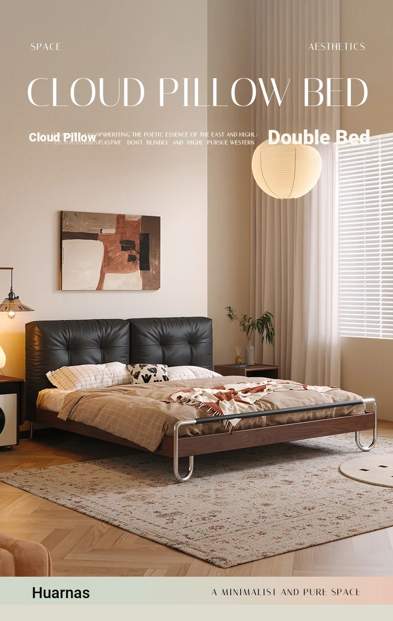 Wanas Cloud Pillow Solid Wood Bed - 2025 New Retro Style - 1.8m Double Leather Upholstered Bed for Master Bedroom - Perfect for Home Comfort and Elegant Design