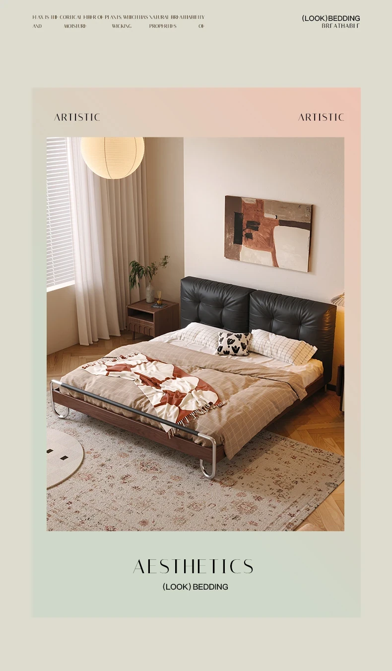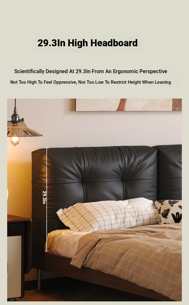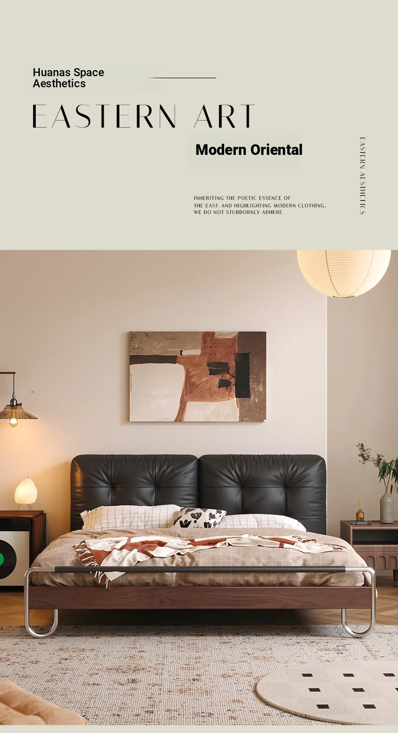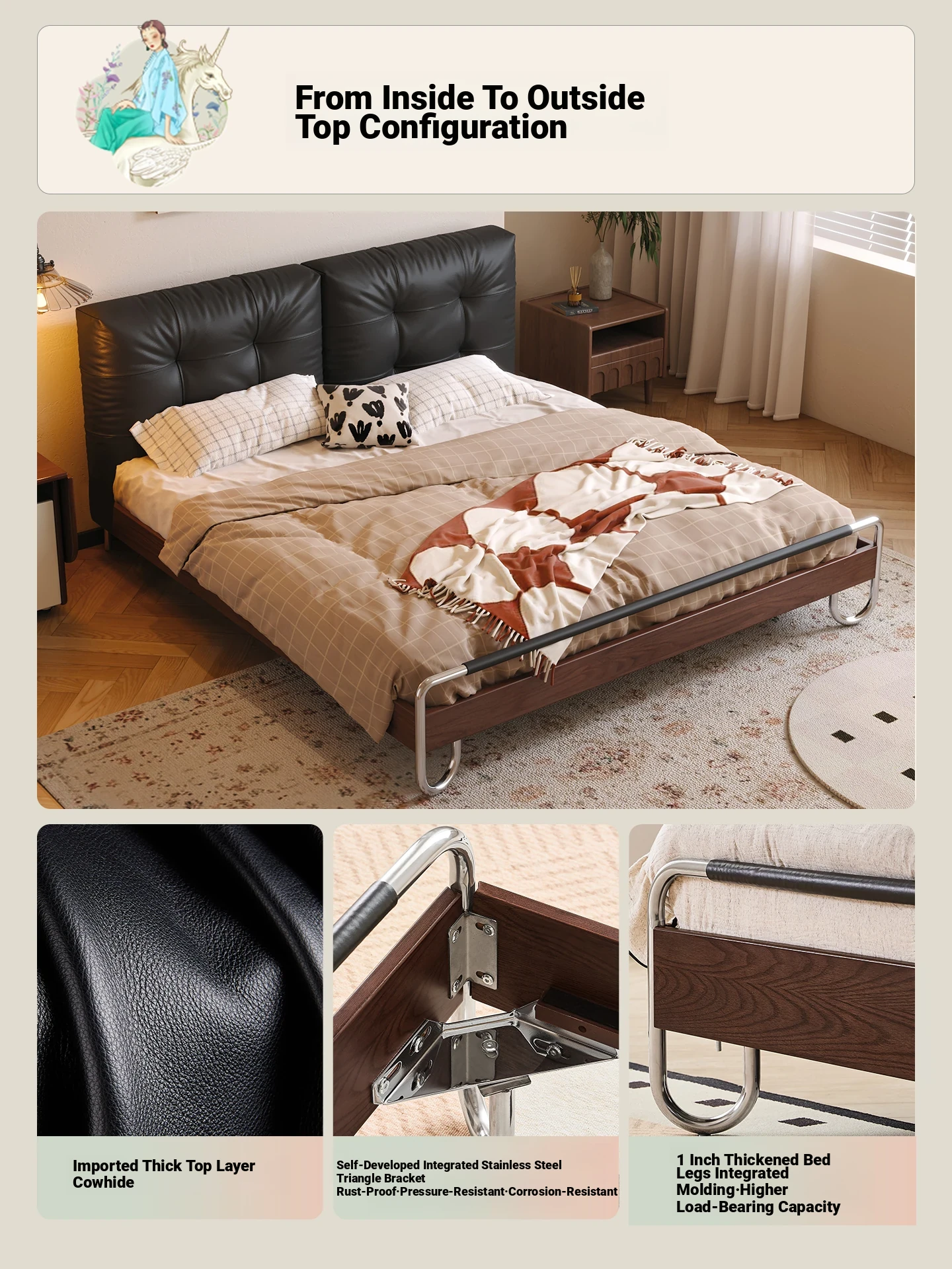 Wanas Cloud Pillow Solid Wood Bed - 2025 New Retro Style - 1.8m Double Leather Upholstered Bed for Master Bedroom - Perfect for Home Comfort and Elegant Design