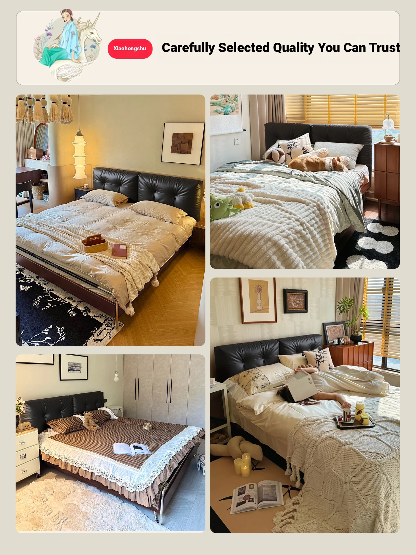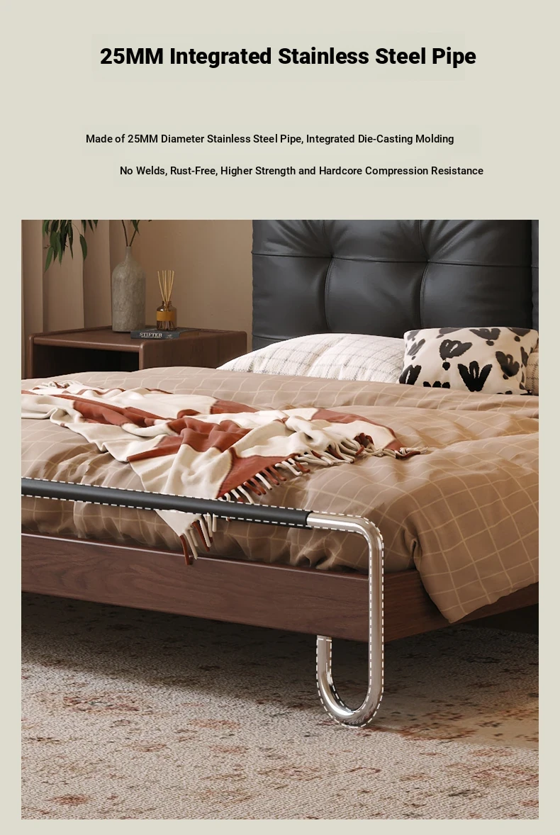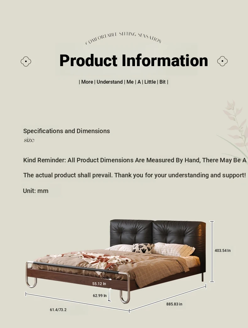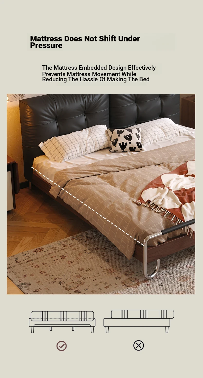 Wanas Cloud Pillow Solid Wood Bed - 2025 New Retro Style - 1.8m Double Leather Upholstered Bed for Master Bedroom - Perfect for Home Comfort and Elegant Design