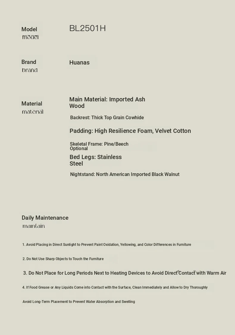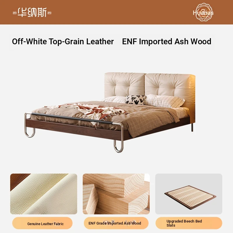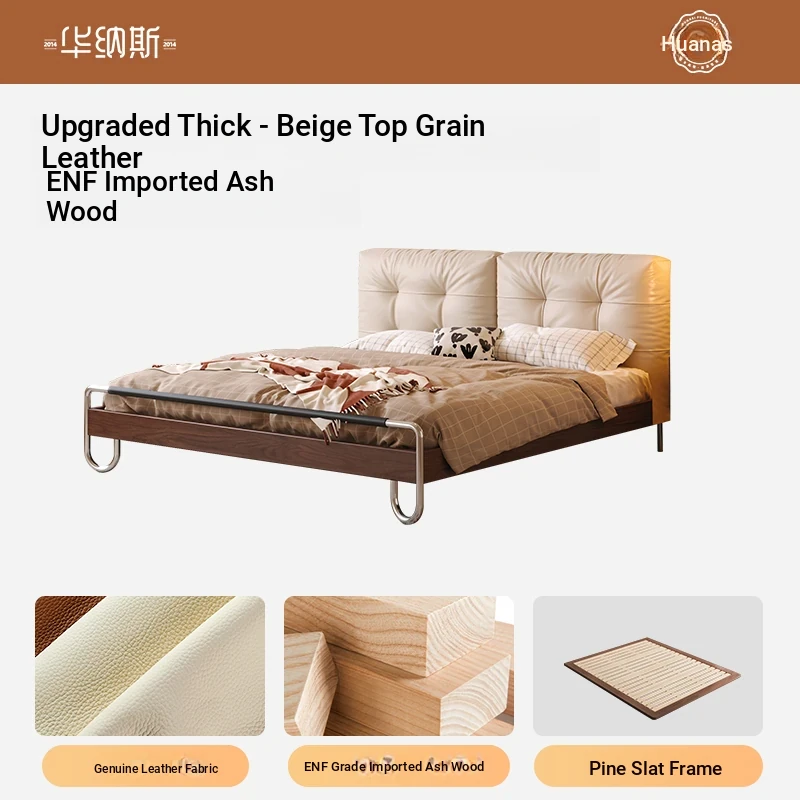 [ENF Import Ash Bed] [Upgrade thickened] Top Leather Bag/Rice White + Encrypted Beech Bed