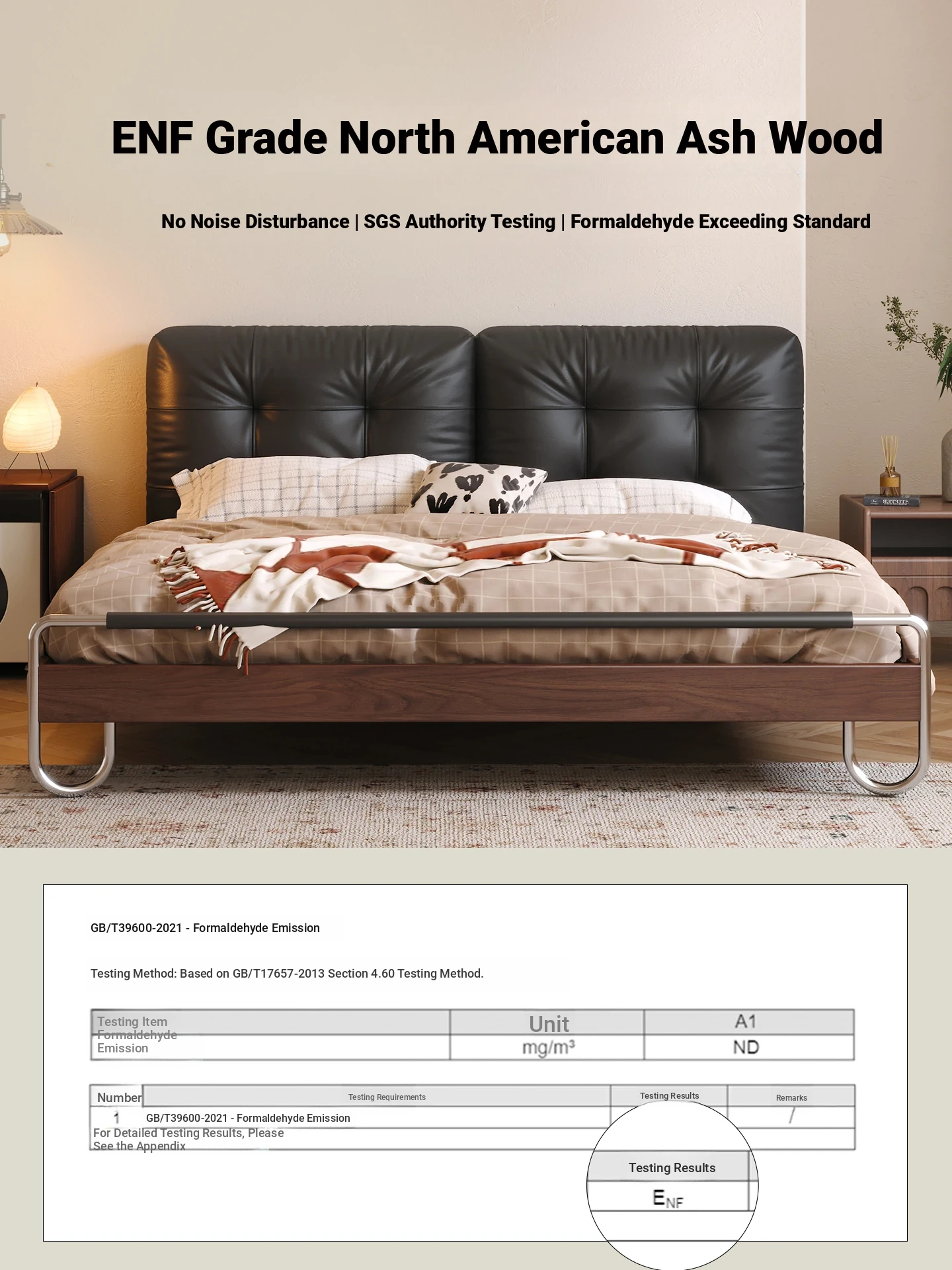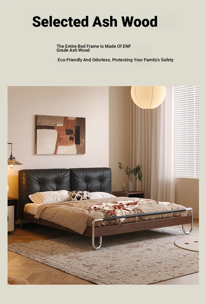 [ENF Import Ash Wood Bed] [Upgrade thickened] Top Leather Bag/Black + Pine Rack