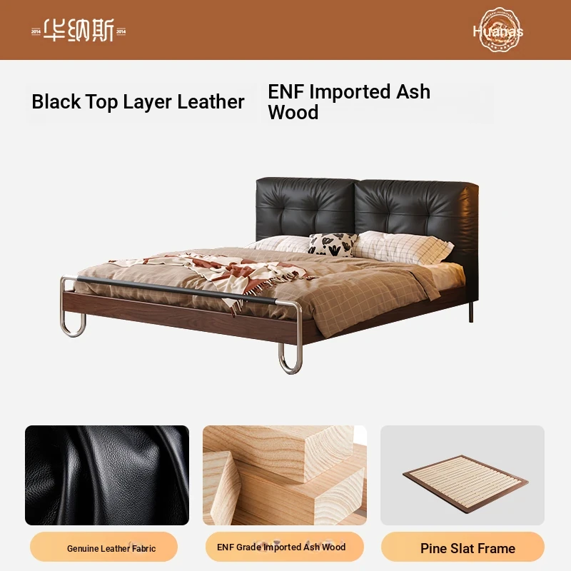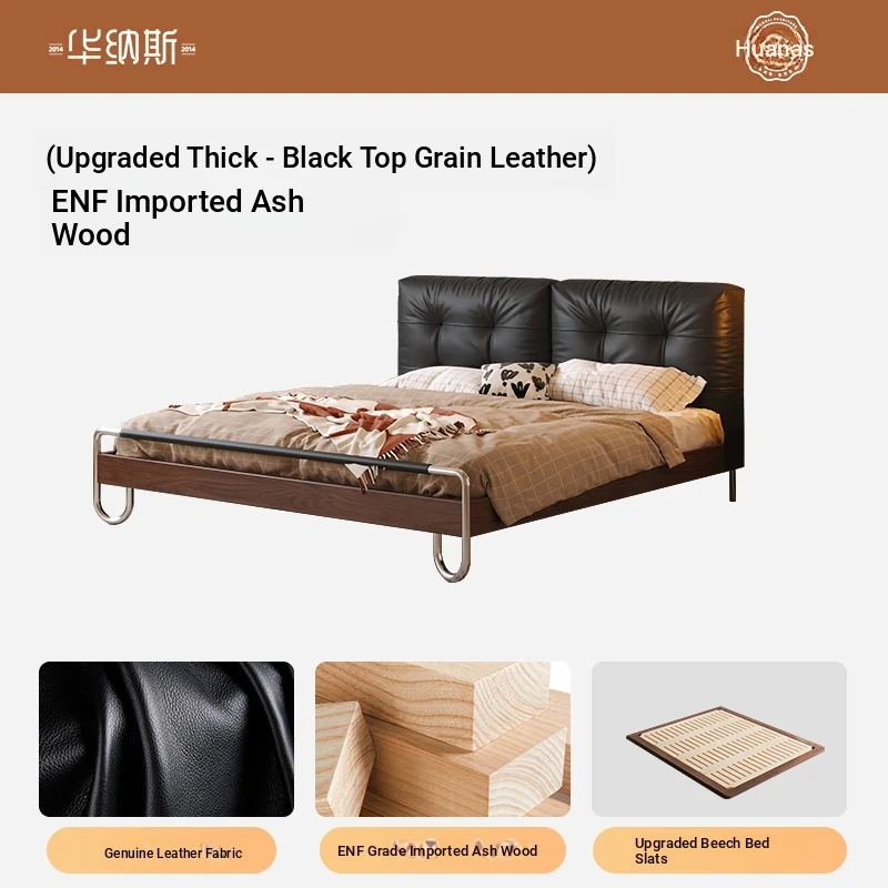 [ENF Import ash bed] [upgrade thickened] first layer leather bag/black + encryption beech bed