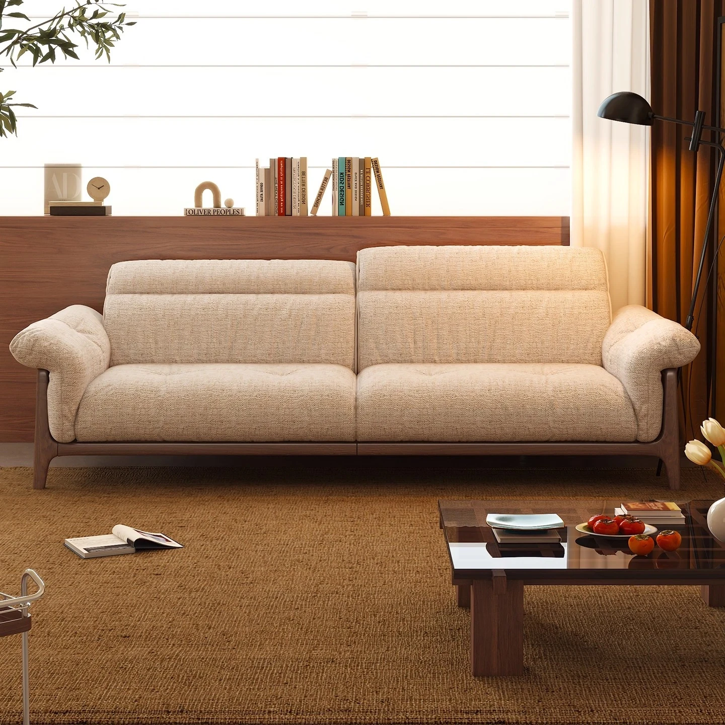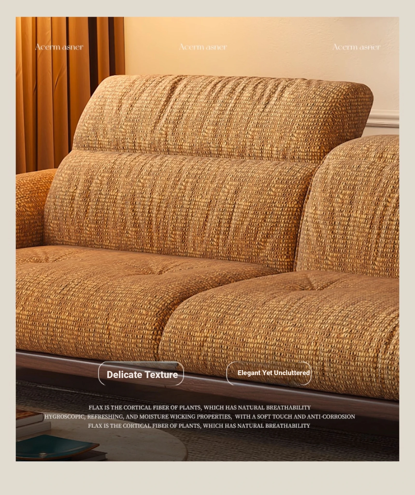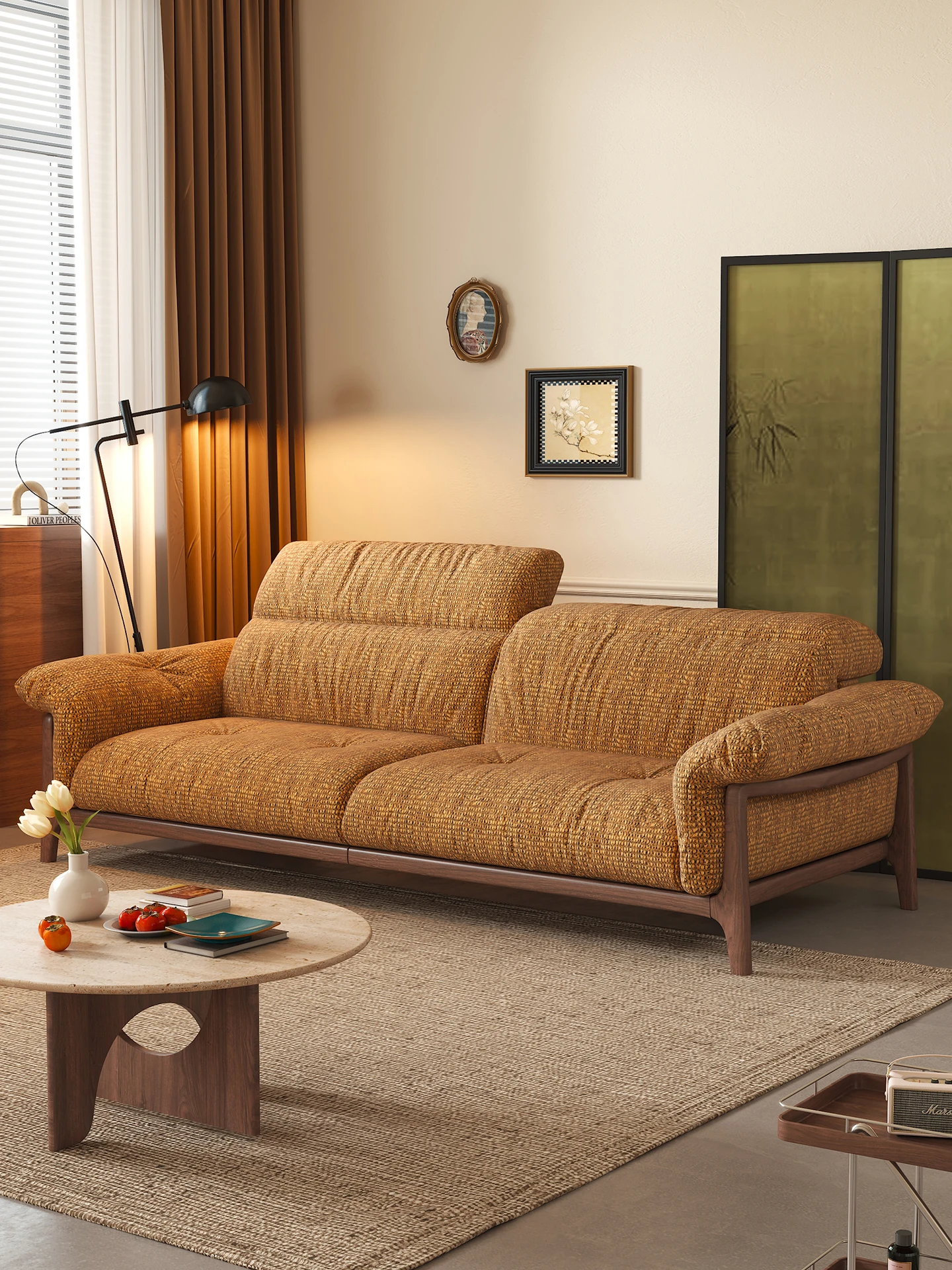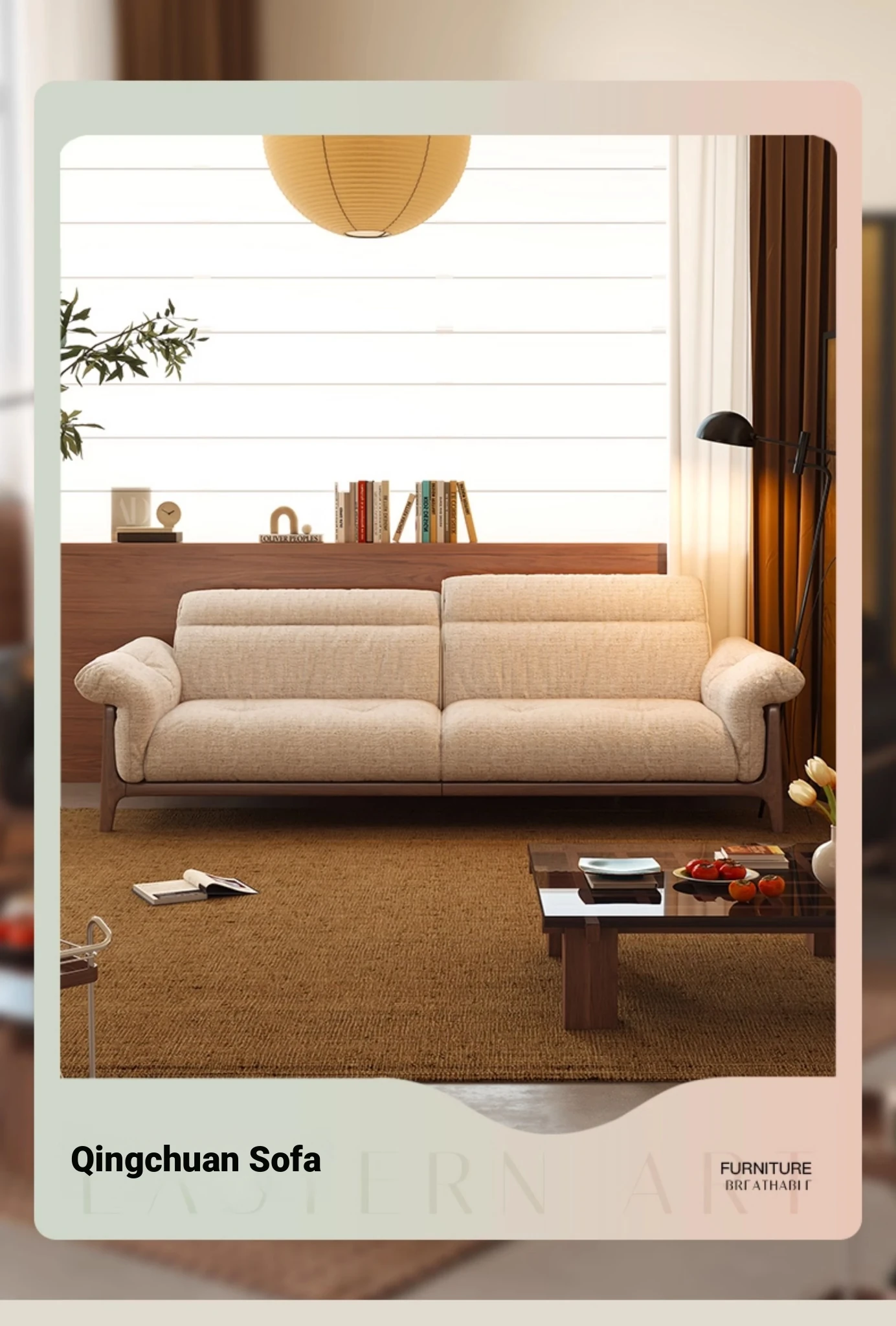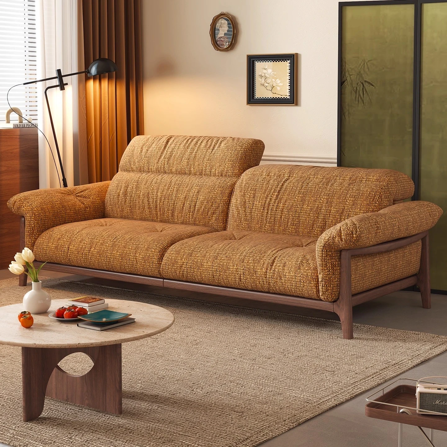 Wanas Qingchuan Vintage Solid Wood Adjustable Backrest Sofa - Removable and Washable Fabric for Living Room - 2025 New Collection