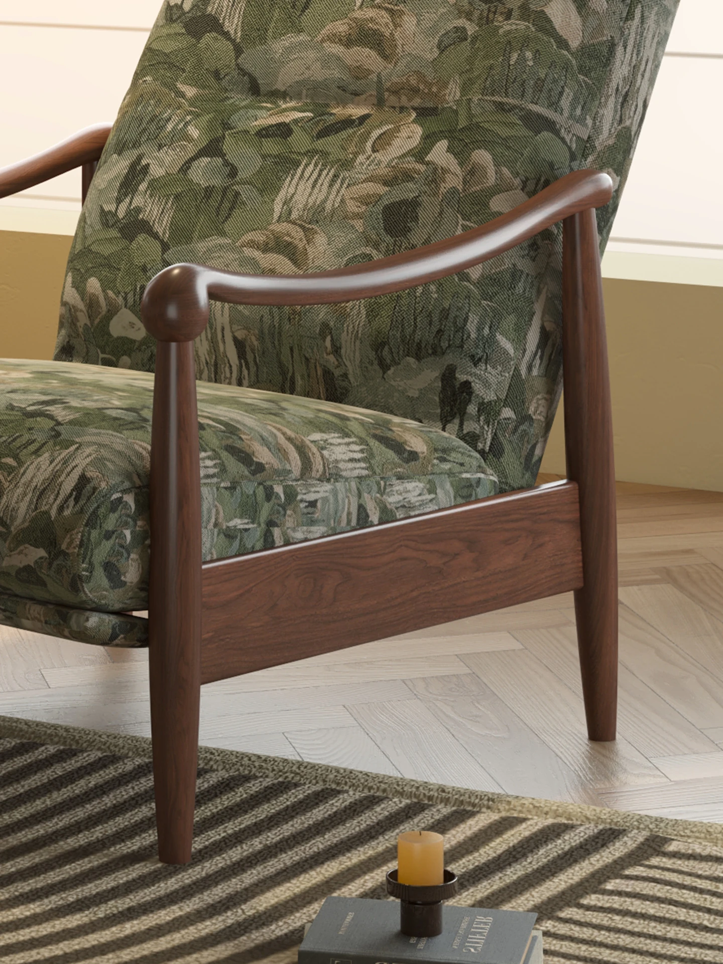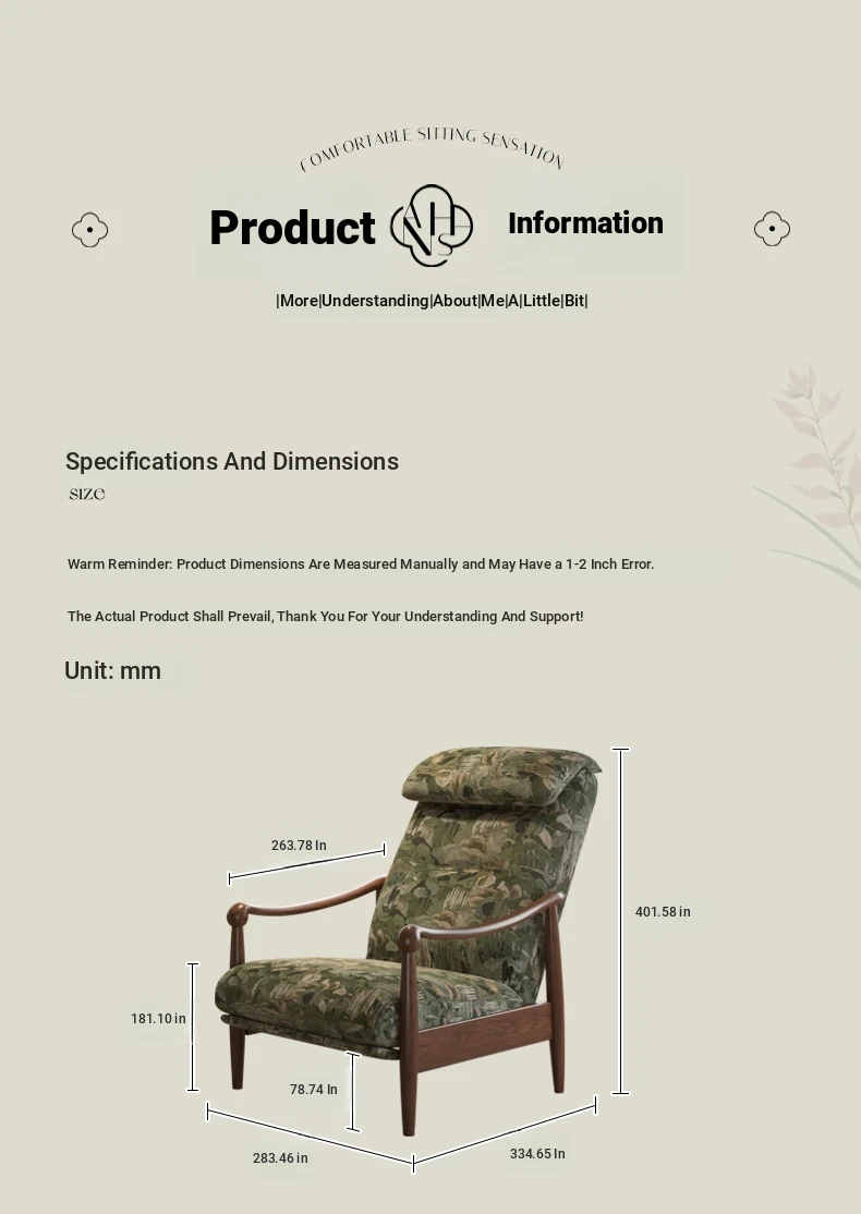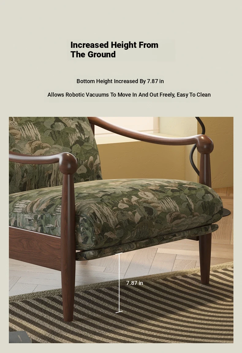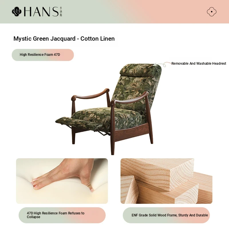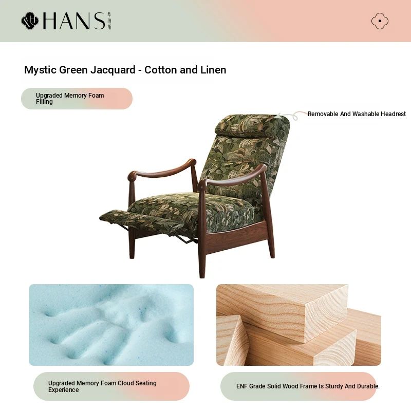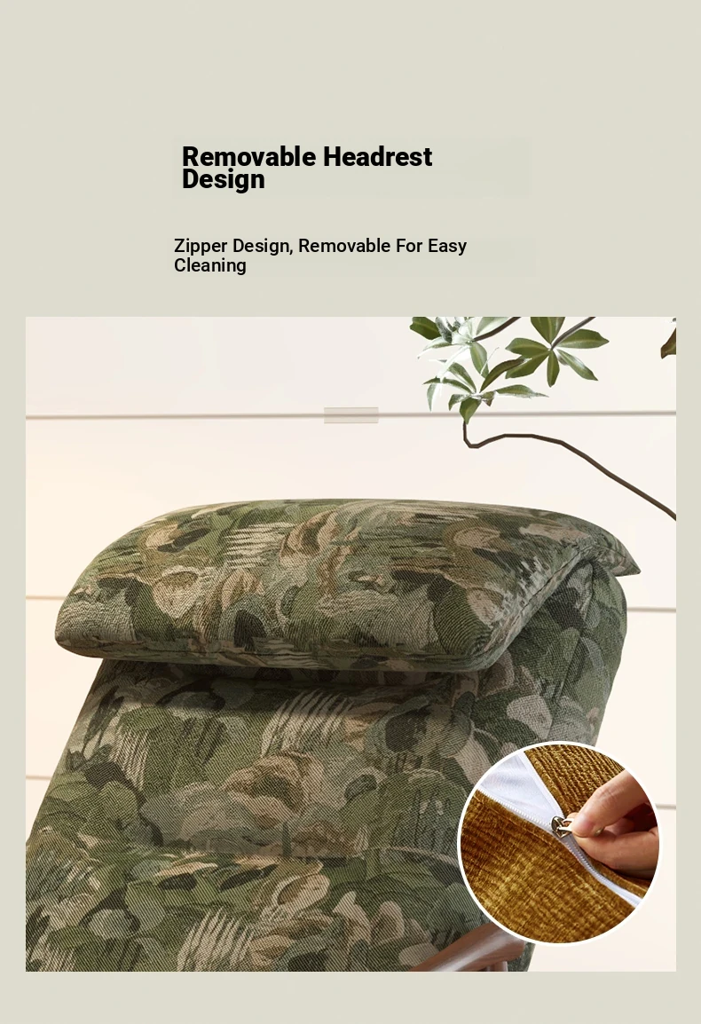 【Imported North American White Ash Sofa Chair】Mystic Green Jacquard - Upgraded Cotton Linen Headrest, Removable & Washable