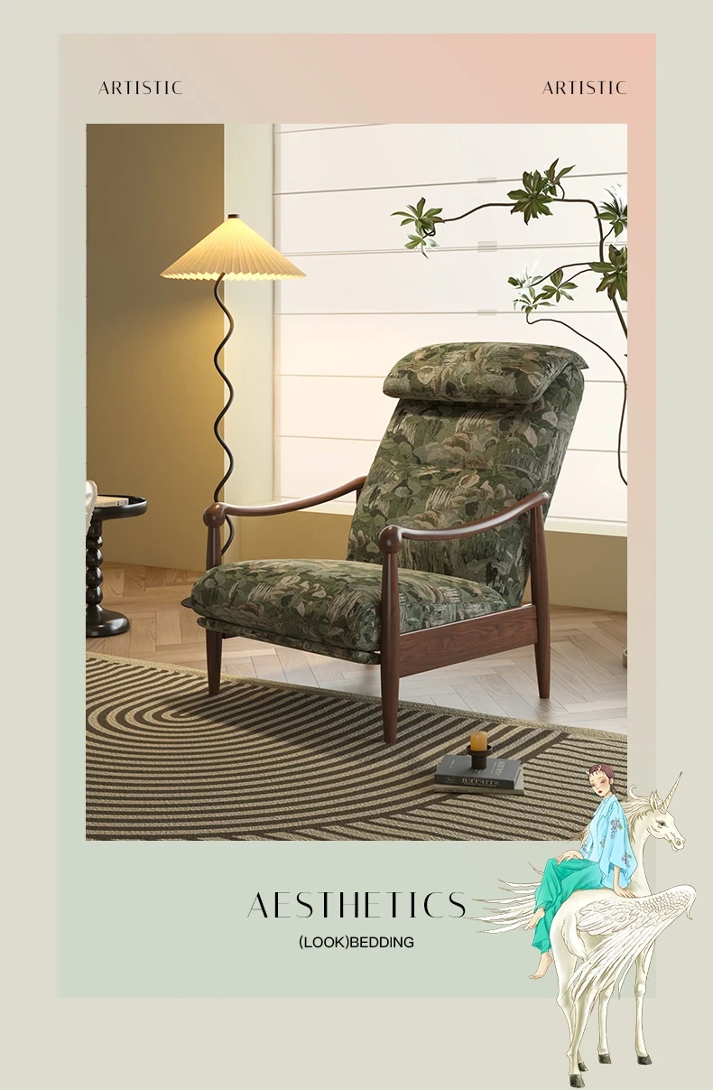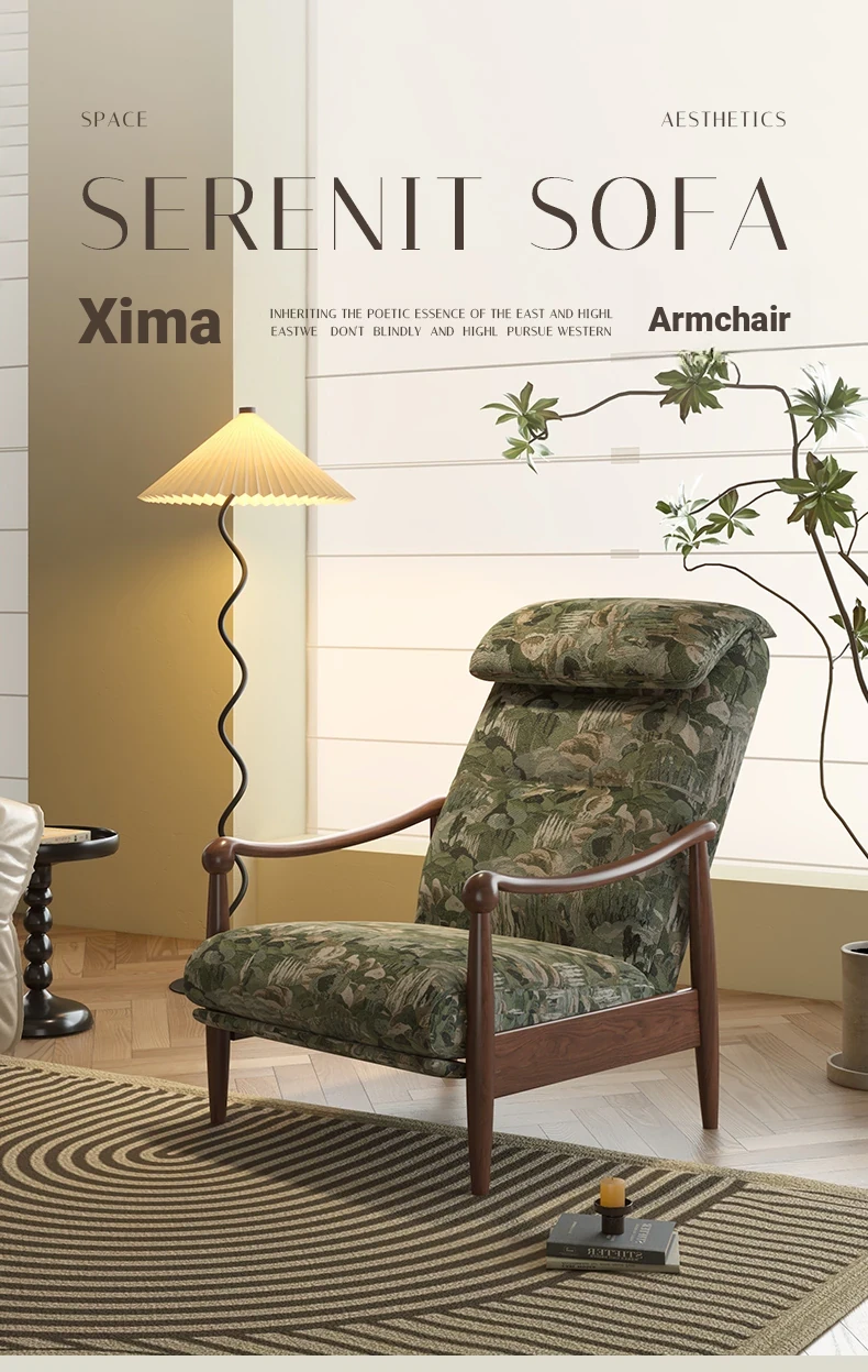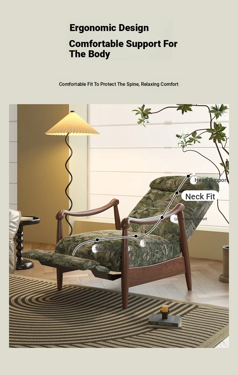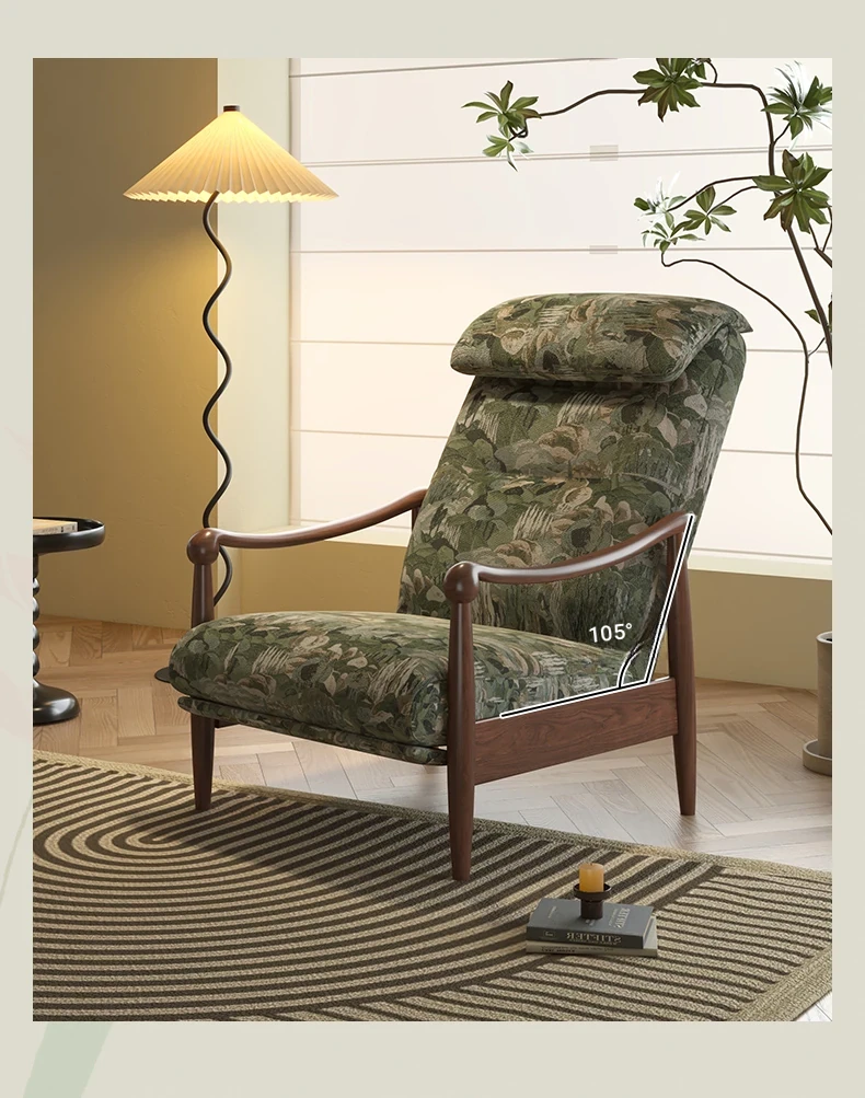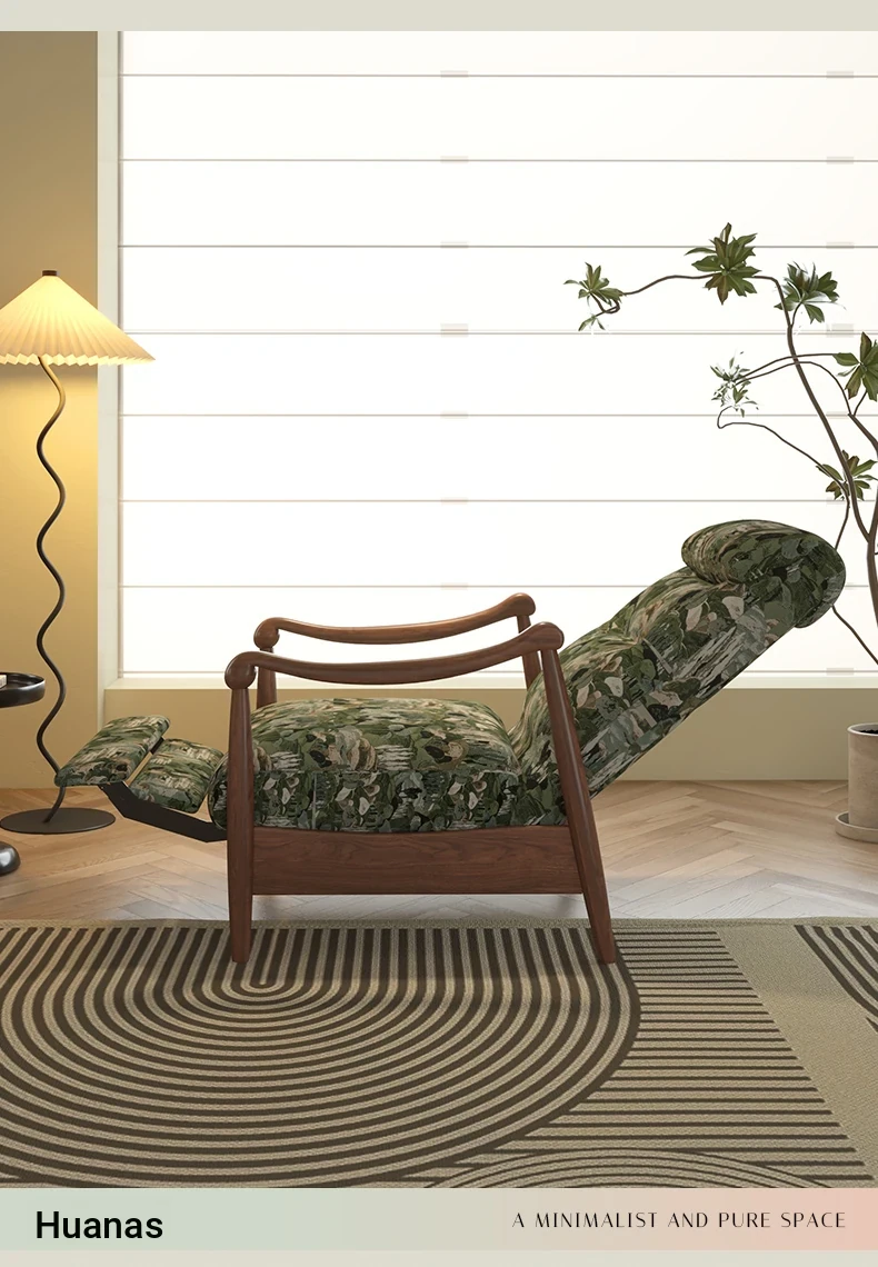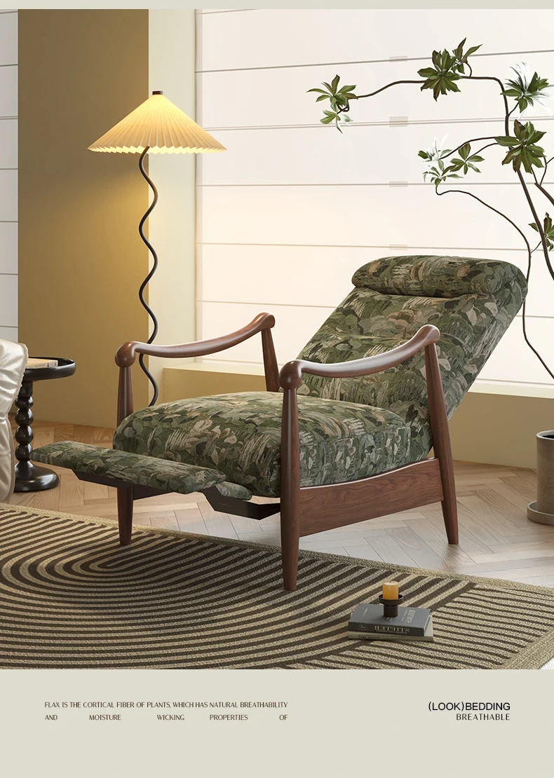 Wanas Retro Single Sofa Chair - Multifunctional Adjustable Backrest, Solid Wood Leisure Chair - Designer Lazy Sofa for Ultimate Comfort and Style