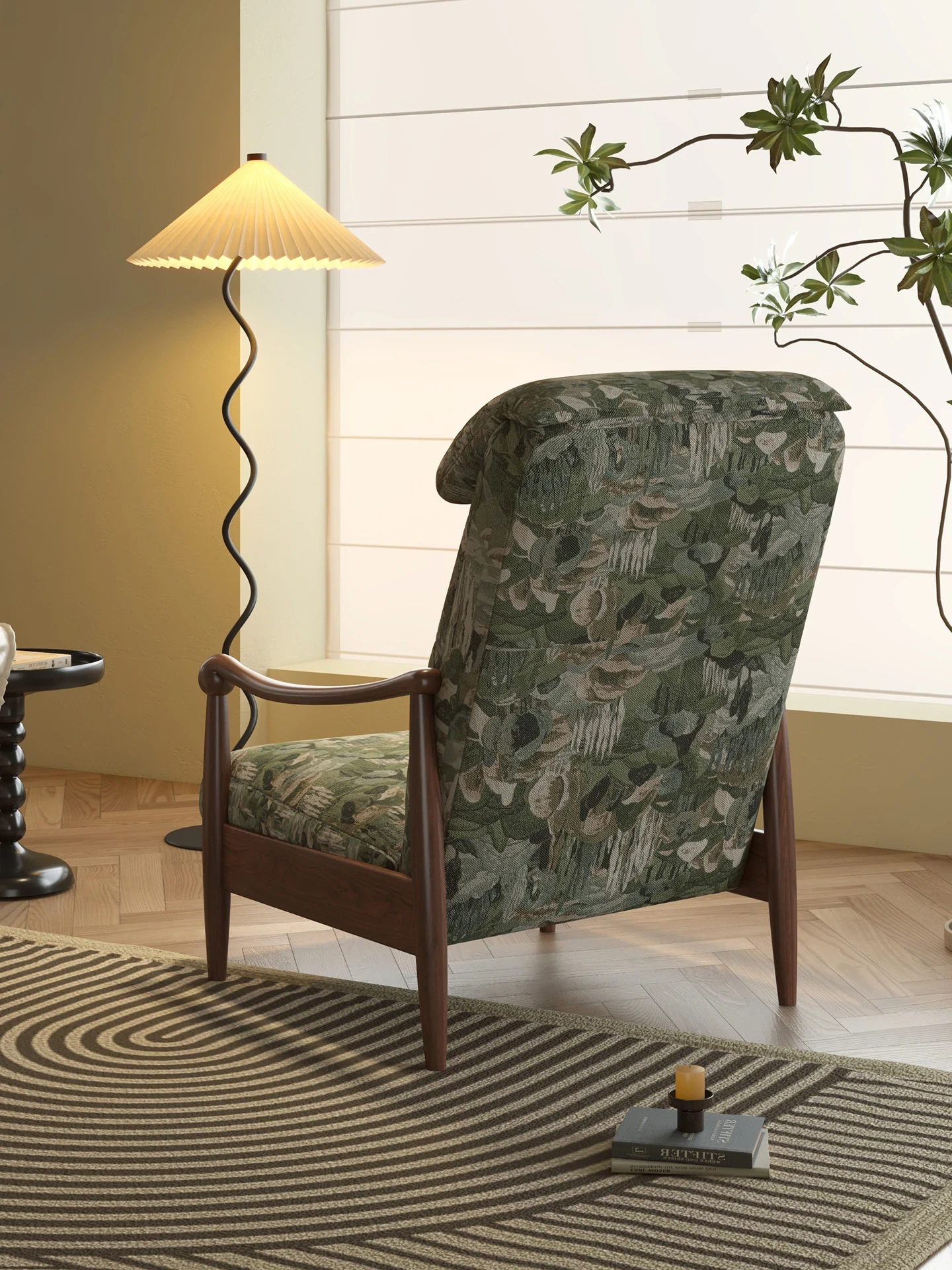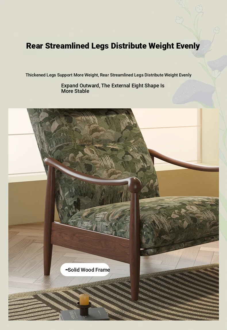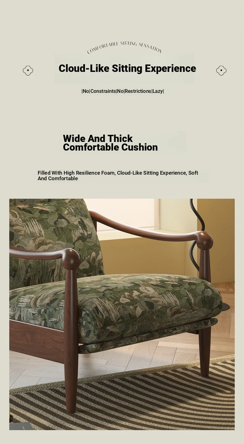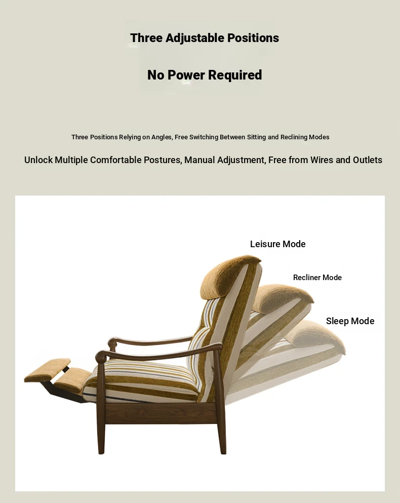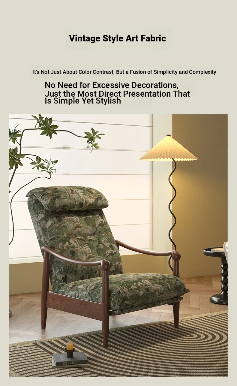 Wanas Retro Single Sofa Chair - Multifunctional Adjustable Backrest, Solid Wood Leisure Chair - Designer Lazy Sofa for Ultimate Comfort and Style