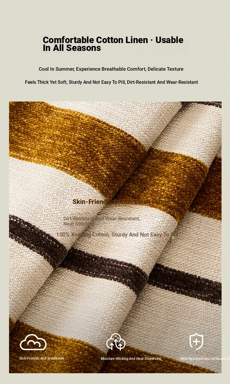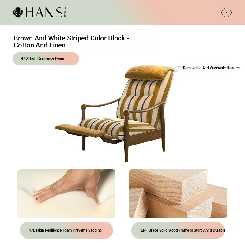 【Imported North American White Ash Sofa Chair】Brown and White Striped Color Block - Upgraded Cotton Linen Detachable Washable Headrest
