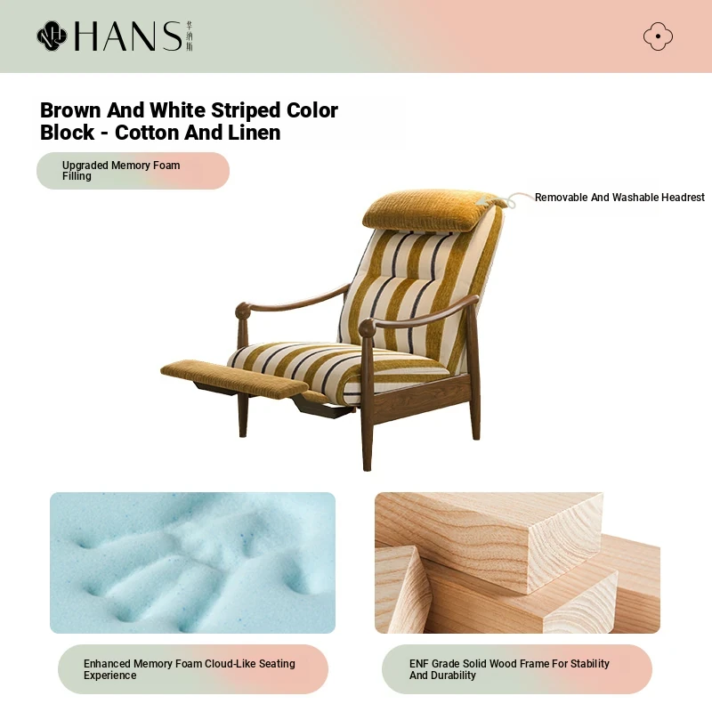 【Imported North American White Ash Sofa Chair】Brown and White Striped Color Block - Cotton Linen/Upgraded Memory Foam Filling, Upgraded Detachable and Washable Headrest