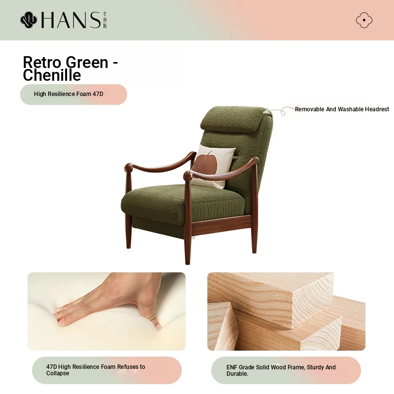 【Imported North American White Ash Sofa Chair】Vintage Green - Chenille Upgraded Headrest, Removable & Washable