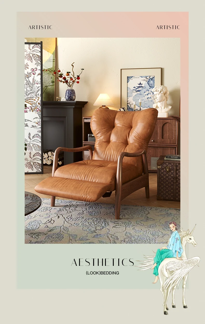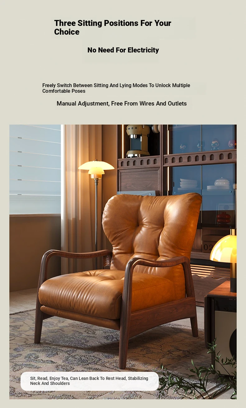 Wanas Vintage Lounge Chair - 2025 New Arrival, Multifunctional Reclining Designer Armchair in Genuine Leather, Perfect for Relaxation and Style.
