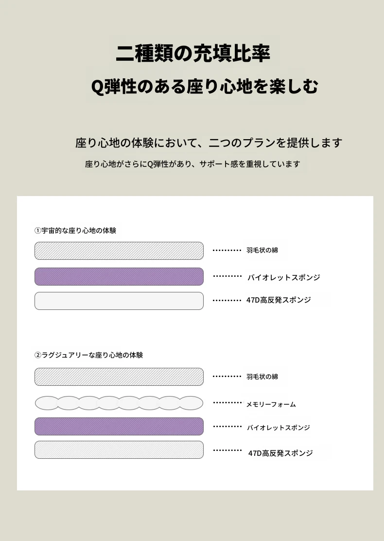 【アイボリー-キャットクロー皮】メモリーフォーム+バイオレットスポンジ