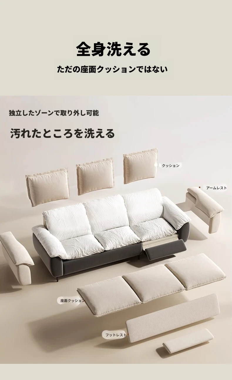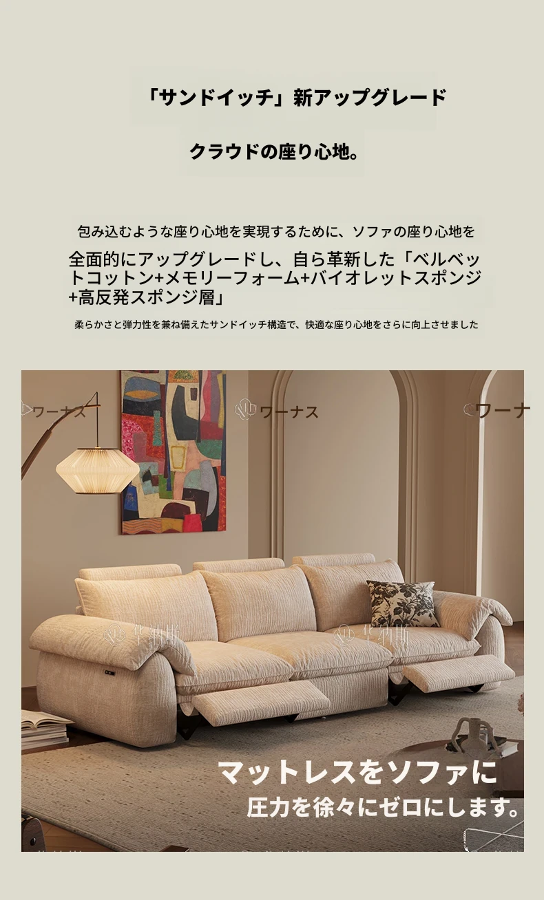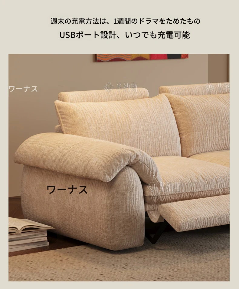 ワーナス・ユニバーサル電動ソファ 2025年新作 フランス風 多機能・壁に寄せて使える布製 ソファ カバーは洗濯可能で、快適さとスタイルを両立!あなたのリビングにぴったりの一品です。