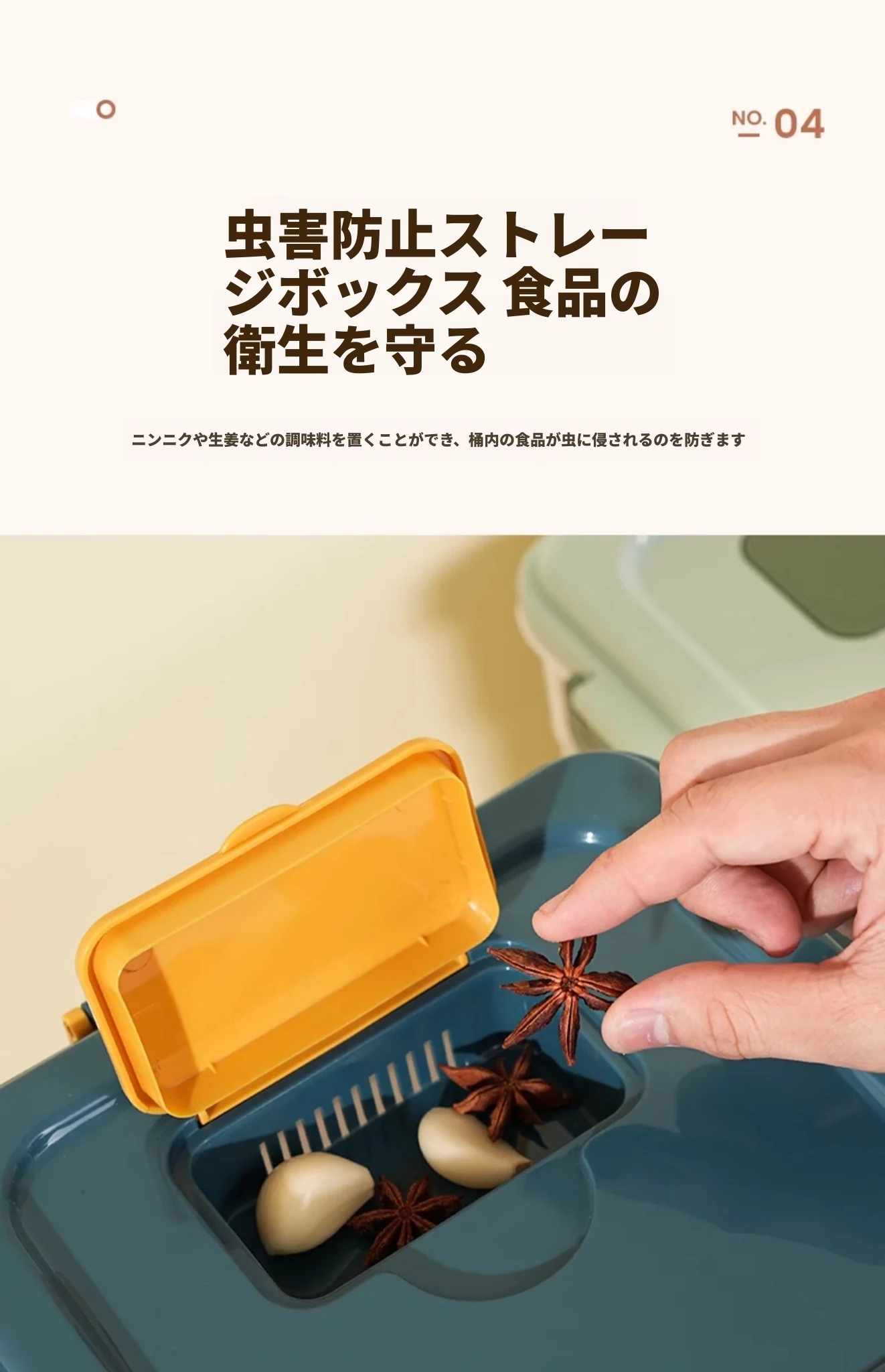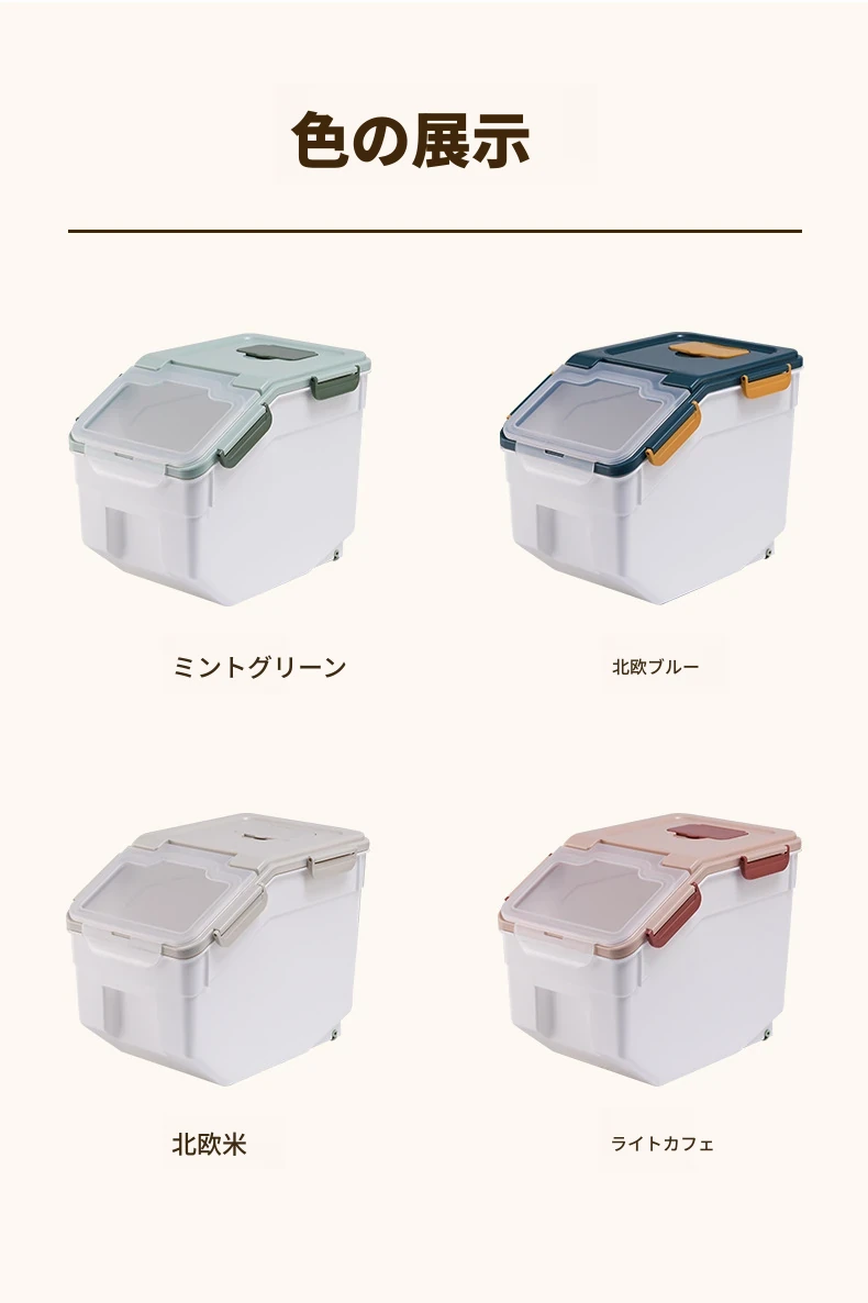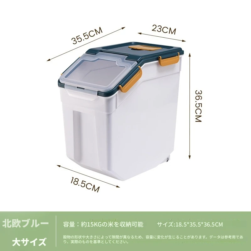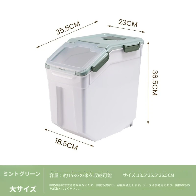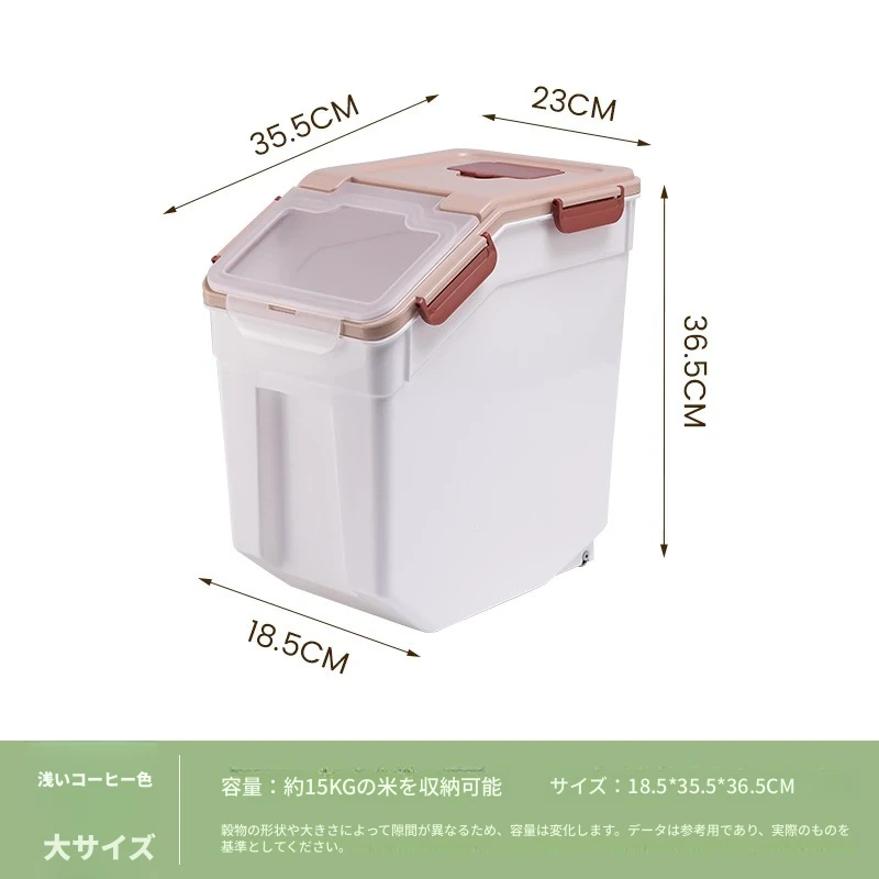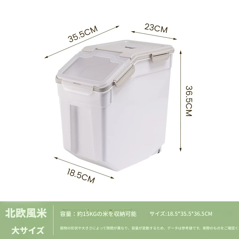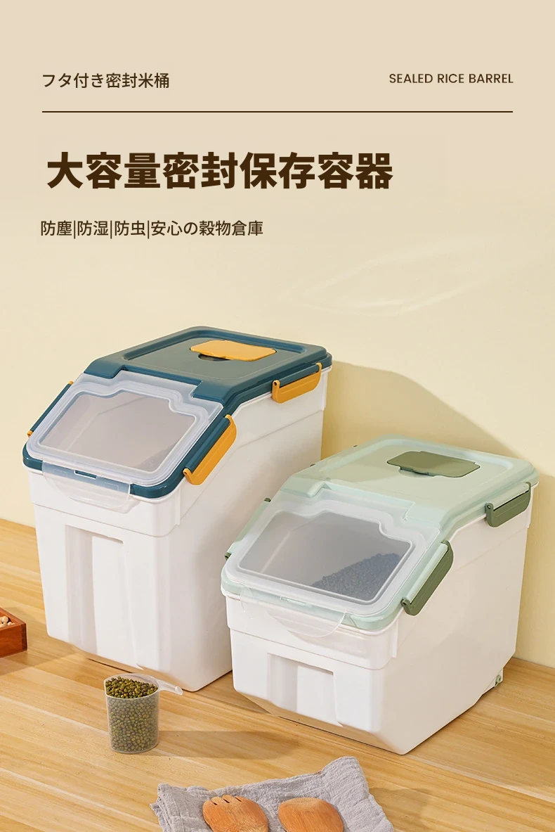 家庭用50斤米収納容器 - 防湿・防虫・密閉設計の厚手プラスチック製、粉類も収納可能な大容量米びつ。キッチンをすっきり整理し、食材を新鮮に保ちます!