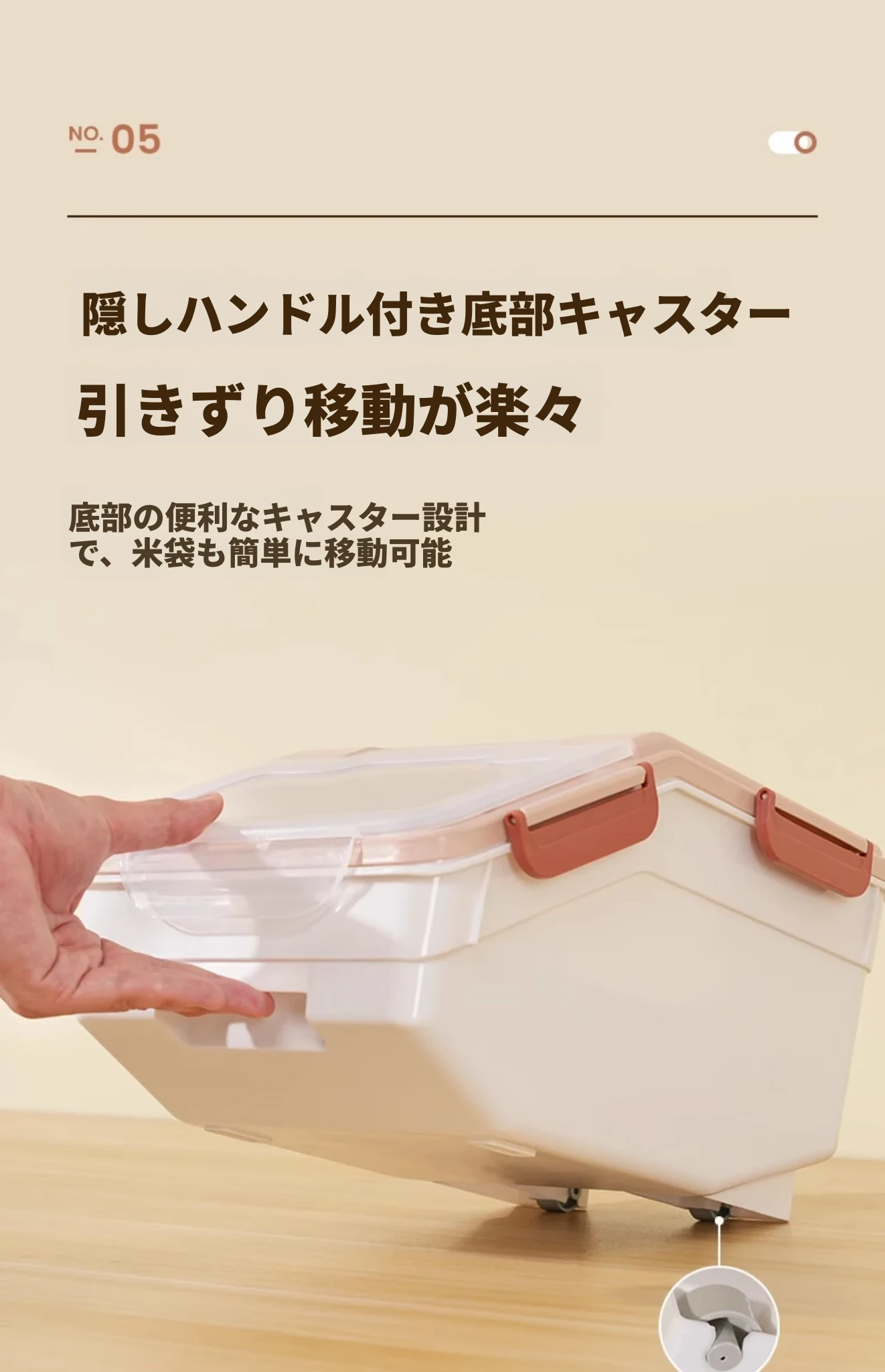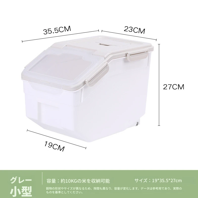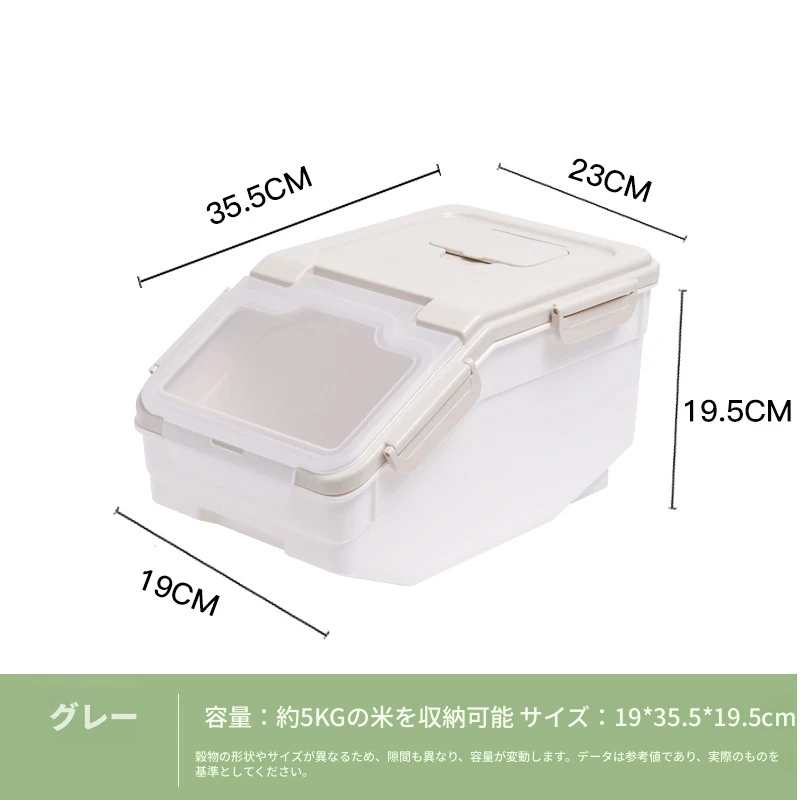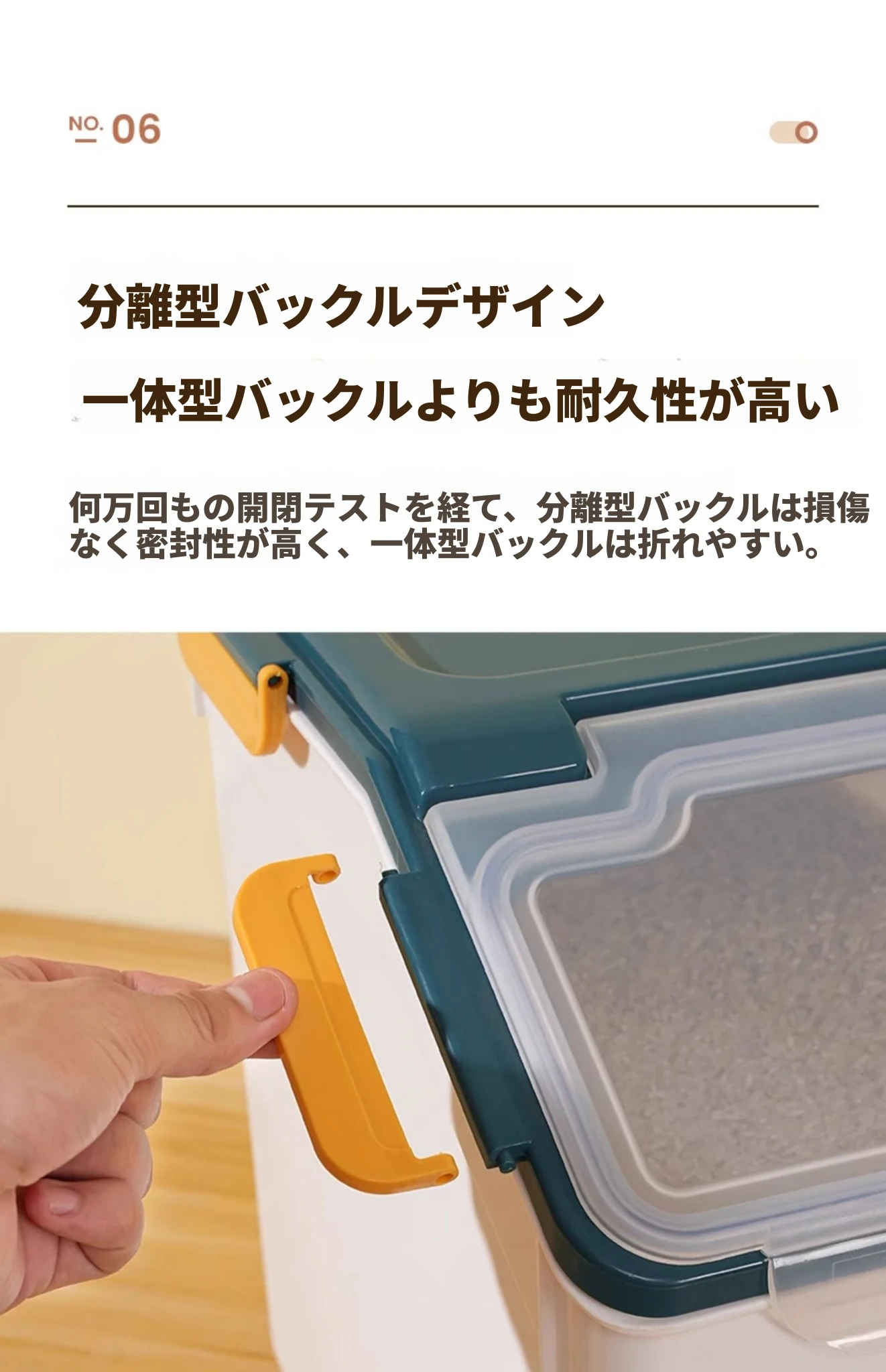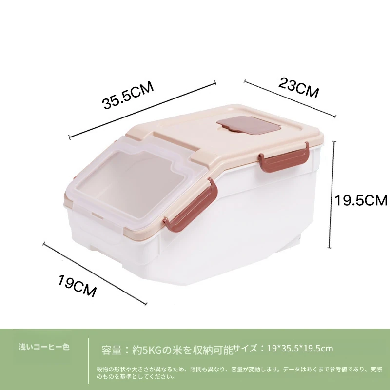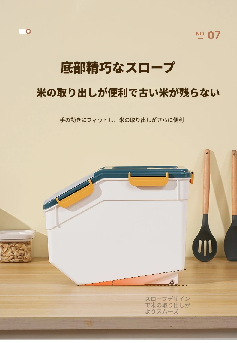 家庭用50斤米収納容器 - 防湿・防虫・密閉設計の厚手プラスチック製、粉類も収納可能な大容量米びつ。キッチンをすっきり整理し、食材を新鮮に保ちます!