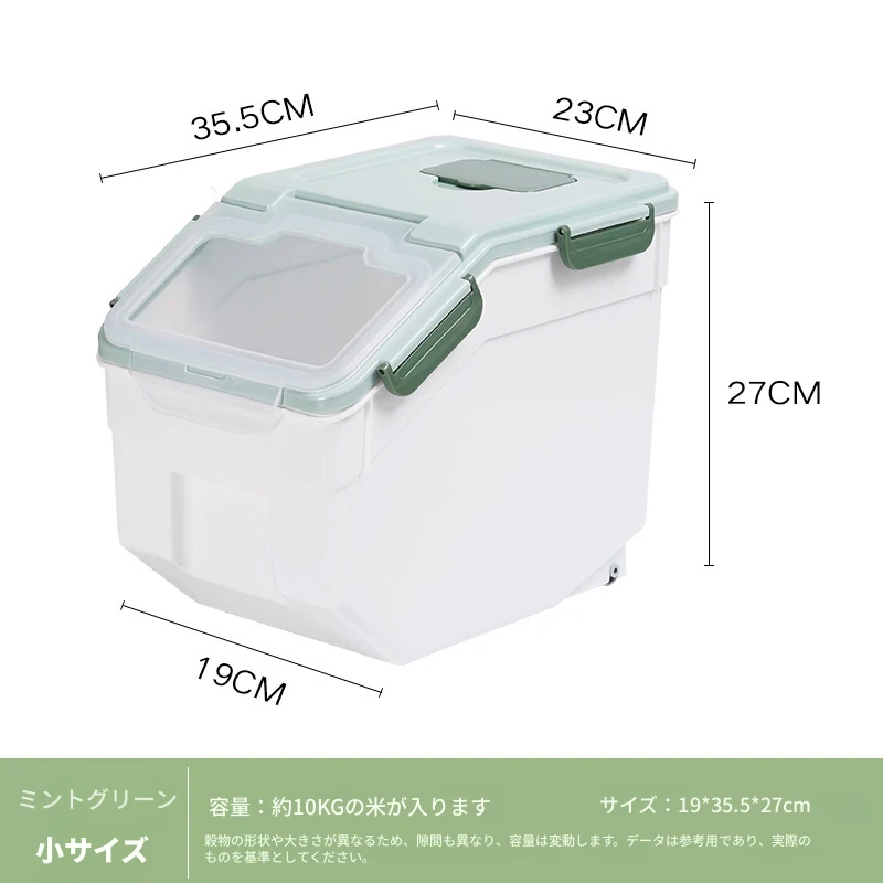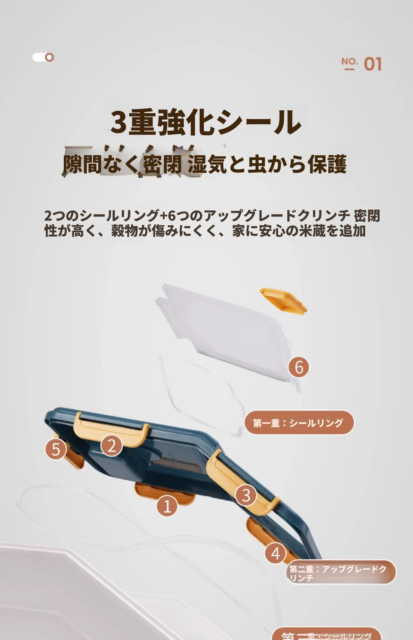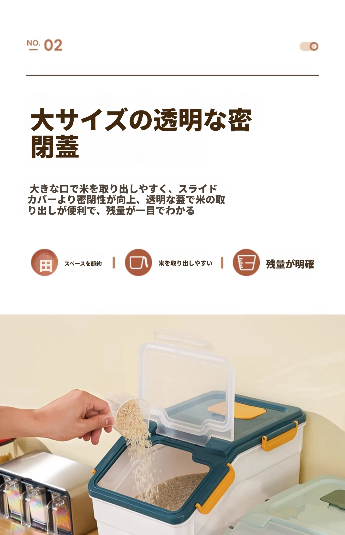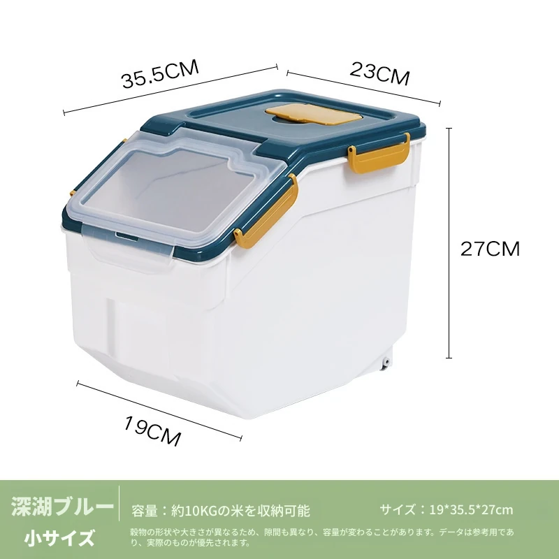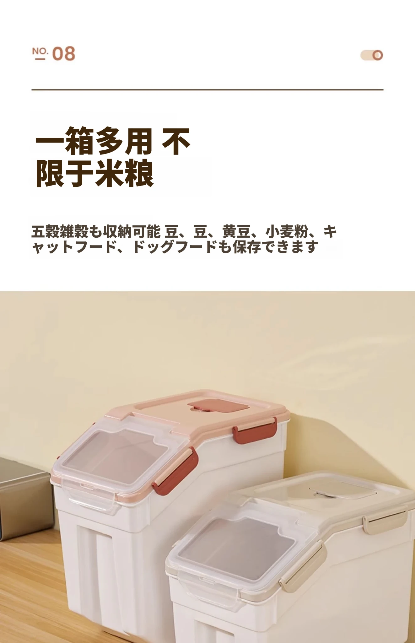 家庭用50斤米収納容器 - 防湿・防虫・密閉設計の厚手プラスチック製、粉類も収納可能な大容量米びつ。キッチンをすっきり整理し、食材を新鮮に保ちます!