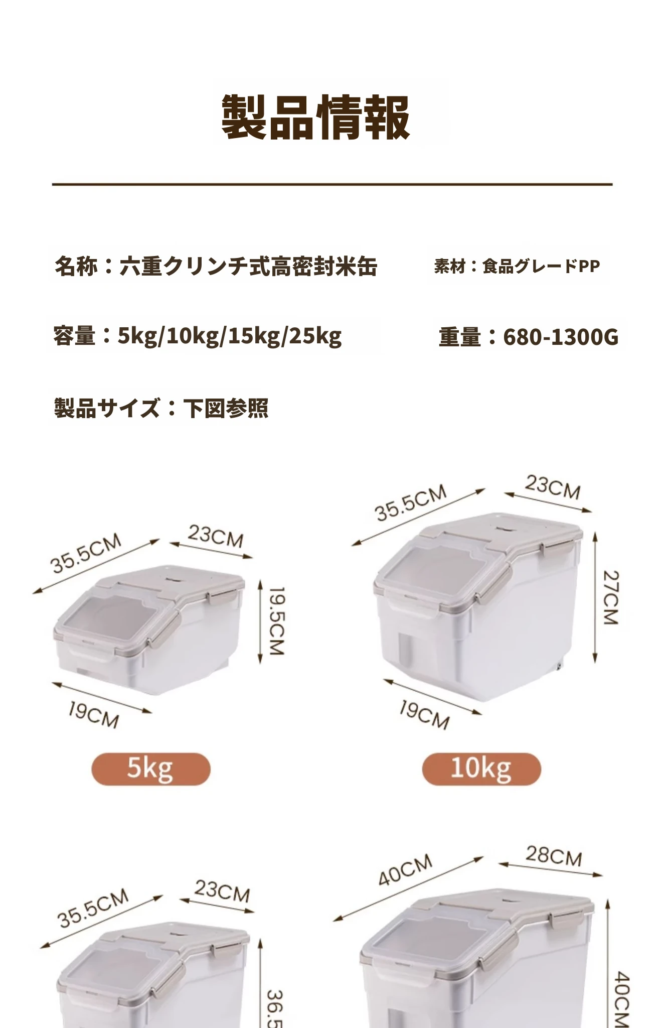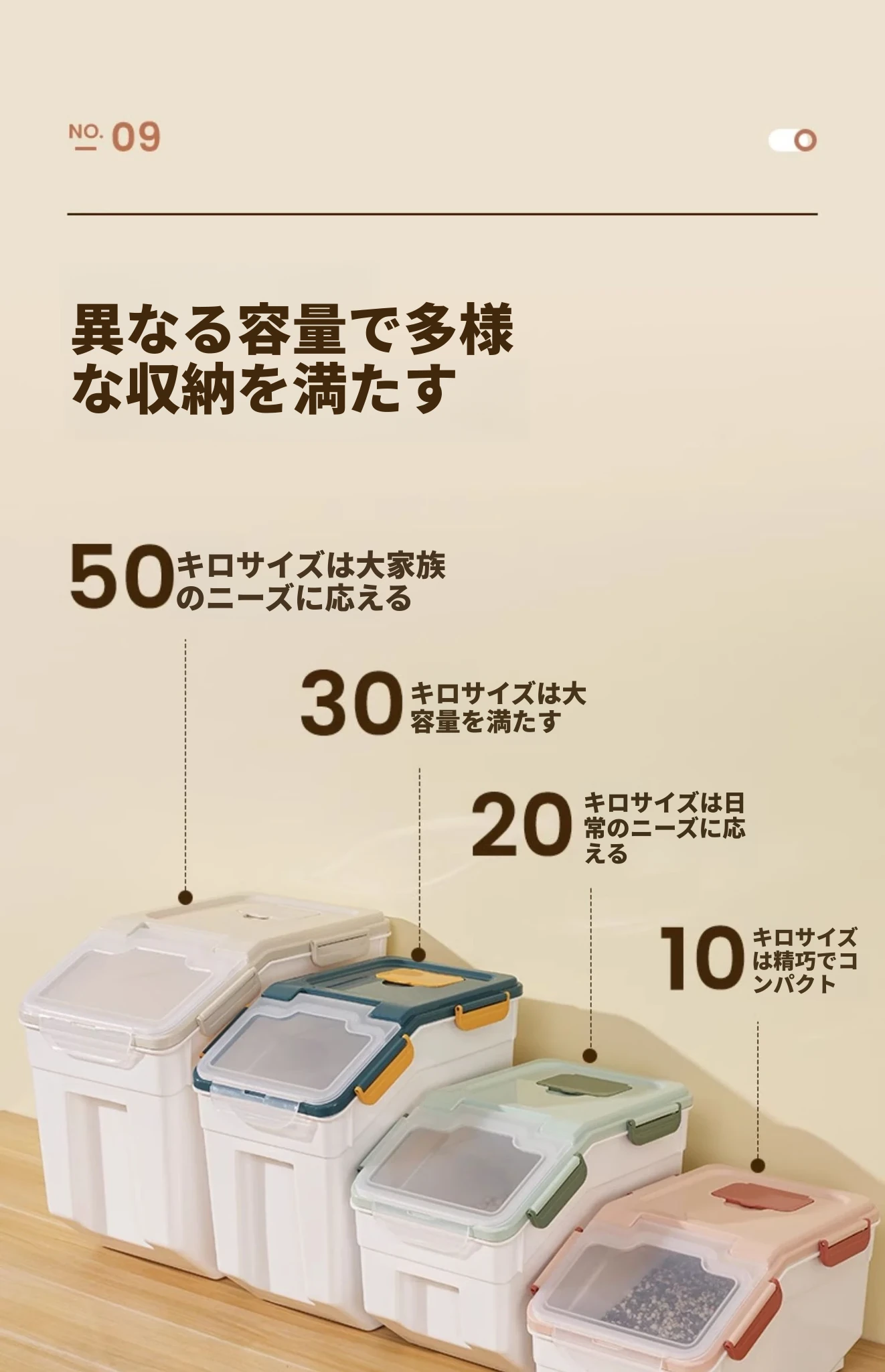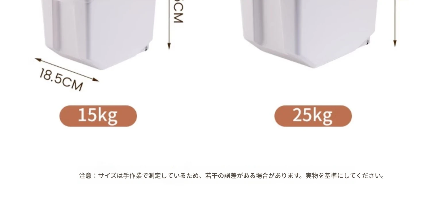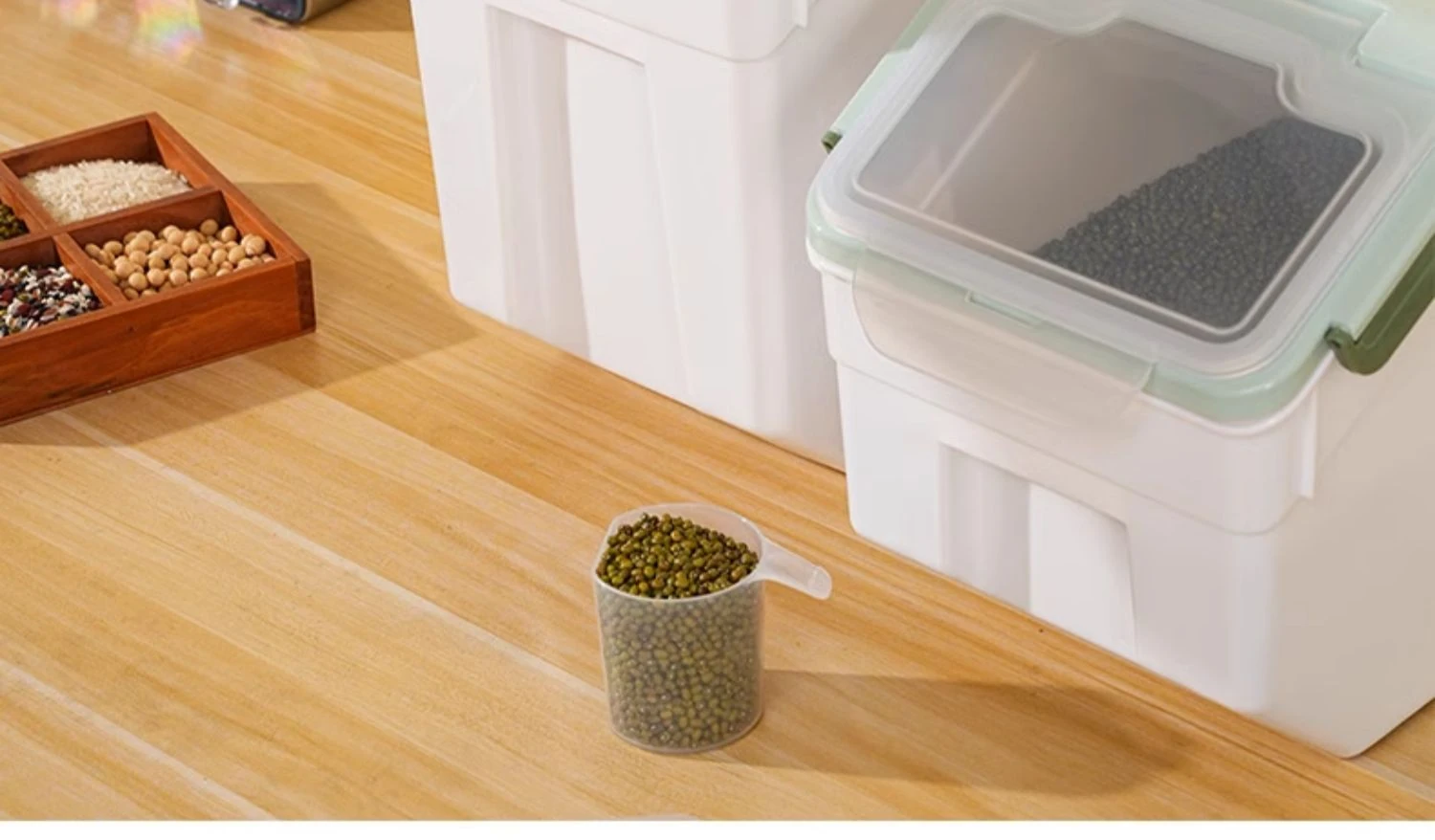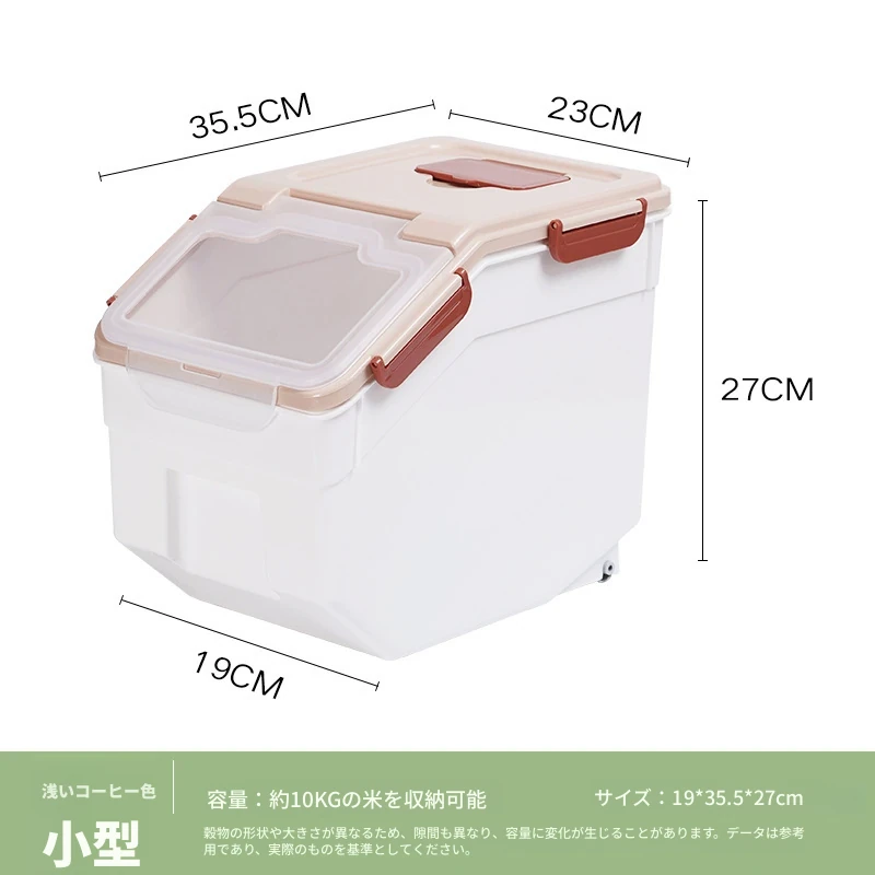 家庭用50斤米収納容器 - 防湿・防虫・密閉設計の厚手プラスチック製、粉類も収納可能な大容量米びつ。キッチンをすっきり整理し、食材を新鮮に保ちます!
