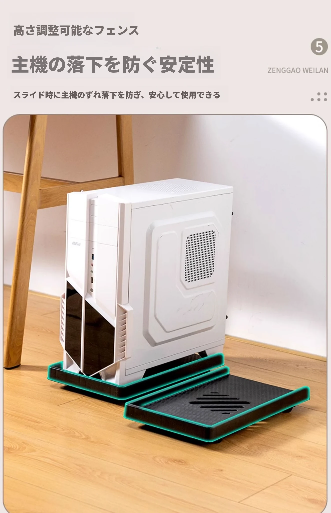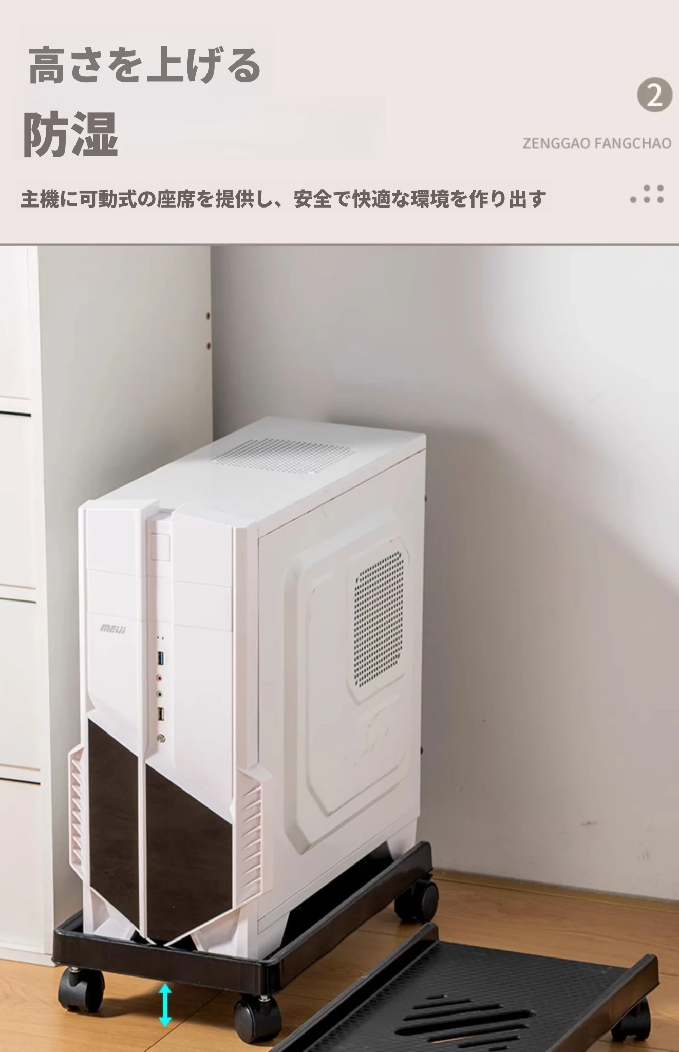 パソコン本体スタンド 移動可能なケースホルダー 滑り止めベース 家庭用・オフィス用デスクトップ用の高さ調整可能な収納ラックで、スペースを有効活用し、快適な作業環境を実現!