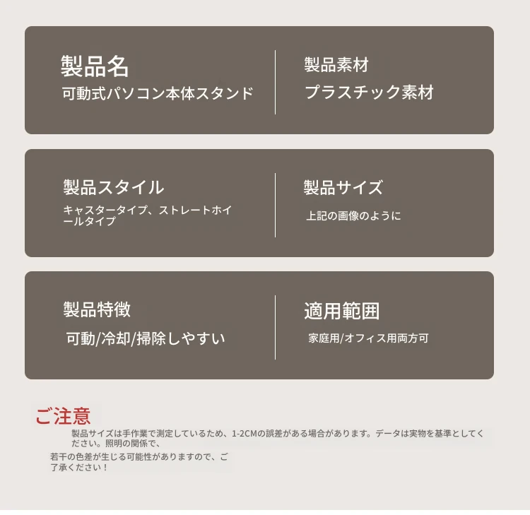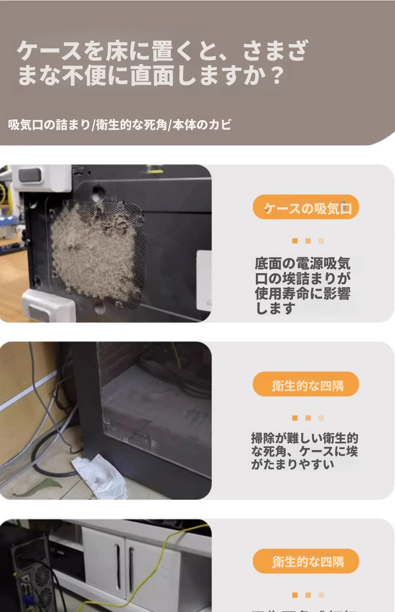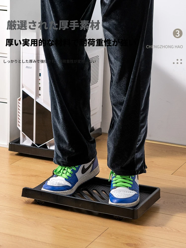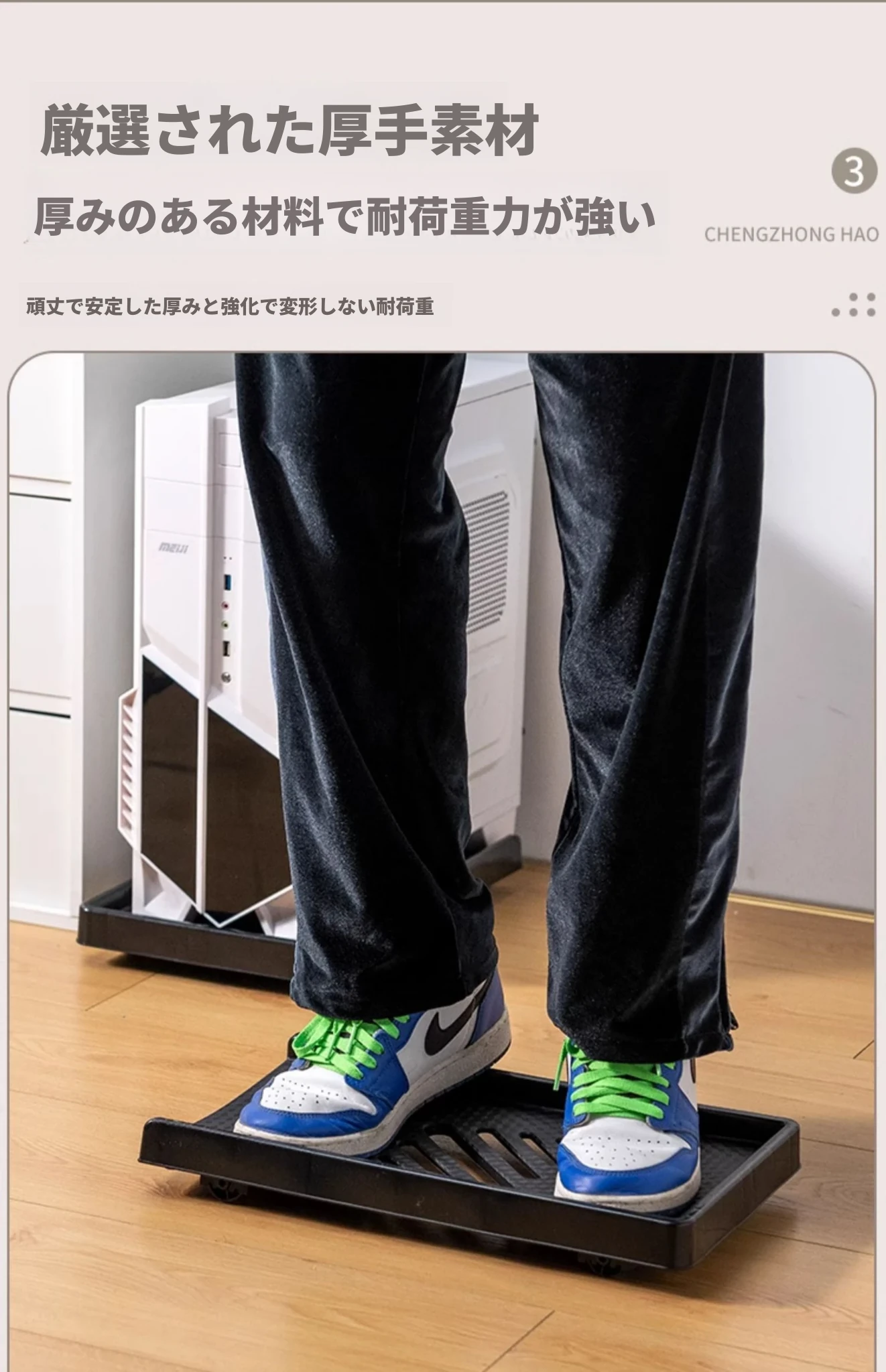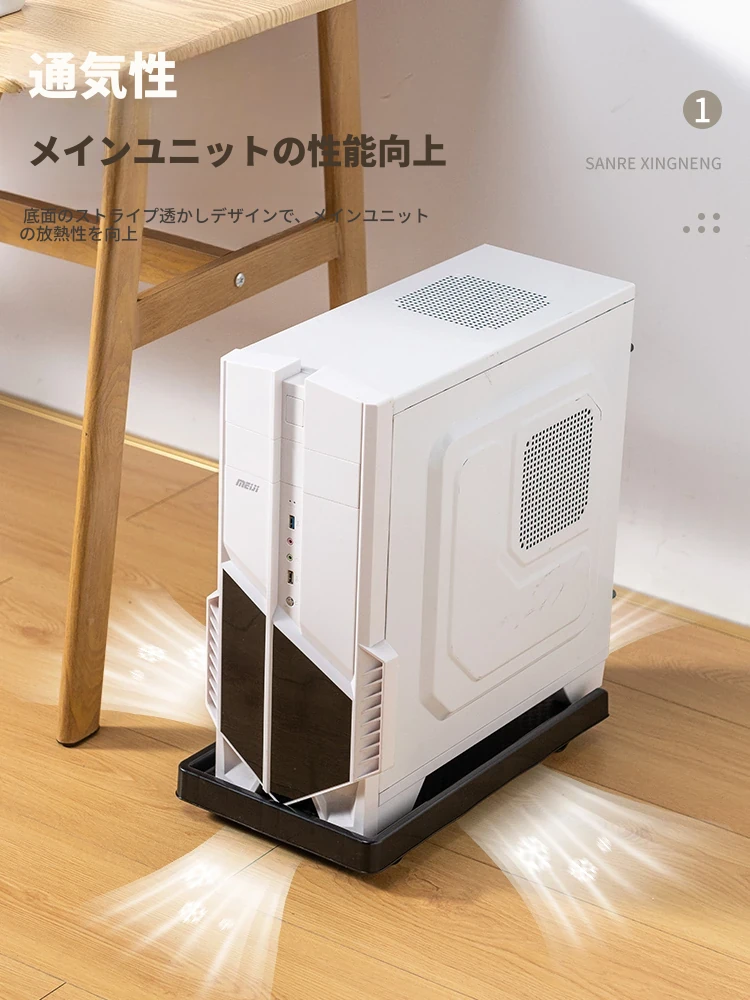 デスクトップPC用移動式ケーススタンド - 家庭やオフィスに最適な高さ調整可能なボトムベース&収納トレイ!快適な作業環境を実現し、スペースを有効活用!