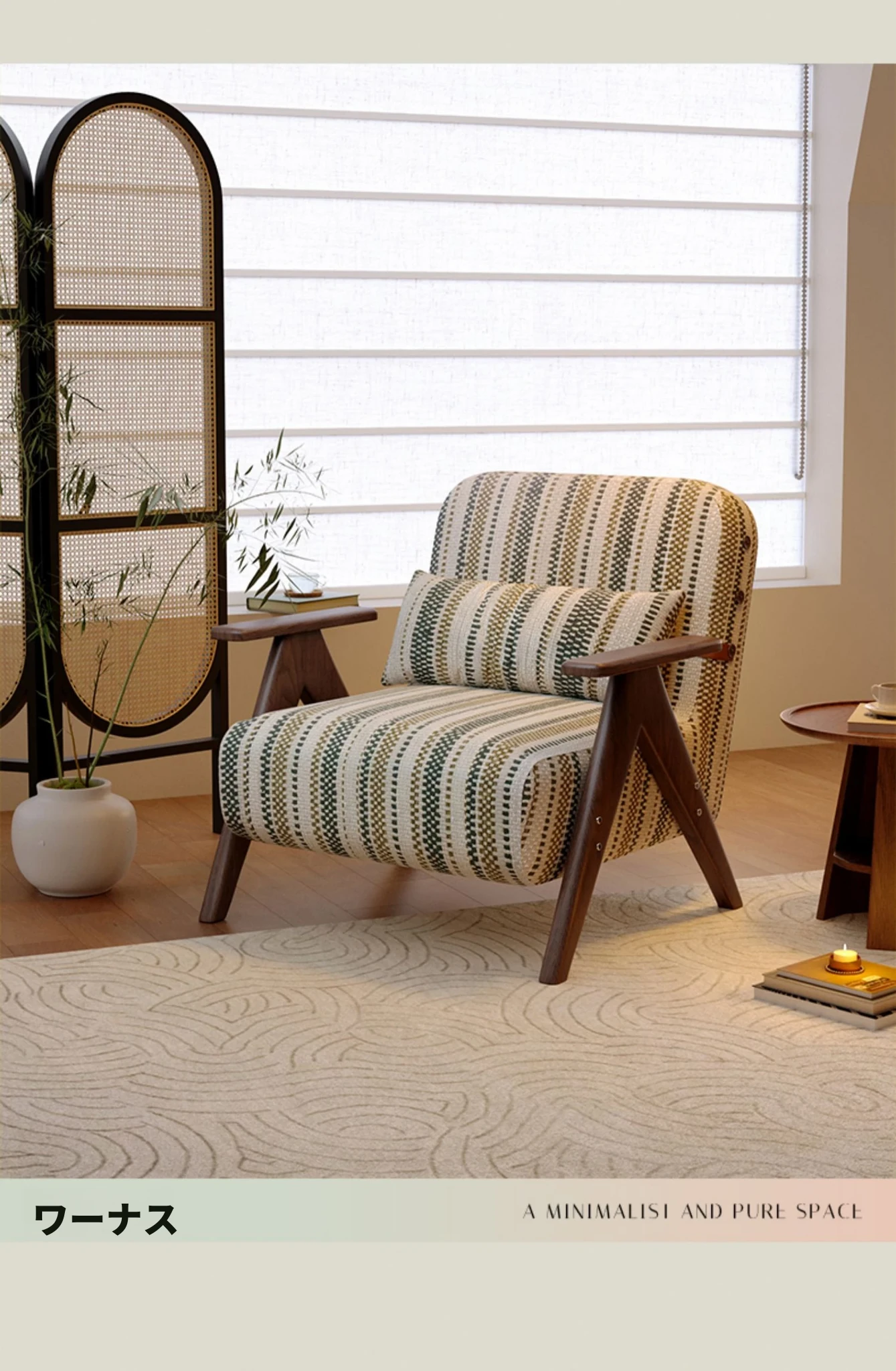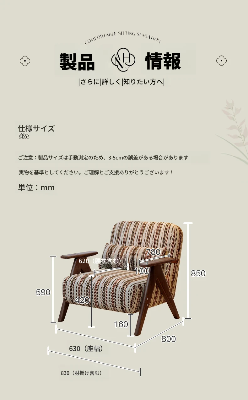 ワーナス千尋1人掛けソファ - ヴィンテージ感漂う無垢材使用!小さなスペースにぴったりなモジュール式デザイン、くつろぎのひとときを演出する2025年新作。おしゃれで機能的なインテリアをお楽しみください!