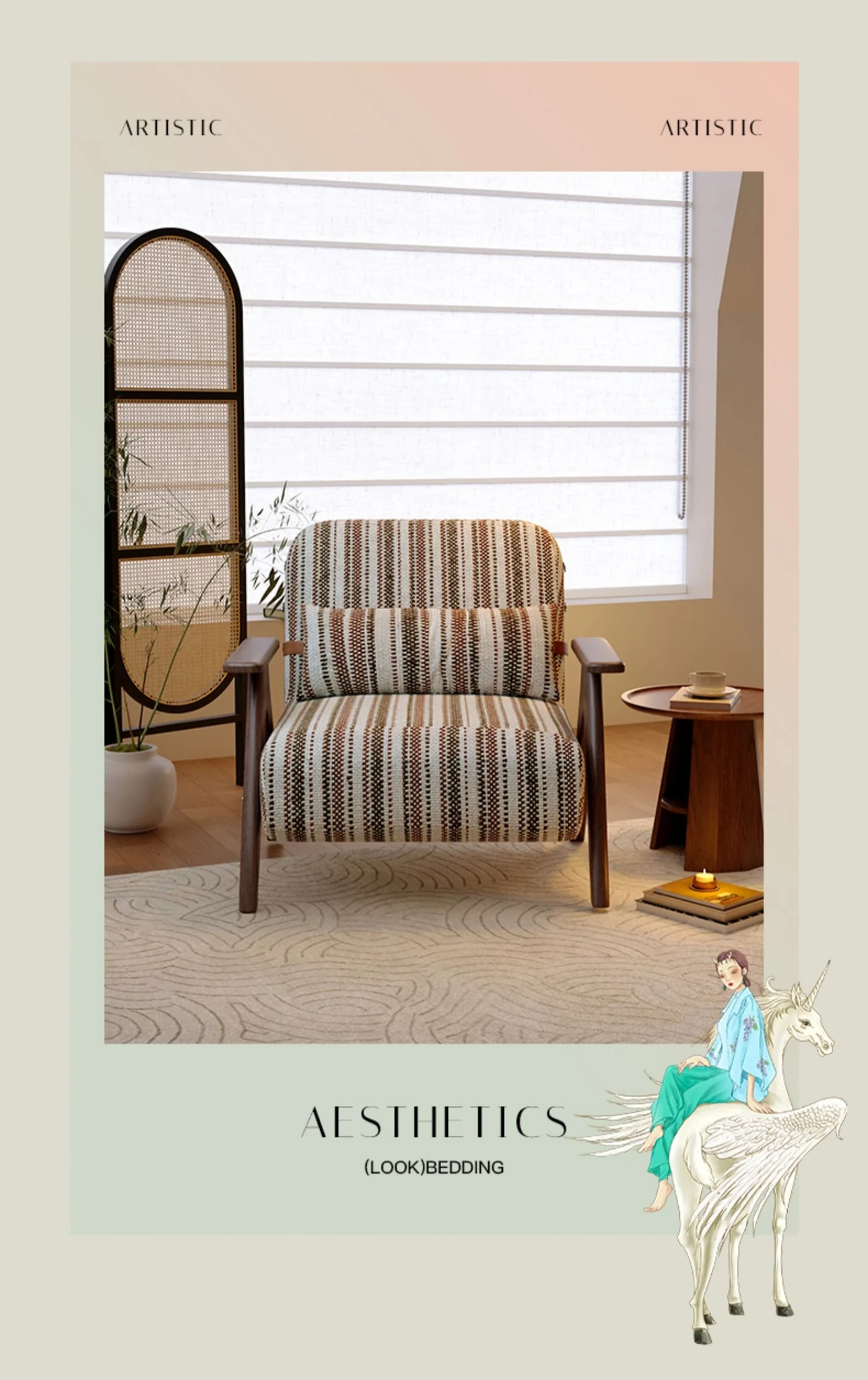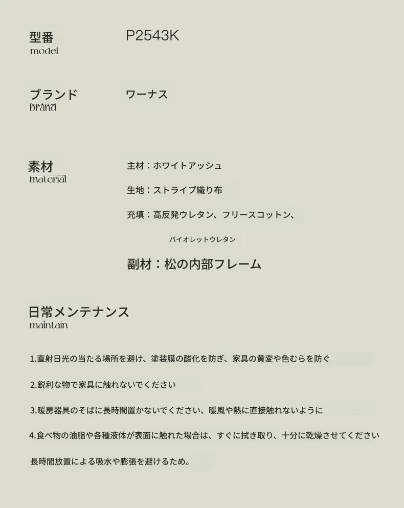 ホワイトアッシュの一人用椅子【夕焼け色ストライプ+メモリーフォームクッション】