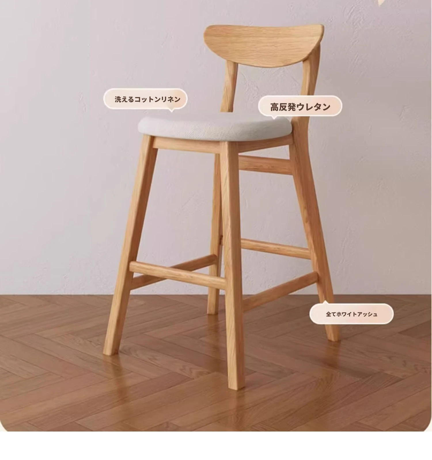 ワーナス ホワイトアッシュ モダンミニマリスト 家庭用 バースツール 北欧スタイル ダイニングチェア 木製 椅子 - スタイリッシュで快適なデザイン、リラックスしたひとときを提供します!