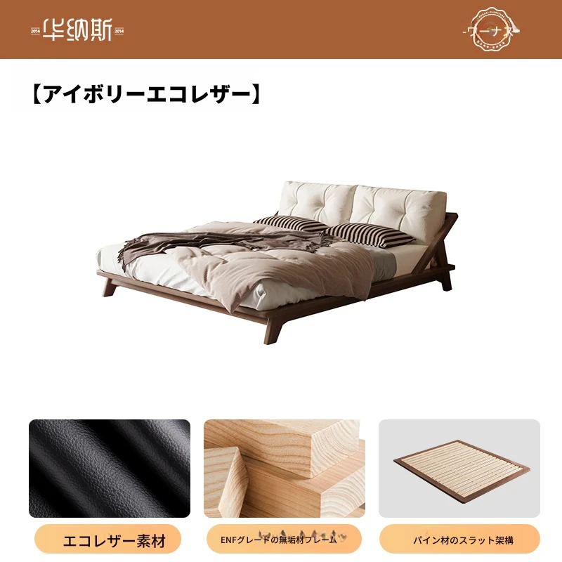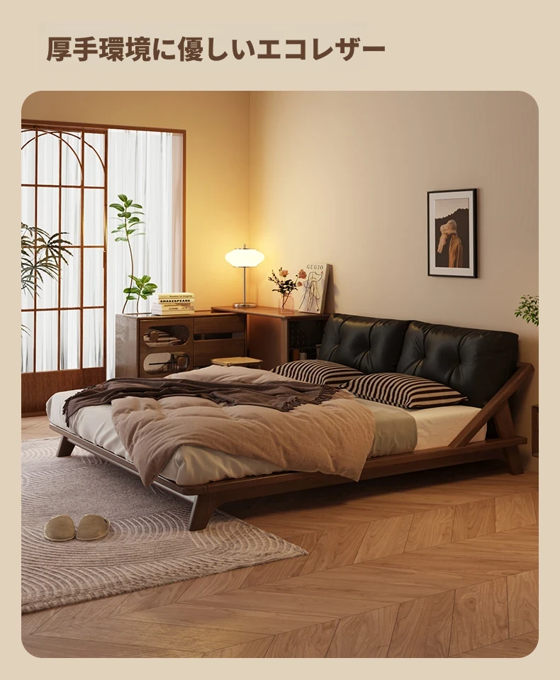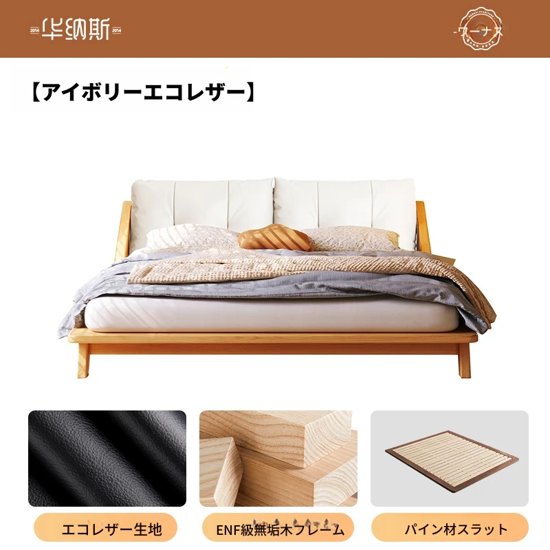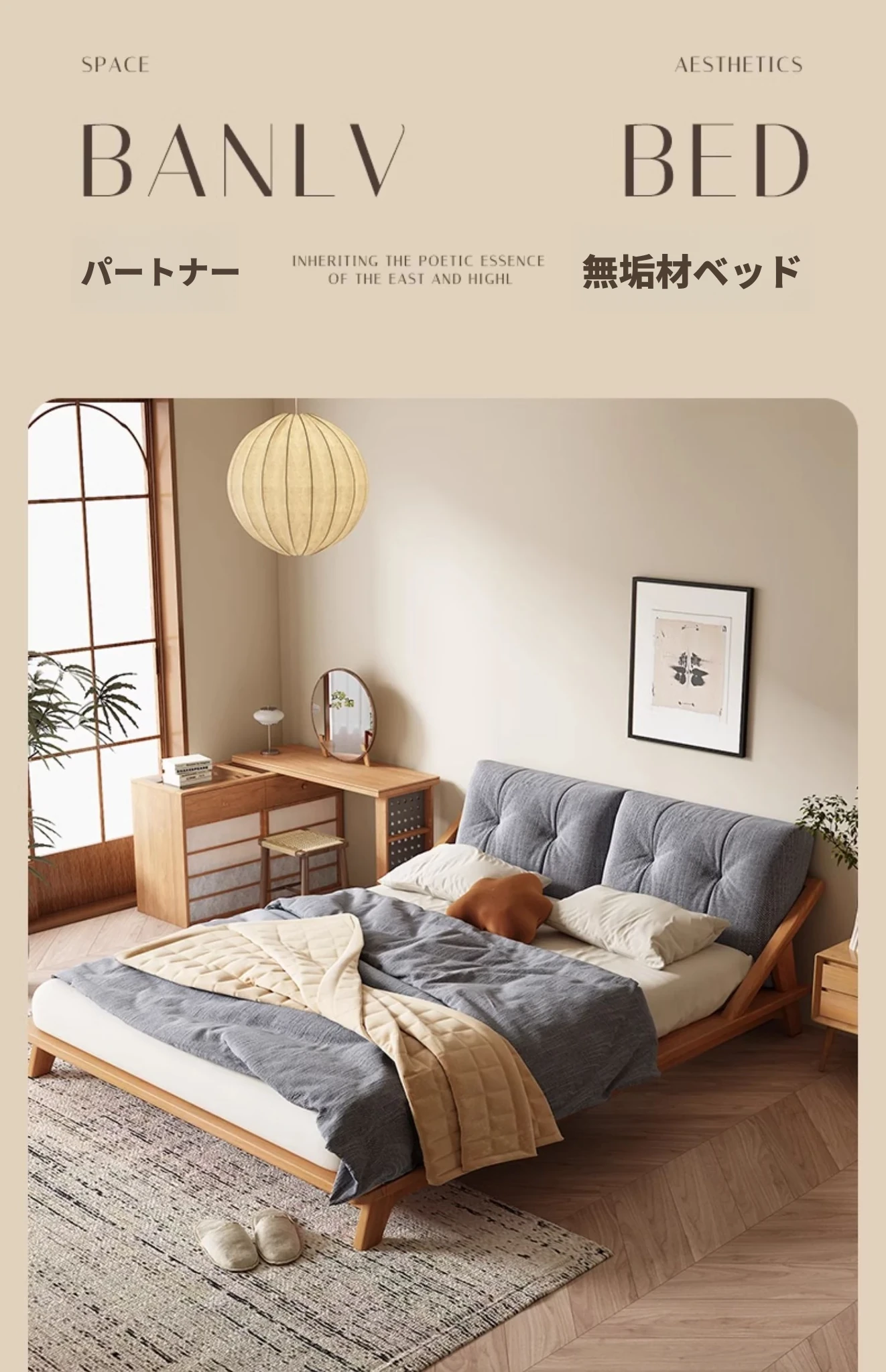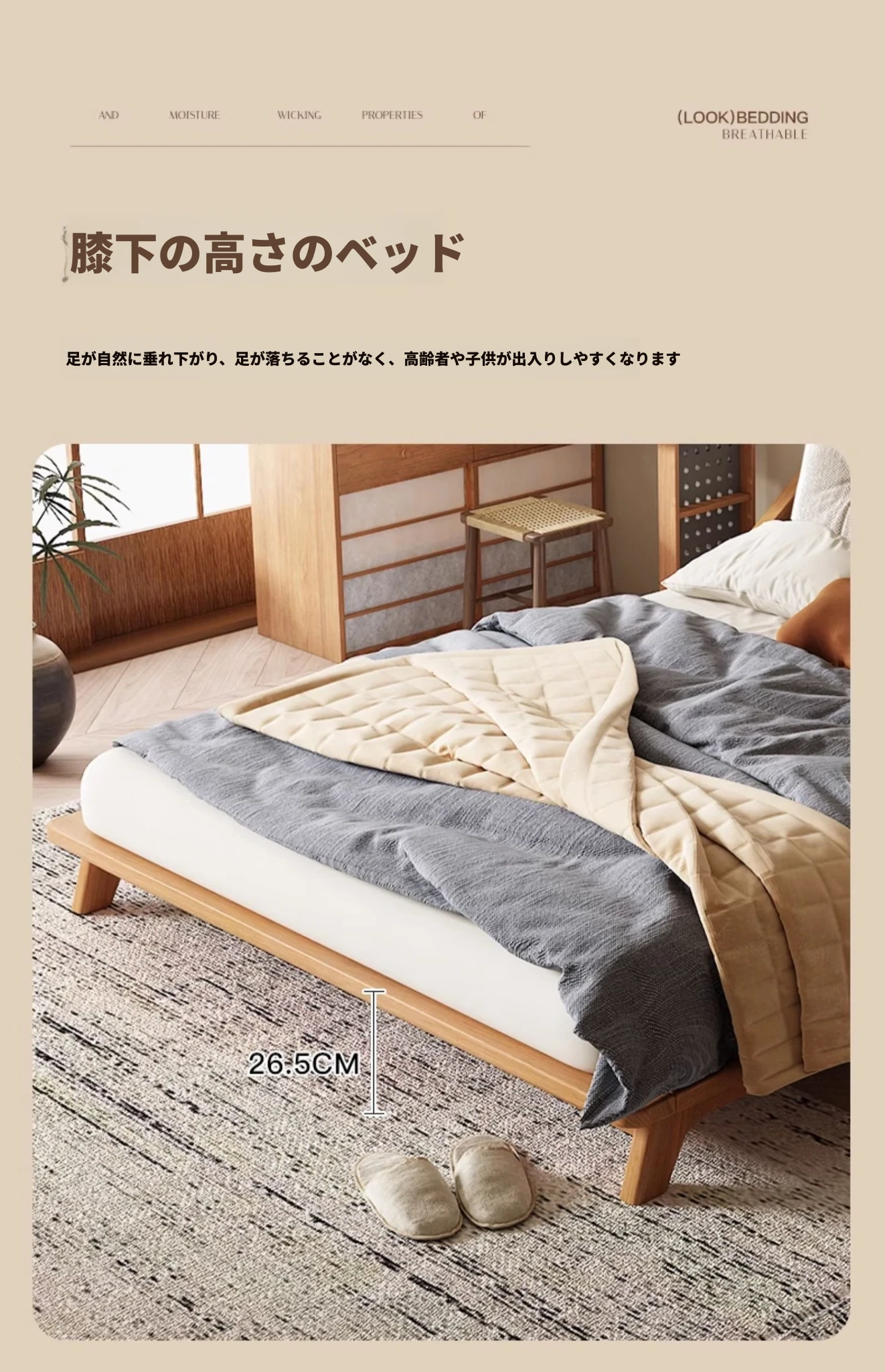 和風天然木製1.8mベッド|クリーミーなデザインの低床タイプ|主寝室や小さな部屋に最適|ホワイトアッシュの畳ベッドで心地よい眠りを提供!