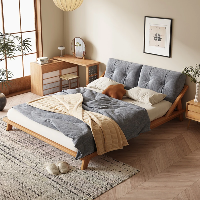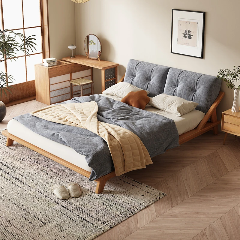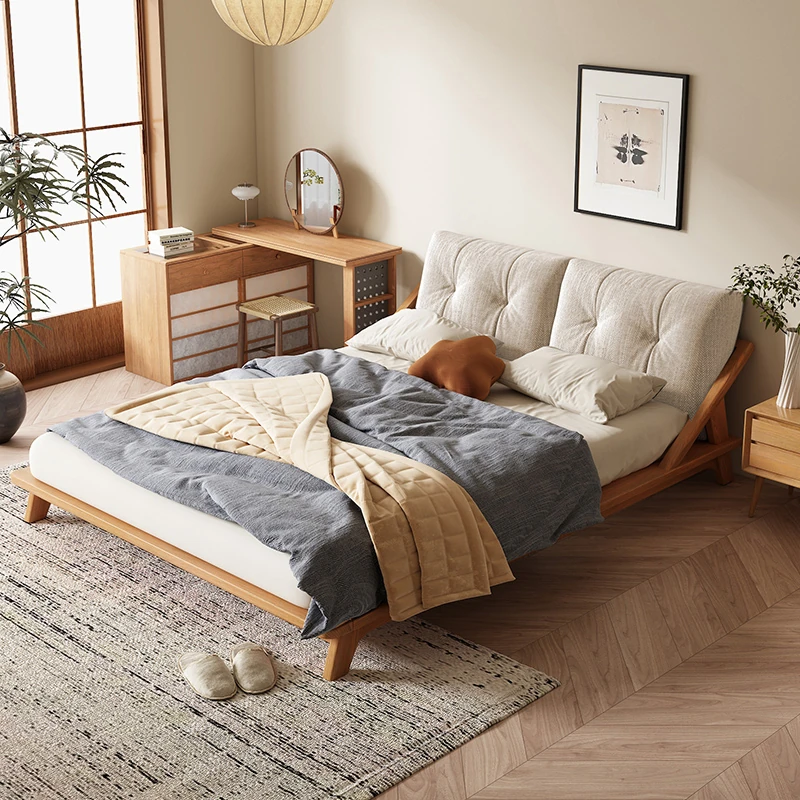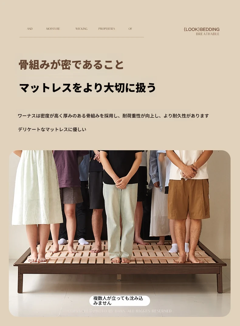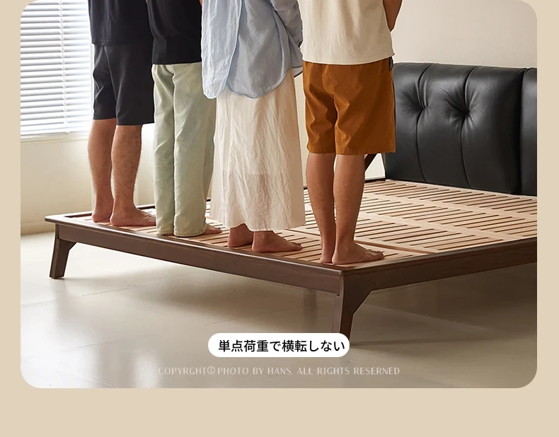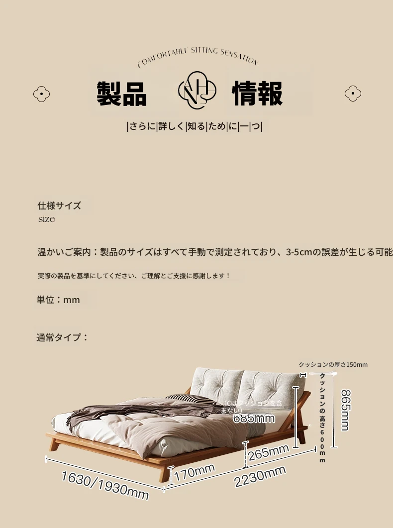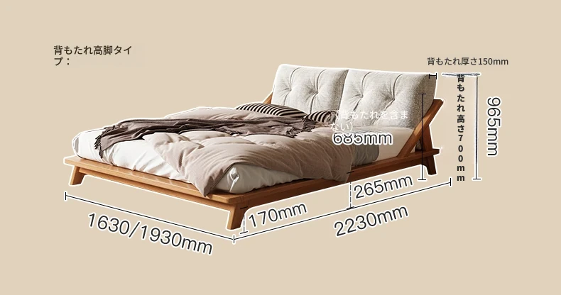 和風天然木製1.8mベッド|クリーミーなデザインの低床タイプ|主寝室や小さな部屋に最適|ホワイトアッシュの畳ベッドで心地よい眠りを提供!