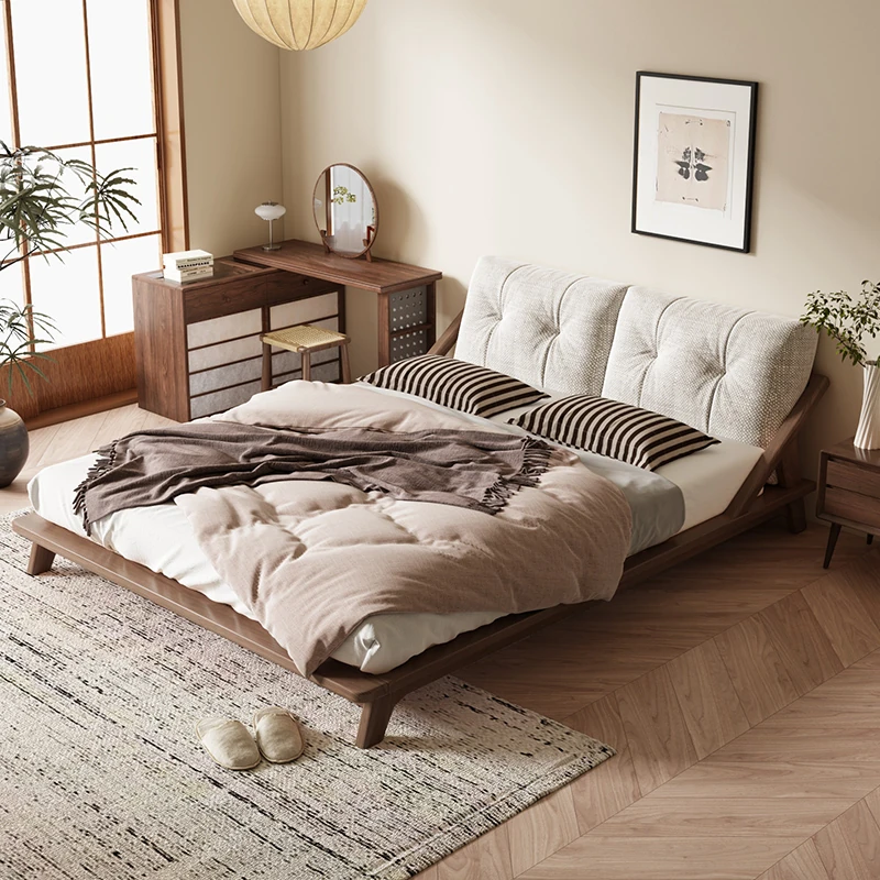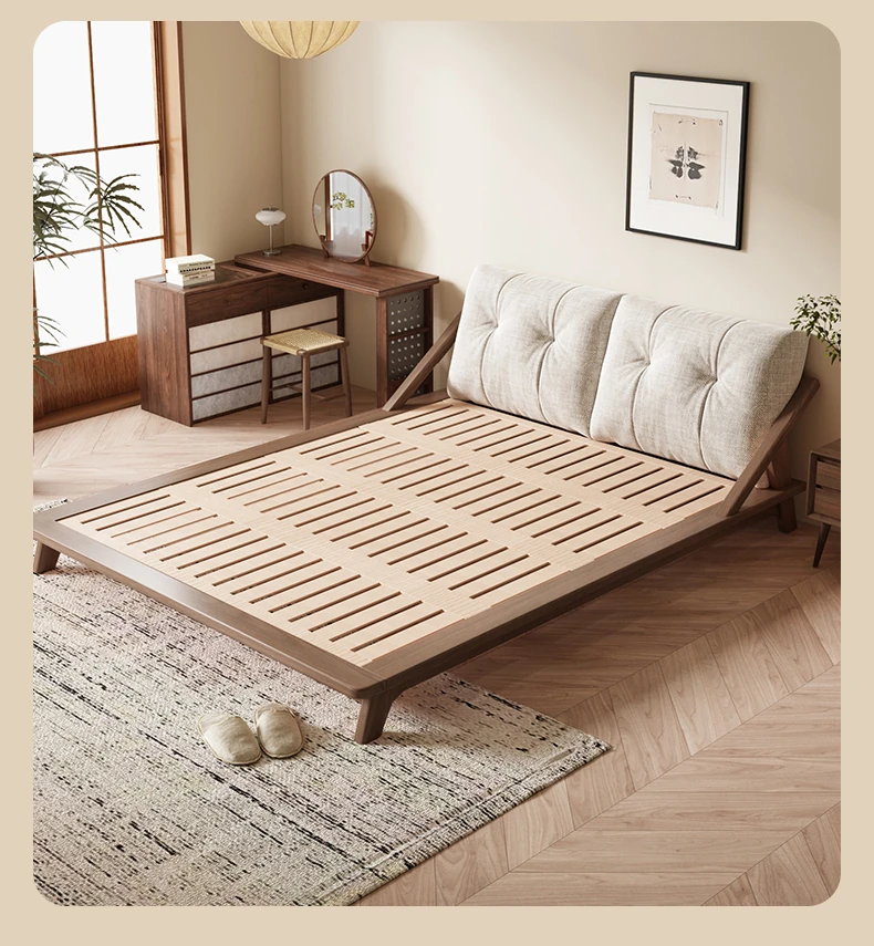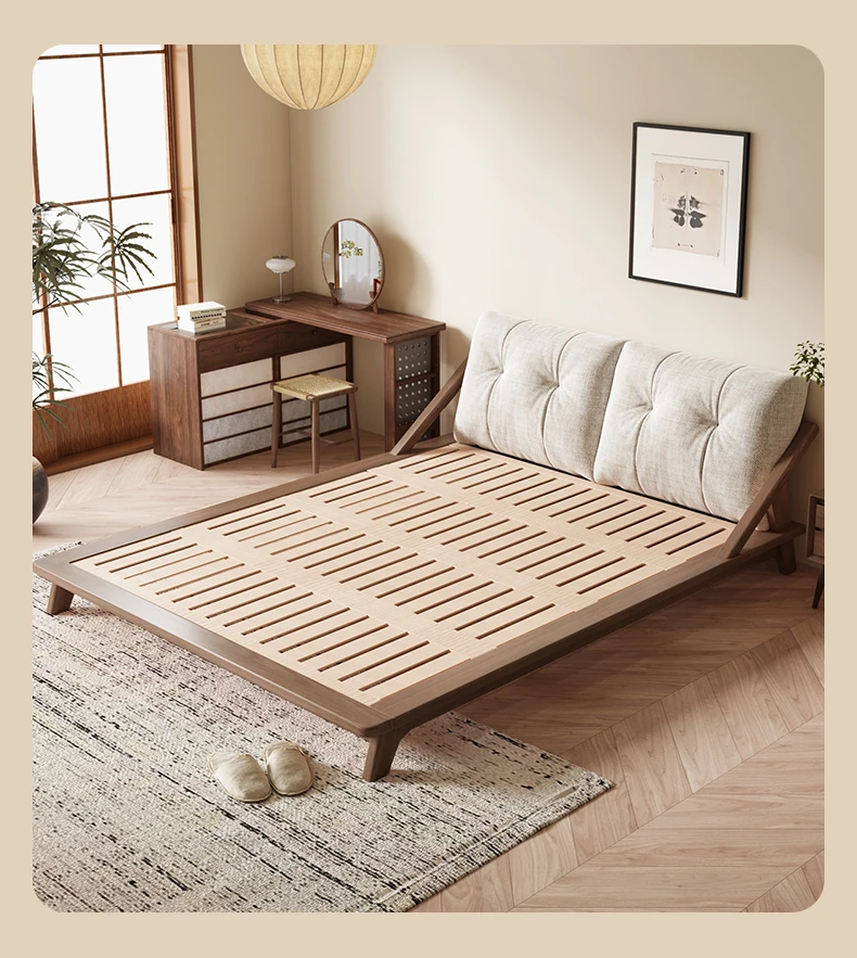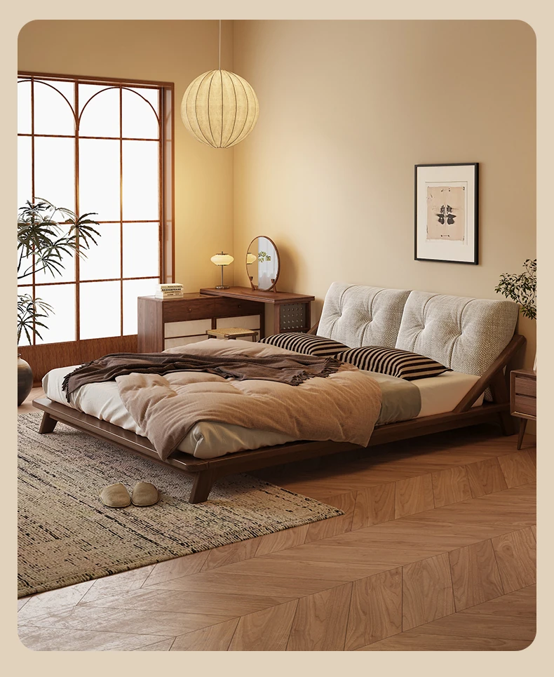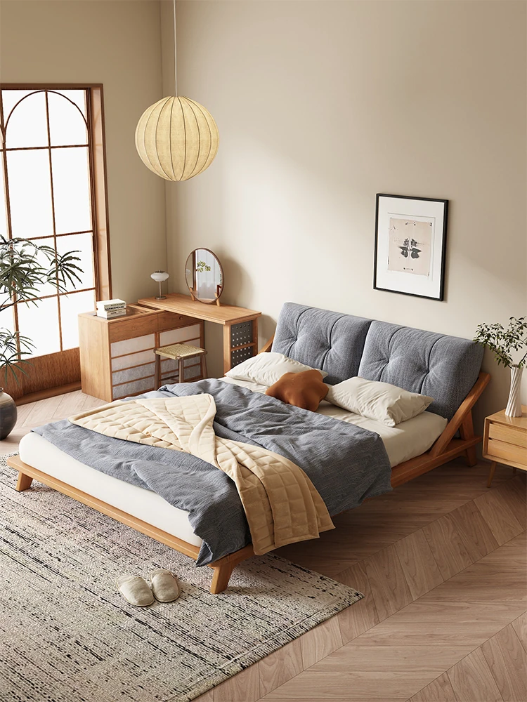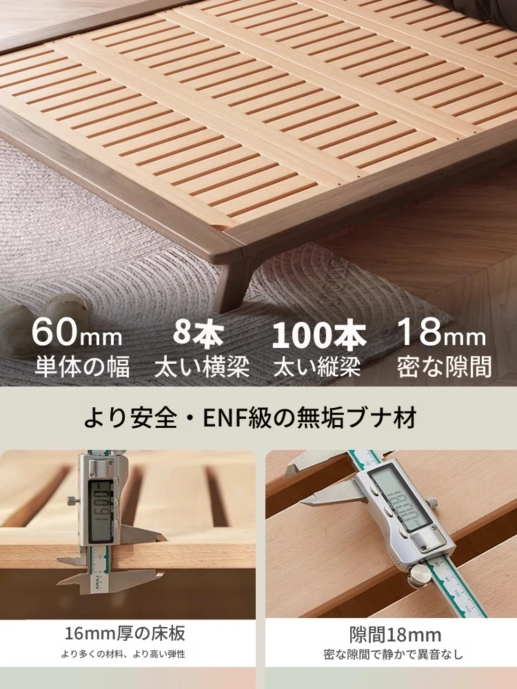 和風天然木製1.8mベッド|クリーミーなデザインの低床タイプ|主寝室や小さな部屋に最適|ホワイトアッシュの畳ベッドで心地よい眠りを提供!