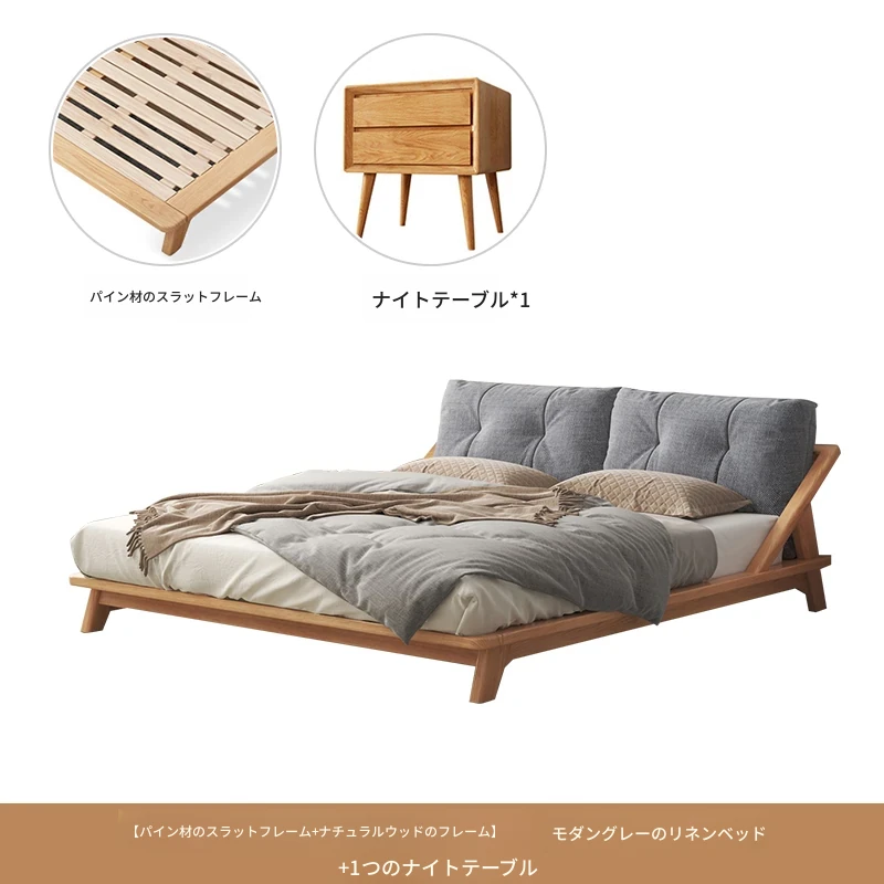 【ホワイトアッシュフレーム/ナチュラルカラー】グレーのコットンリネン+1つのナイトスタンド