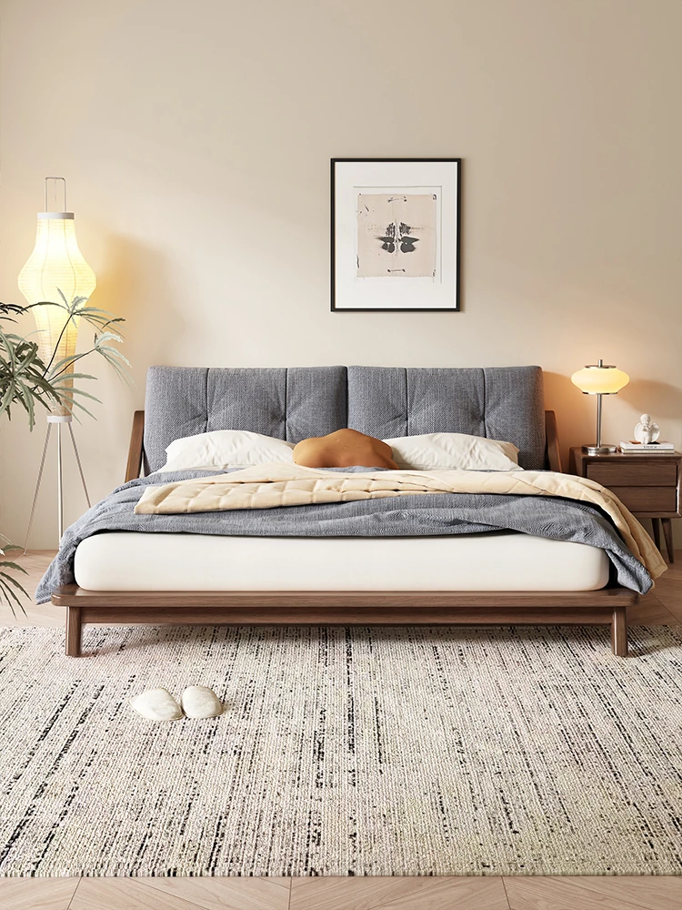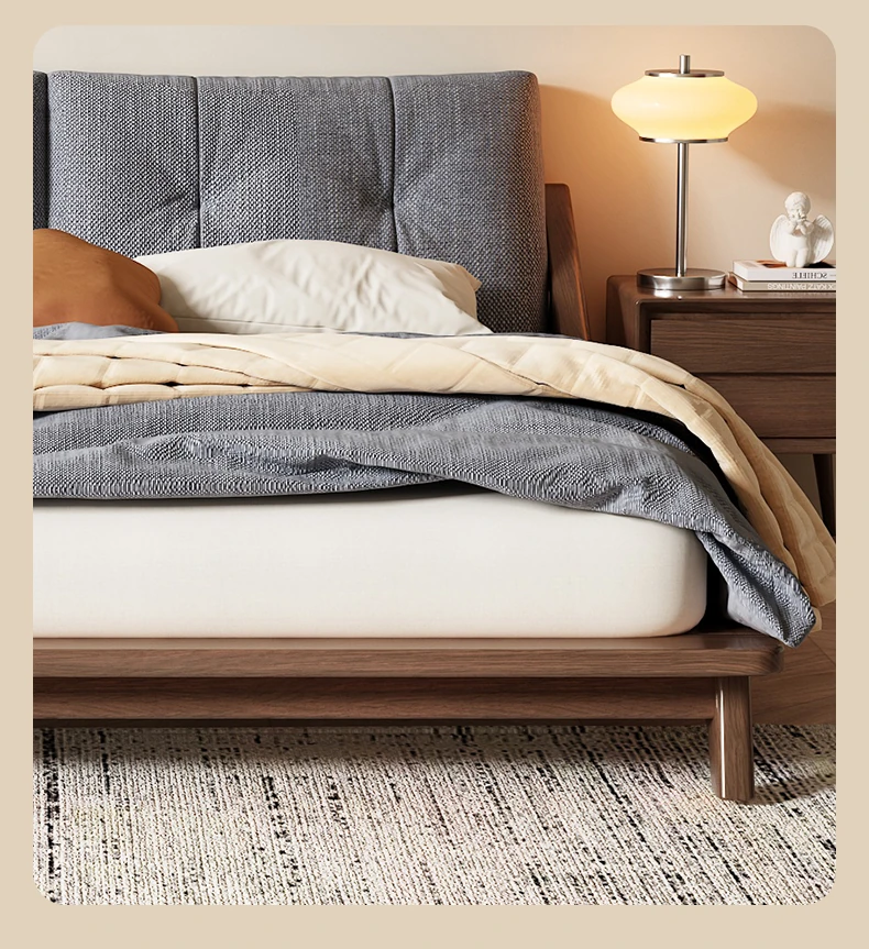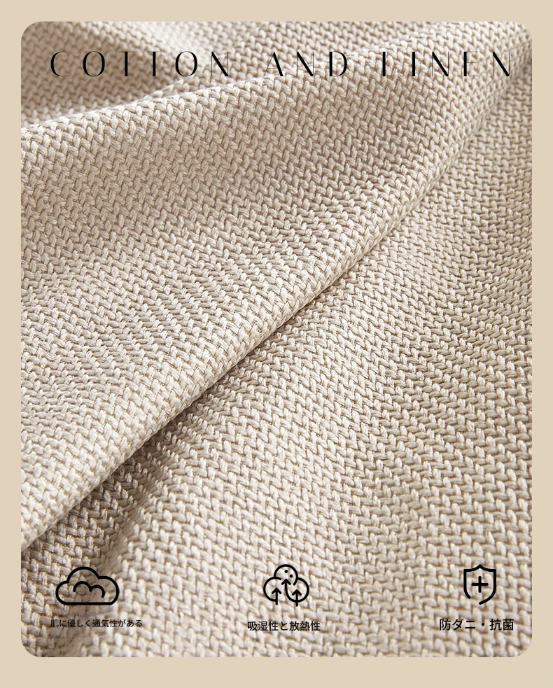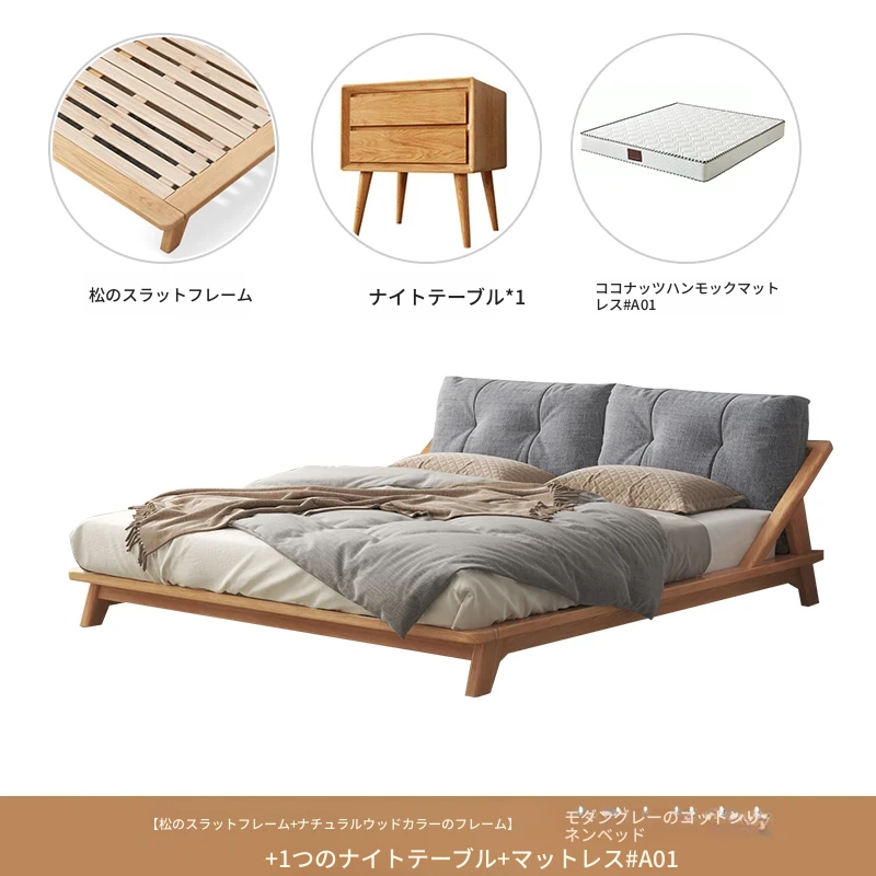 【マットレスセット-ナチュラルカラー】グレーのコットンリネン+2つのナイトスタンド+マットレス#A01