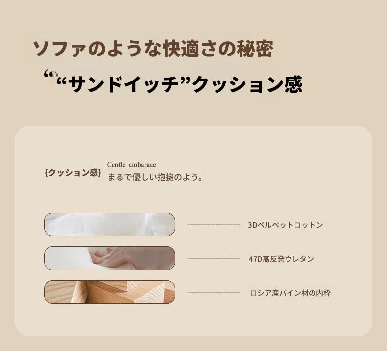 クッション高さアップ版【ホワイトアッシュフレーム/ナチュラルカラー】アイボリーのコットンリネン