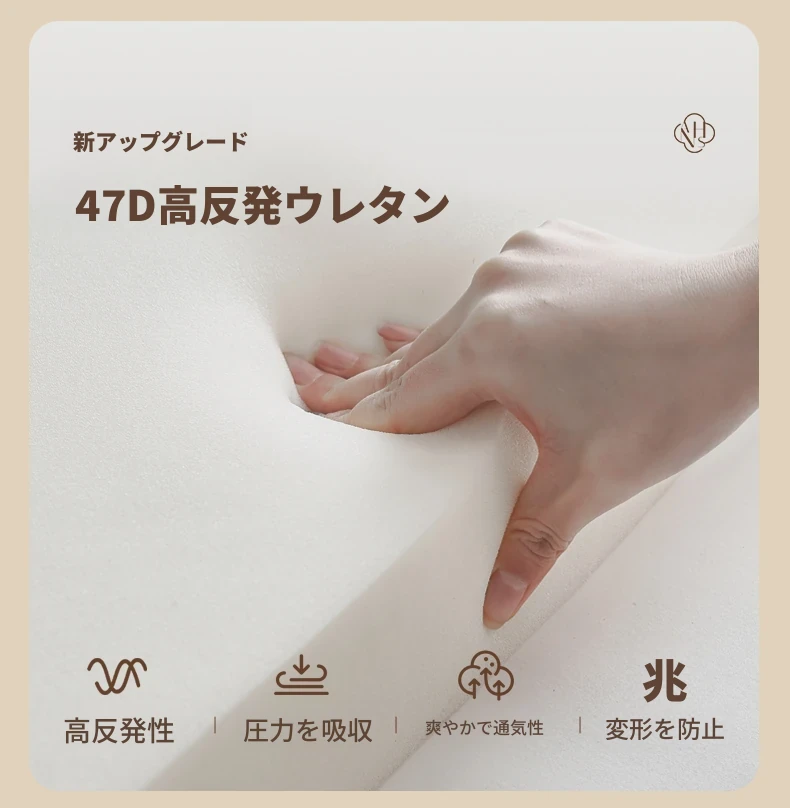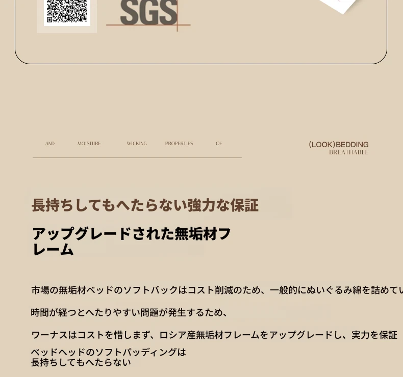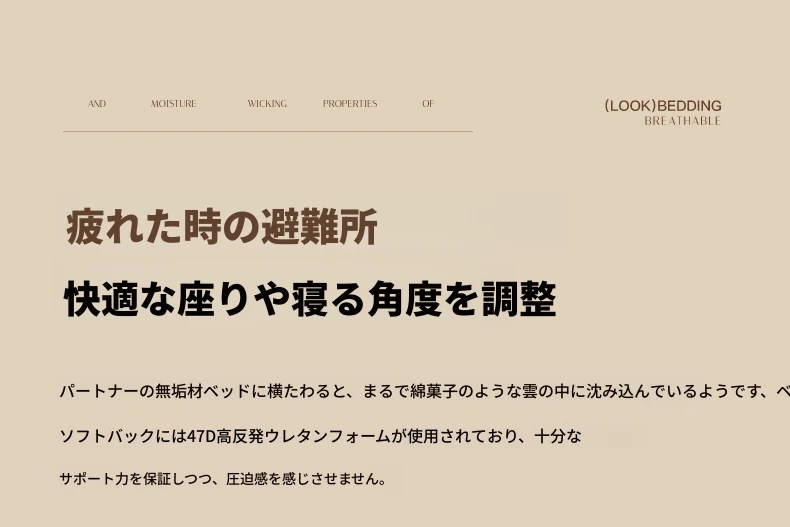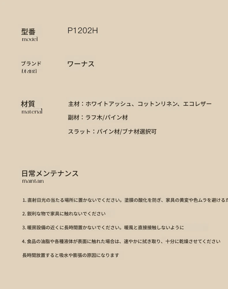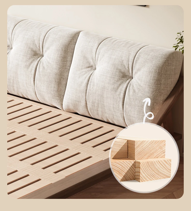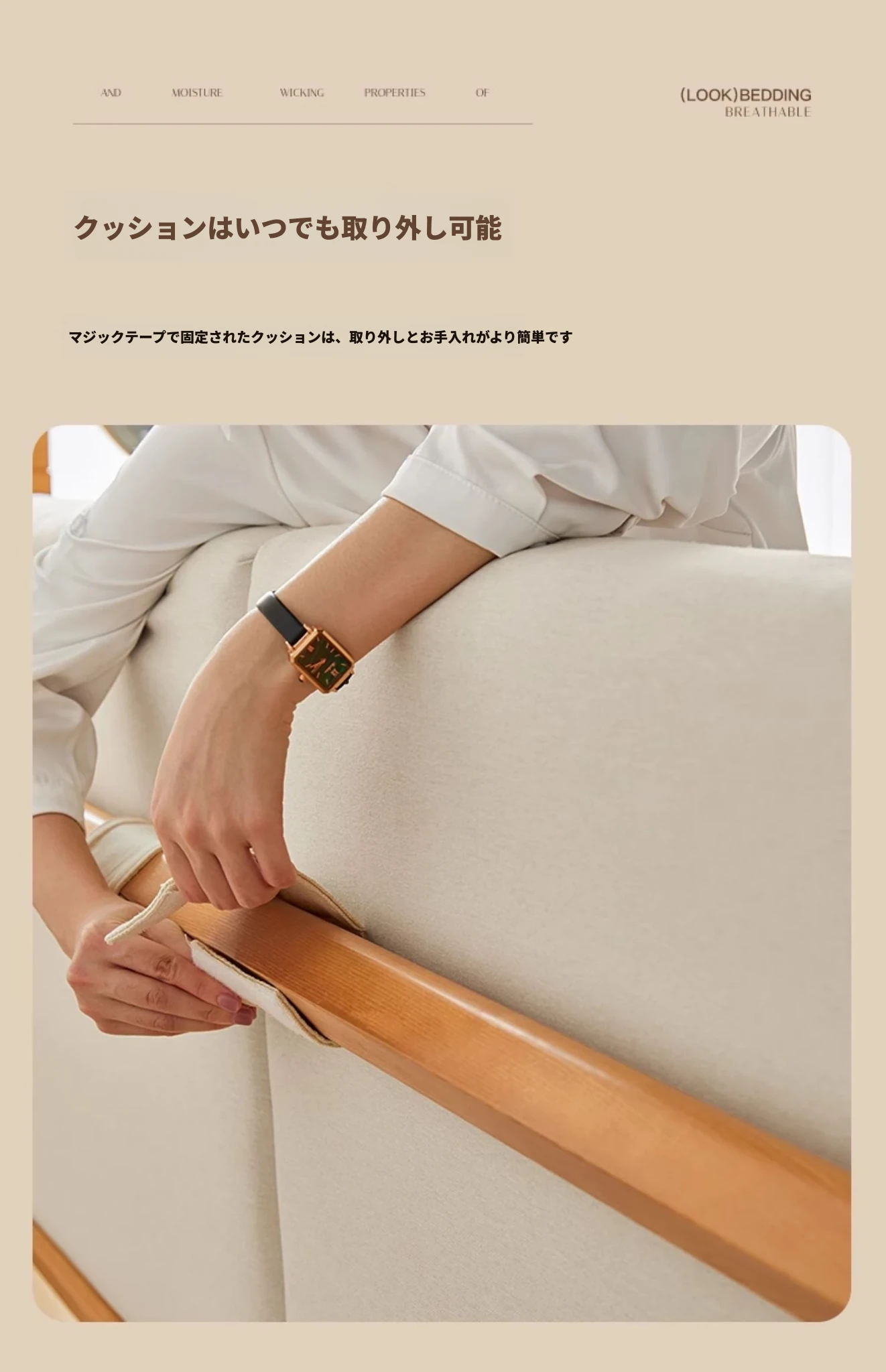 【アップグレードビーチ材ベッドボード+ホワイトアッシュフレーム】アイボリーのコットンリネンクッション