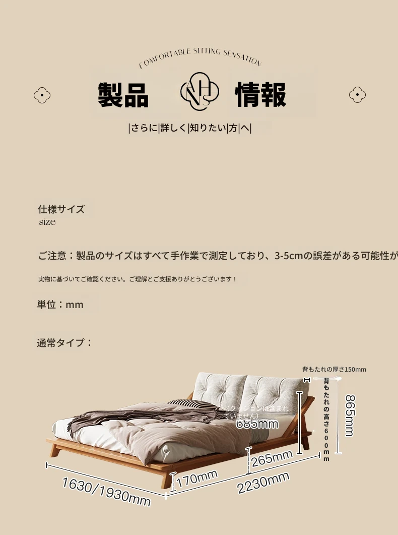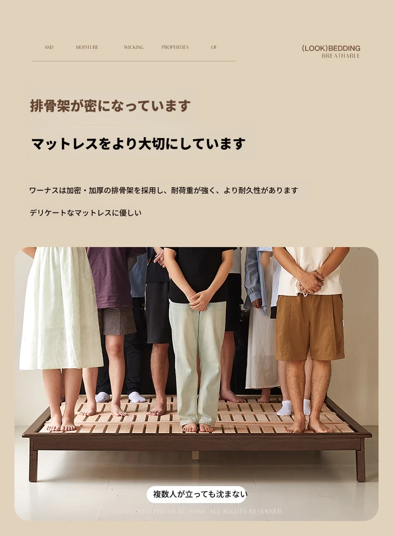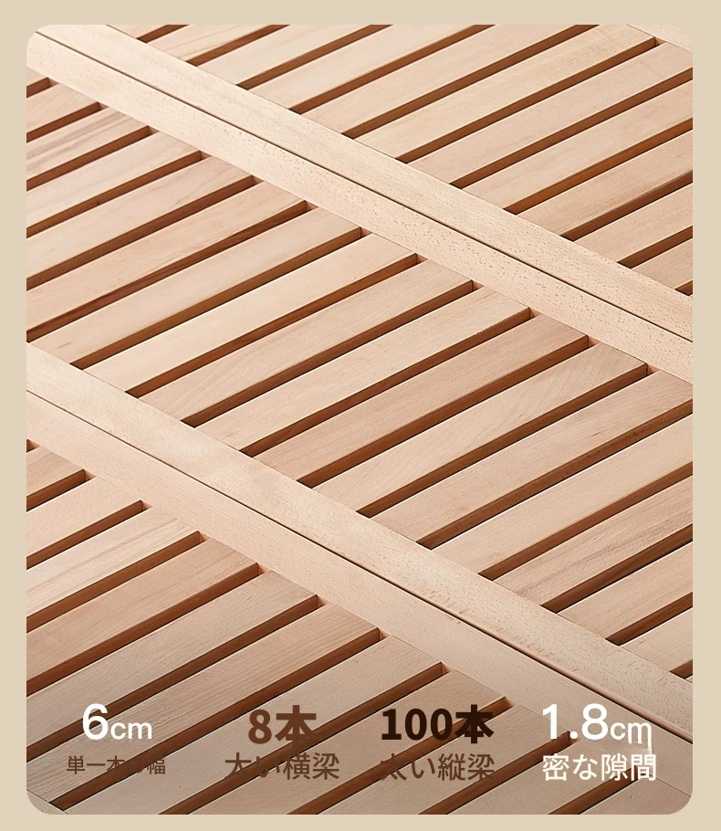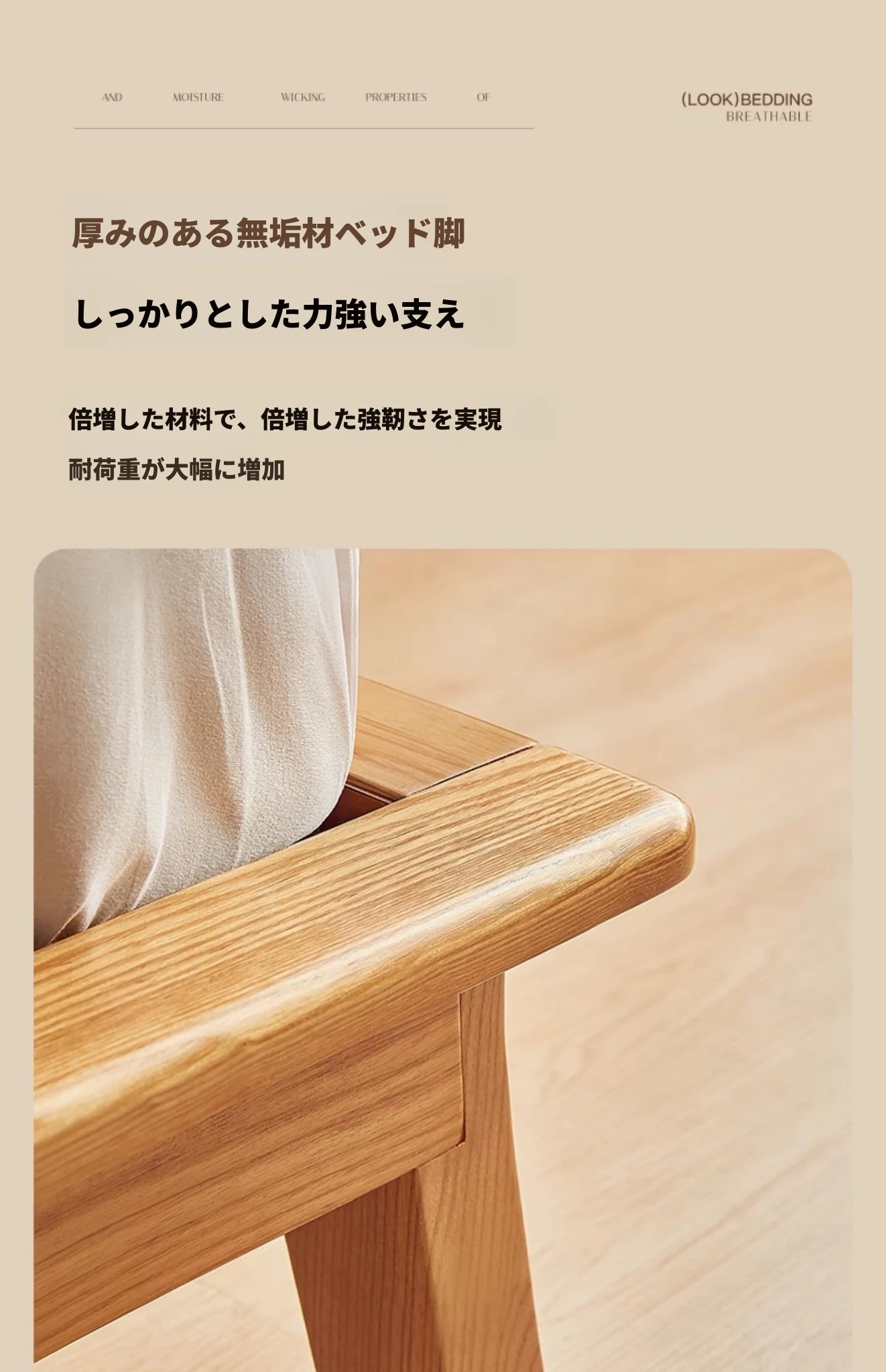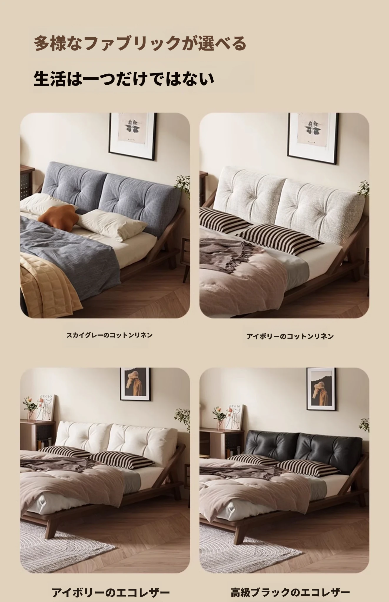 日本風の天然木製1.8mベッド - ナチュラルクリームカラーの低床フレーム、主寝室や小型住宅に最適なホワイトアッシュの畳スタイルダブルベッド。快適さとスタイルを両立した理想の寝具!