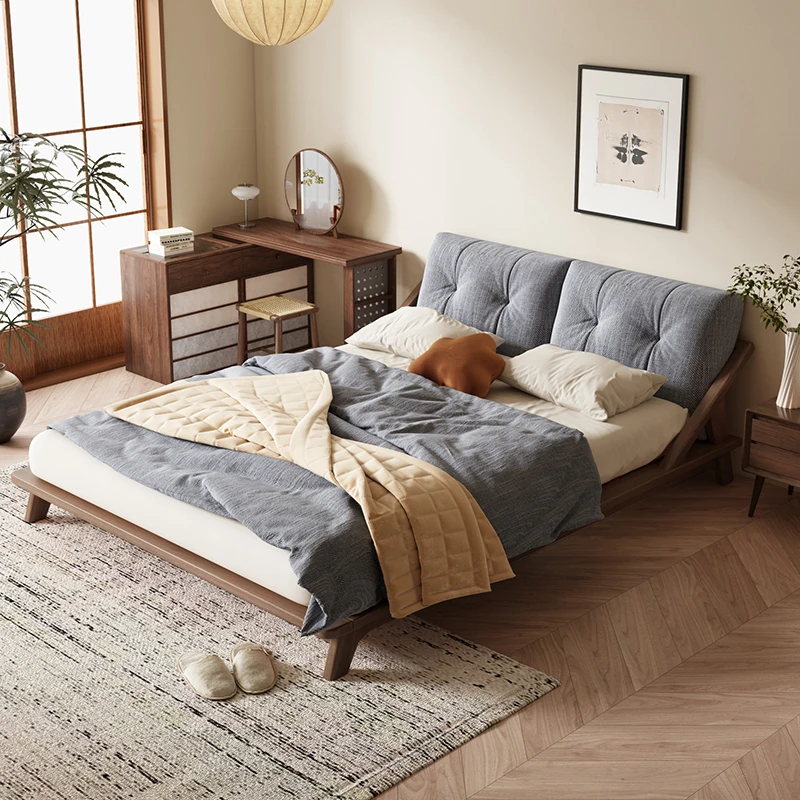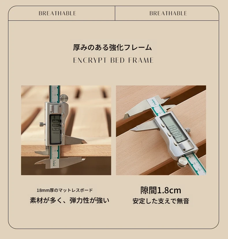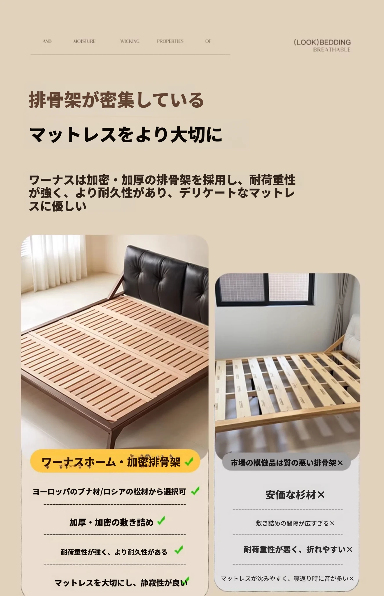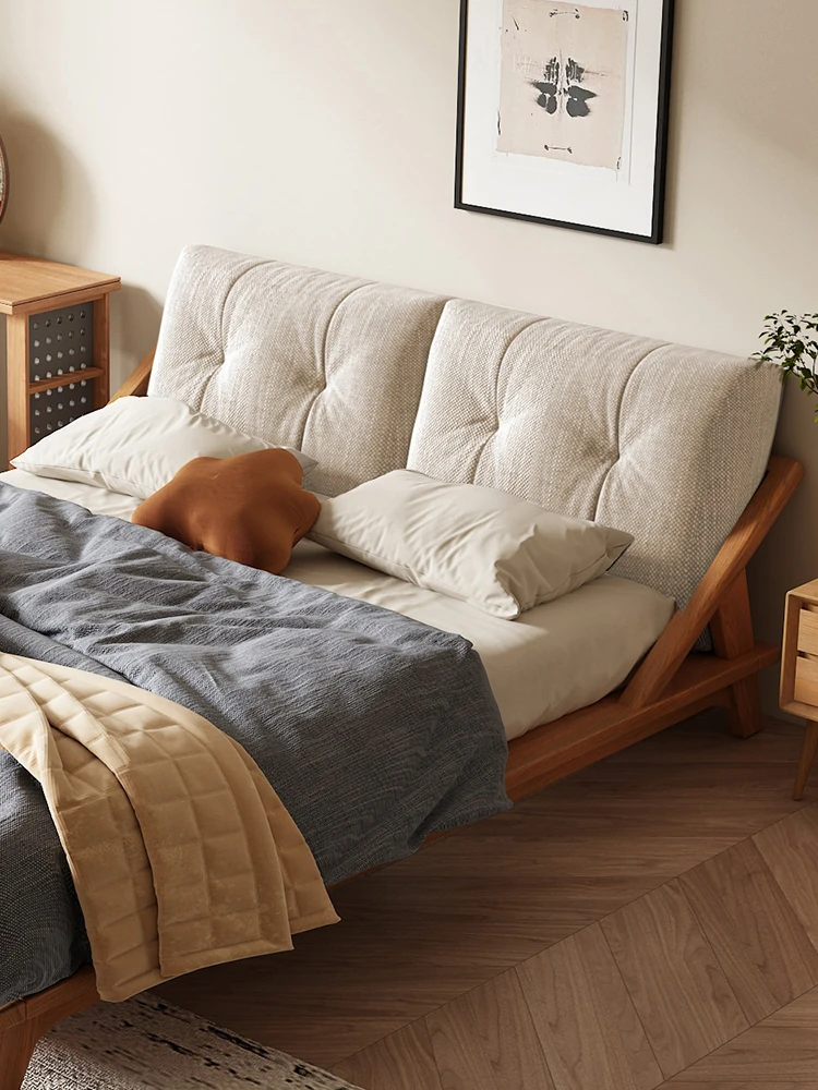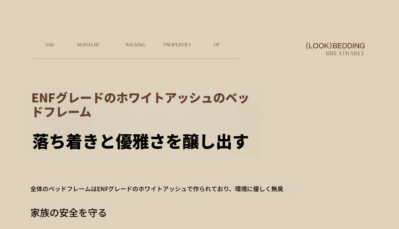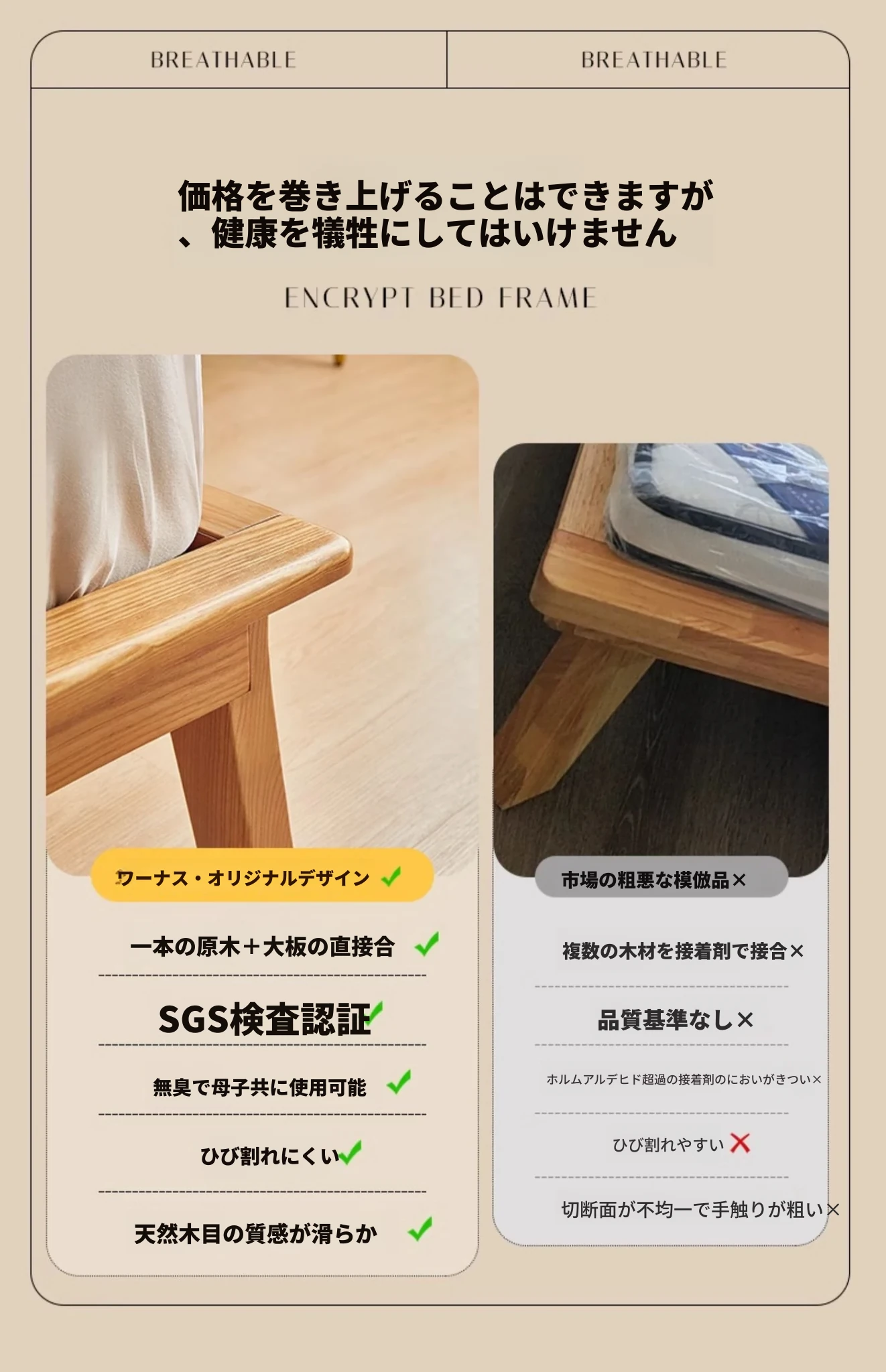 日本風の天然木製1.8mベッド - ナチュラルクリームカラーの低床フレーム、主寝室や小型住宅に最適なホワイトアッシュの畳スタイルダブルベッド。快適さとスタイルを両立した理想の寝具!