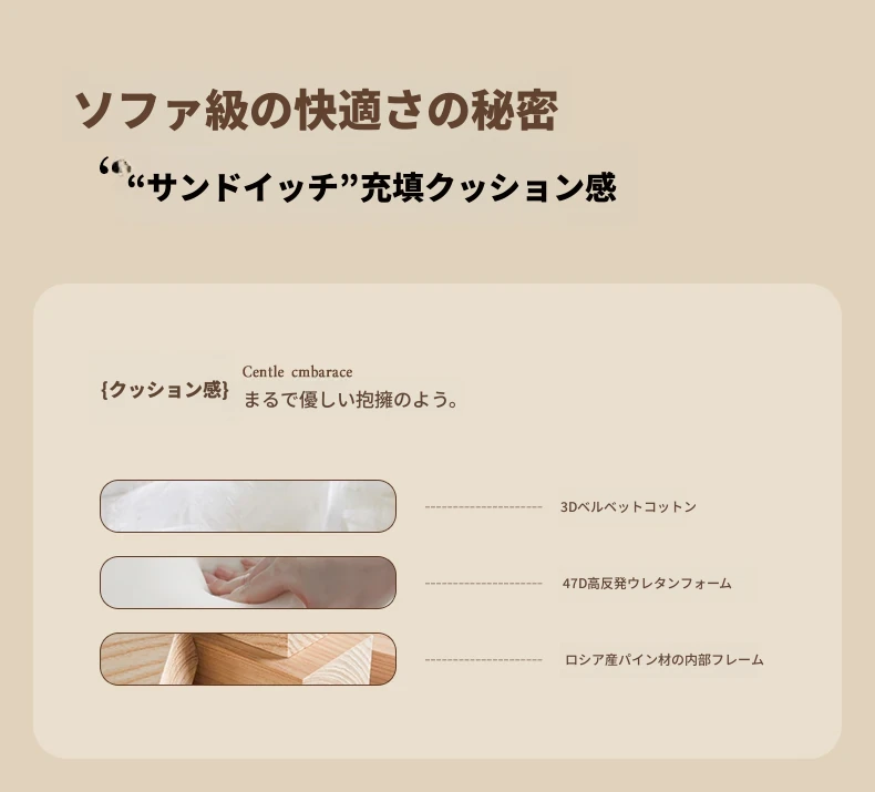 【アップグレードビーチウッドスラット+ホワイトアッシュフレーム】アイボリーのコットンリネン高背クッション