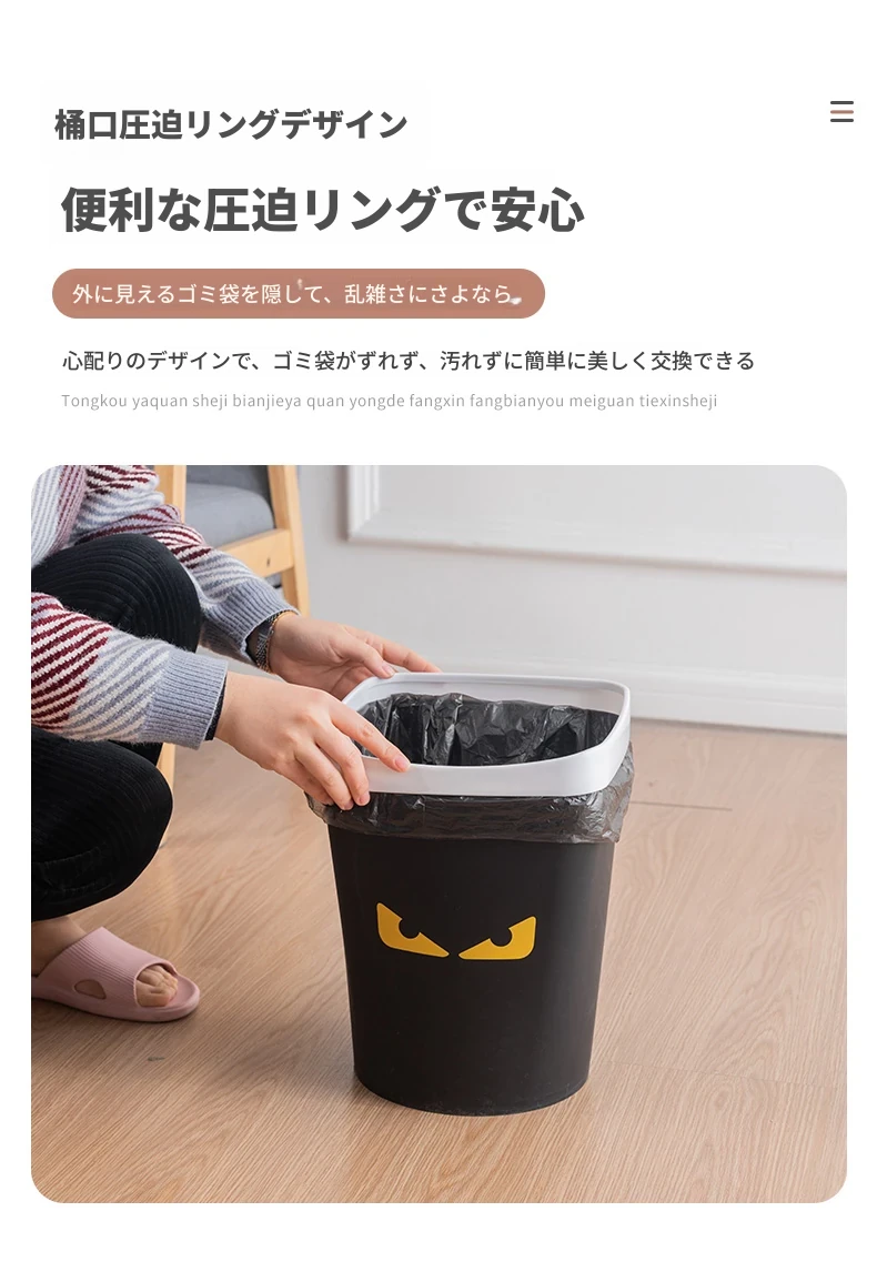 ハウスゴミ箱 大容量 無蓋 圧縮リング付き リビング・寝室・バスルーム・キッチン・オフィス用 使いやすい大サイズ!お部屋をスッキリ整理整頓!