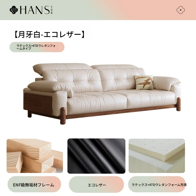 2メートル【三日月ホワイト-エコレザー】バイオレットスポンジタイプ