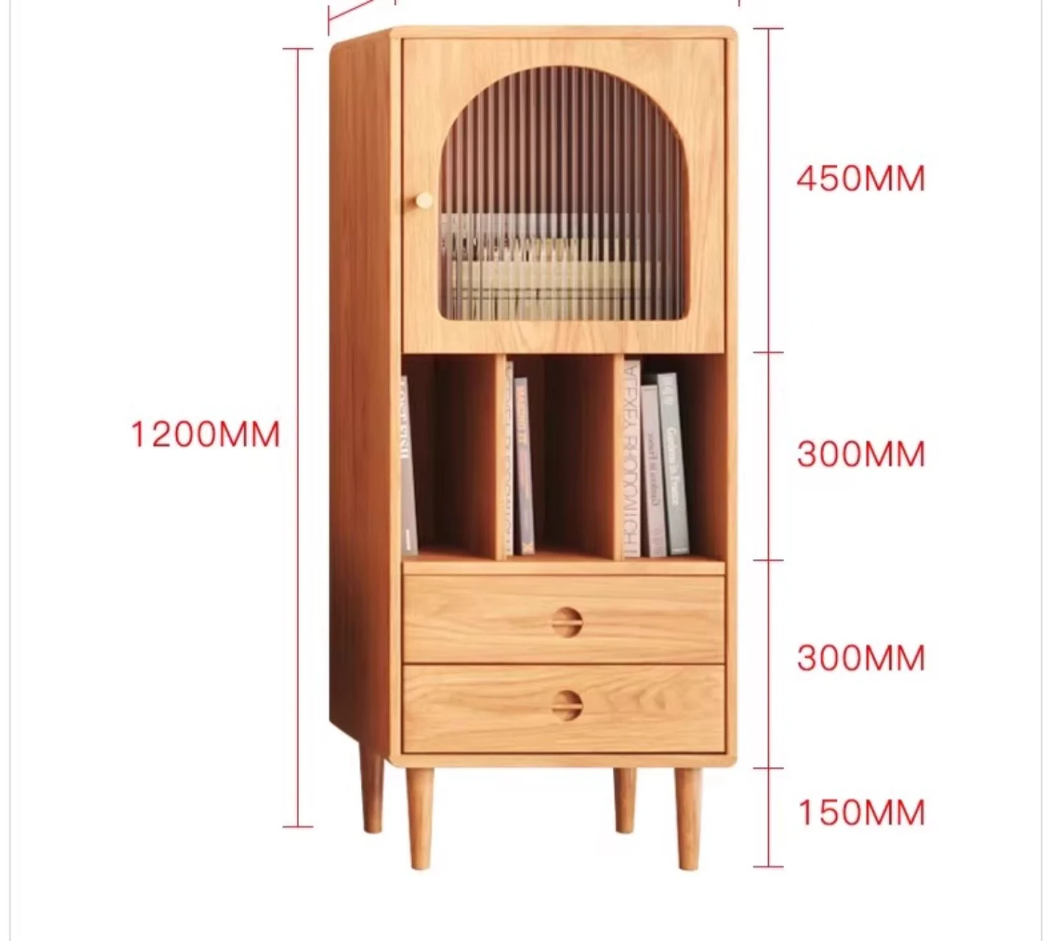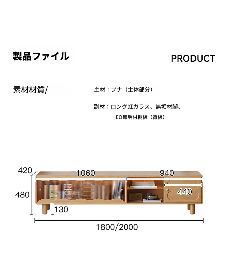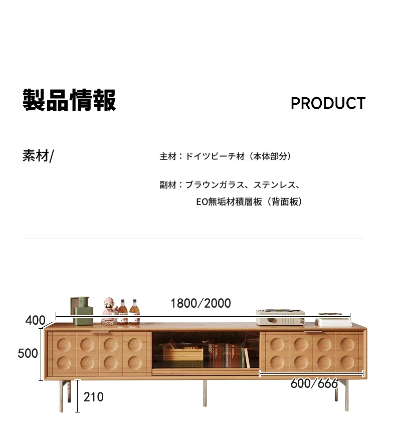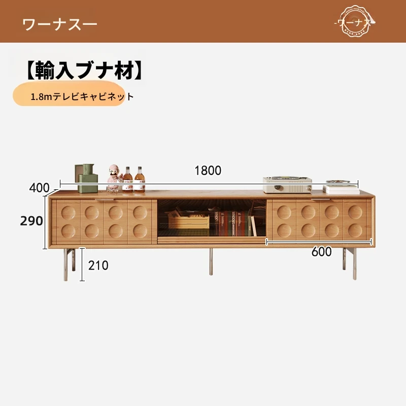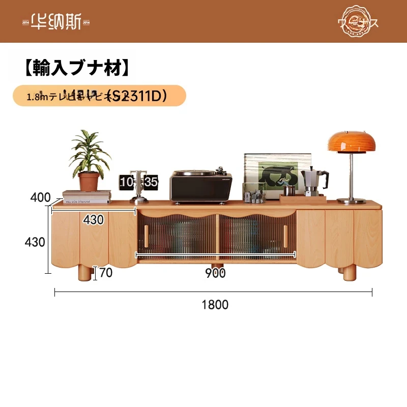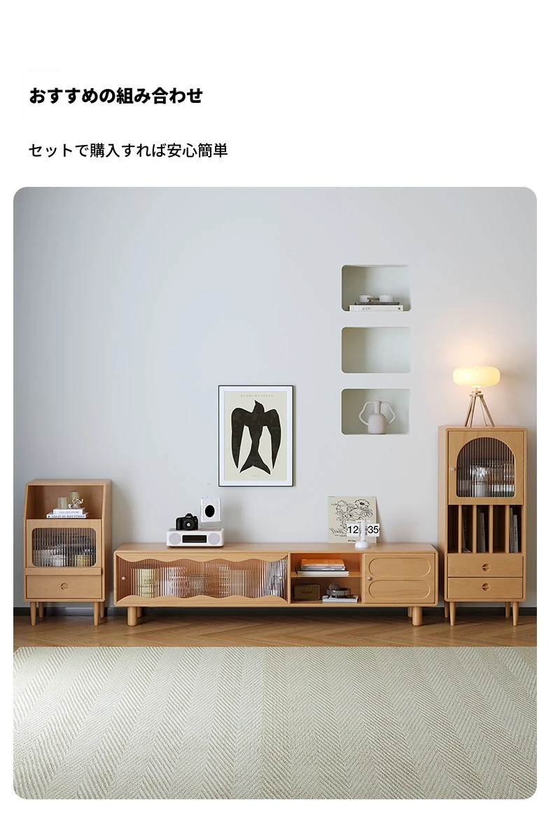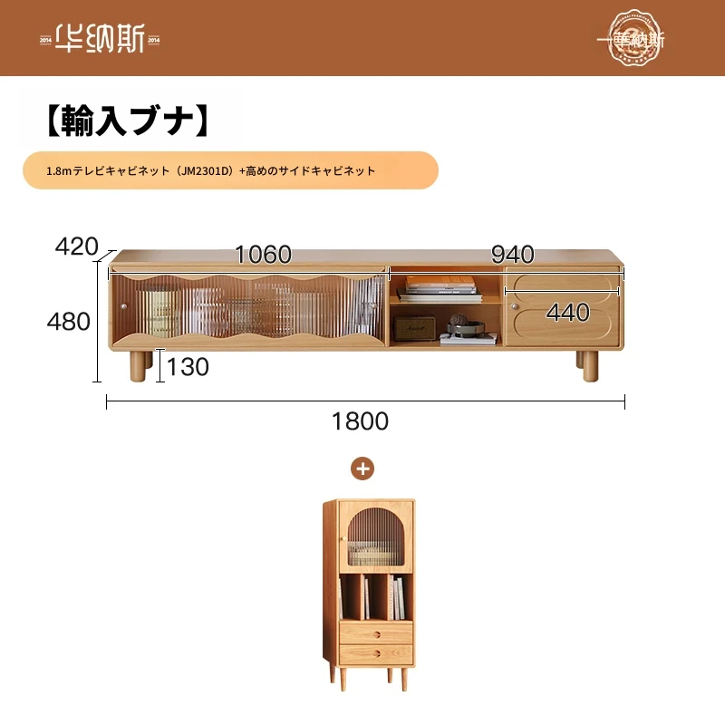 1.8mブナ材テレビキャビネット(JM2301D)+無垢材棚付きハイサイドキャビネット(S2111N)