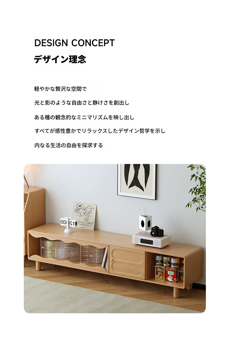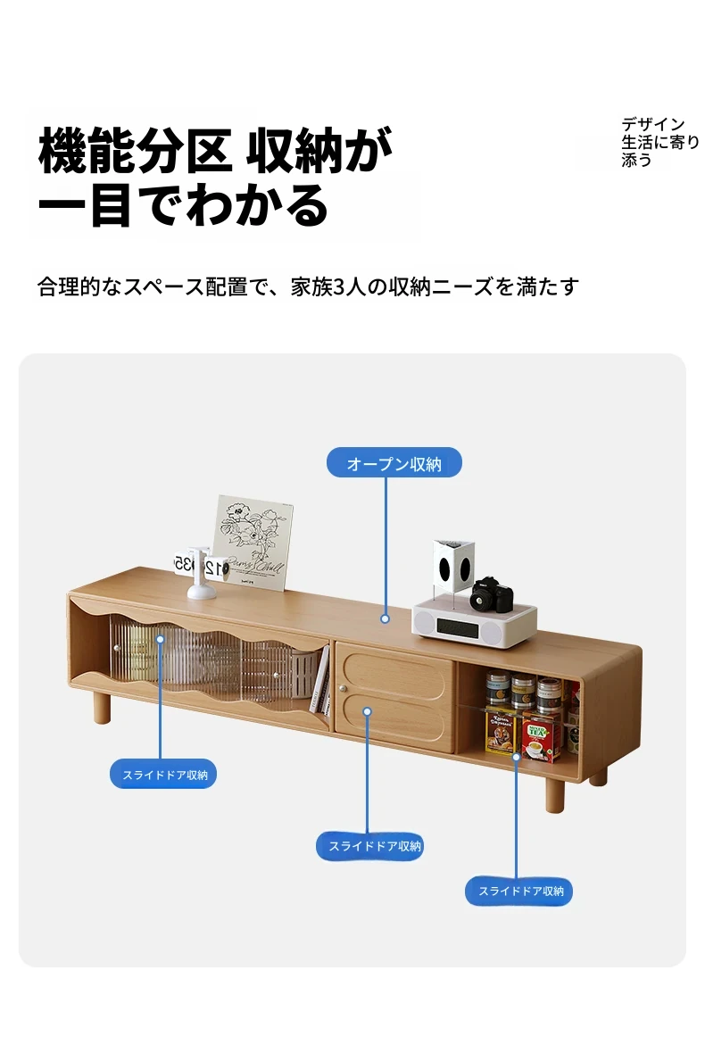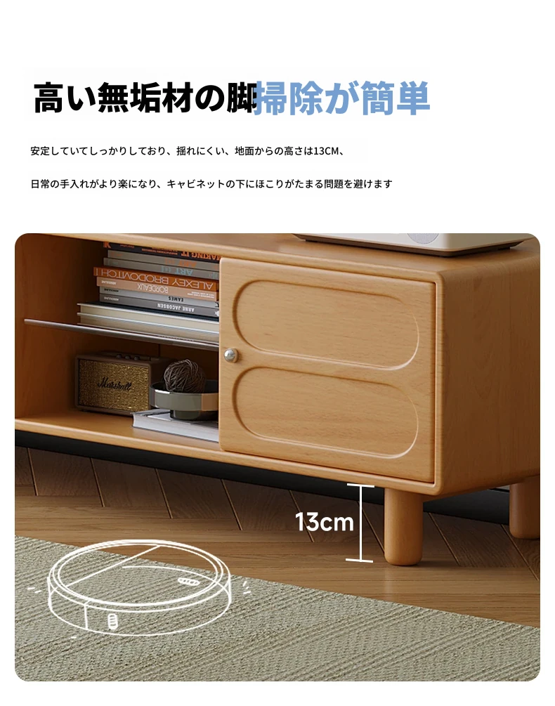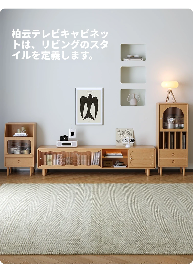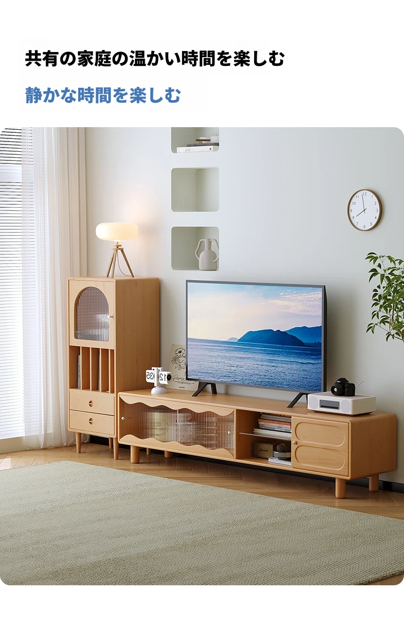 特価!ナチュラルウッド風の無垢材テレビキャビネット - 小さなリビングにぴったりなシンプルなブナ材収納キャビネット一体型!おしゃれで機能的な収納空間を実現します。