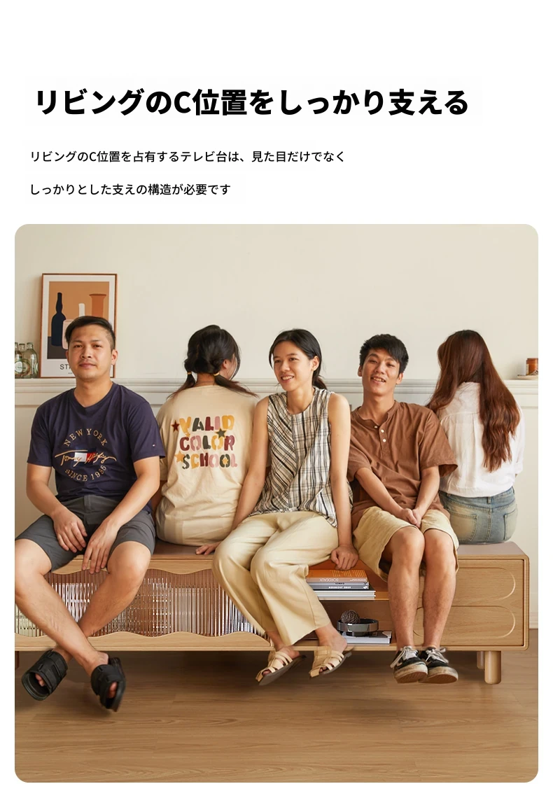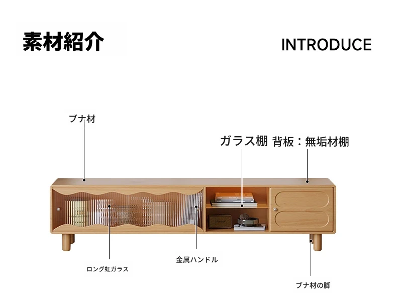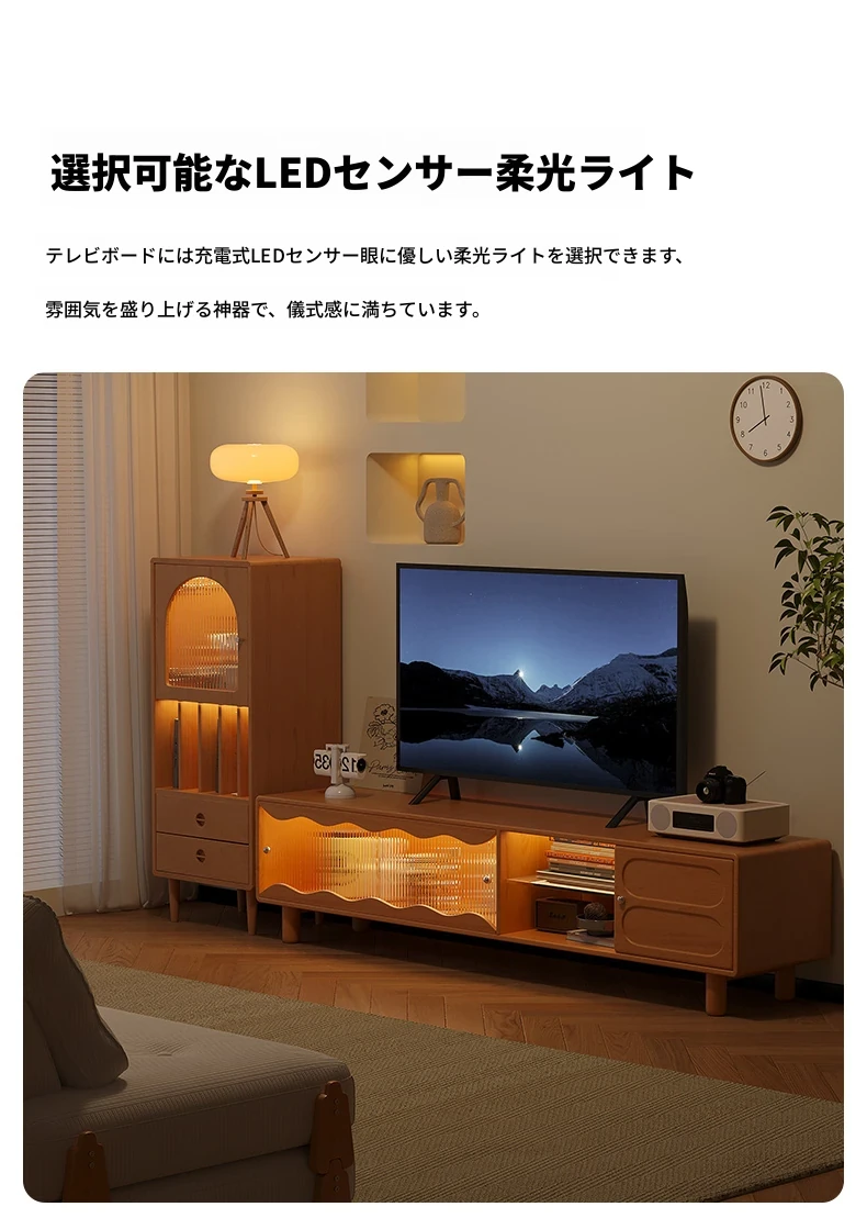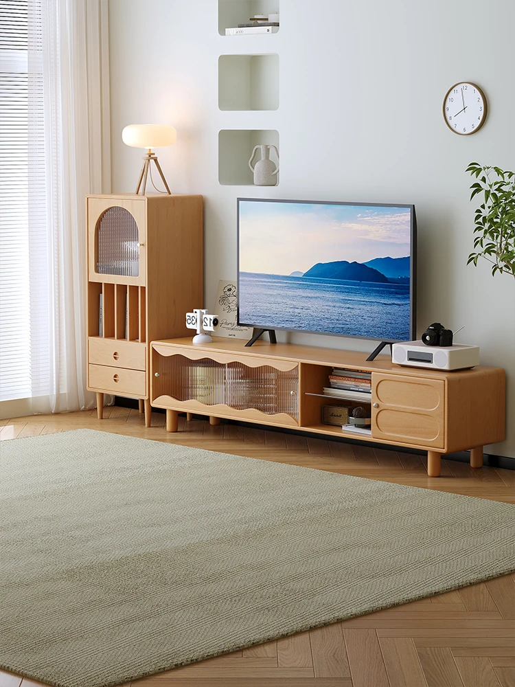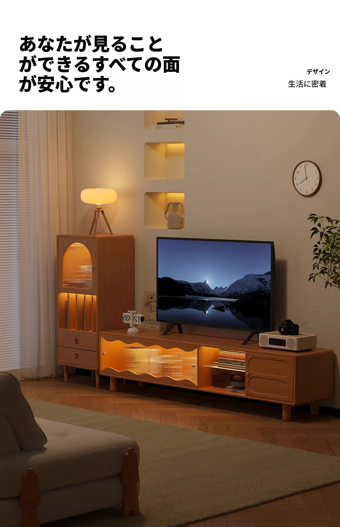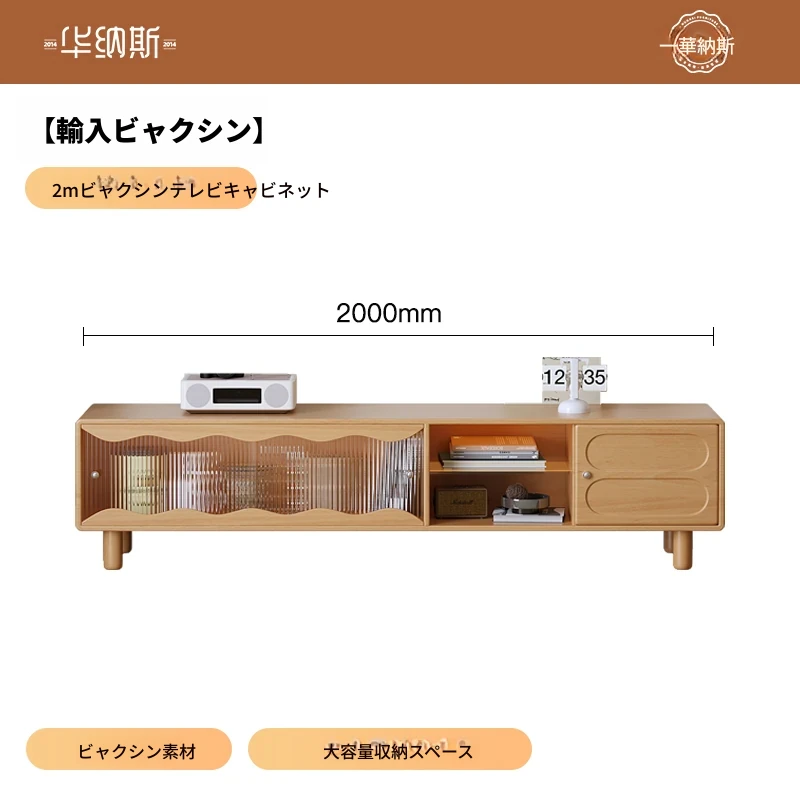 特価!ナチュラルウッド風の無垢材テレビキャビネット - 小さなリビングにぴったりなシンプルなブナ材収納キャビネット一体型!おしゃれで機能的な収納空間を実現します。