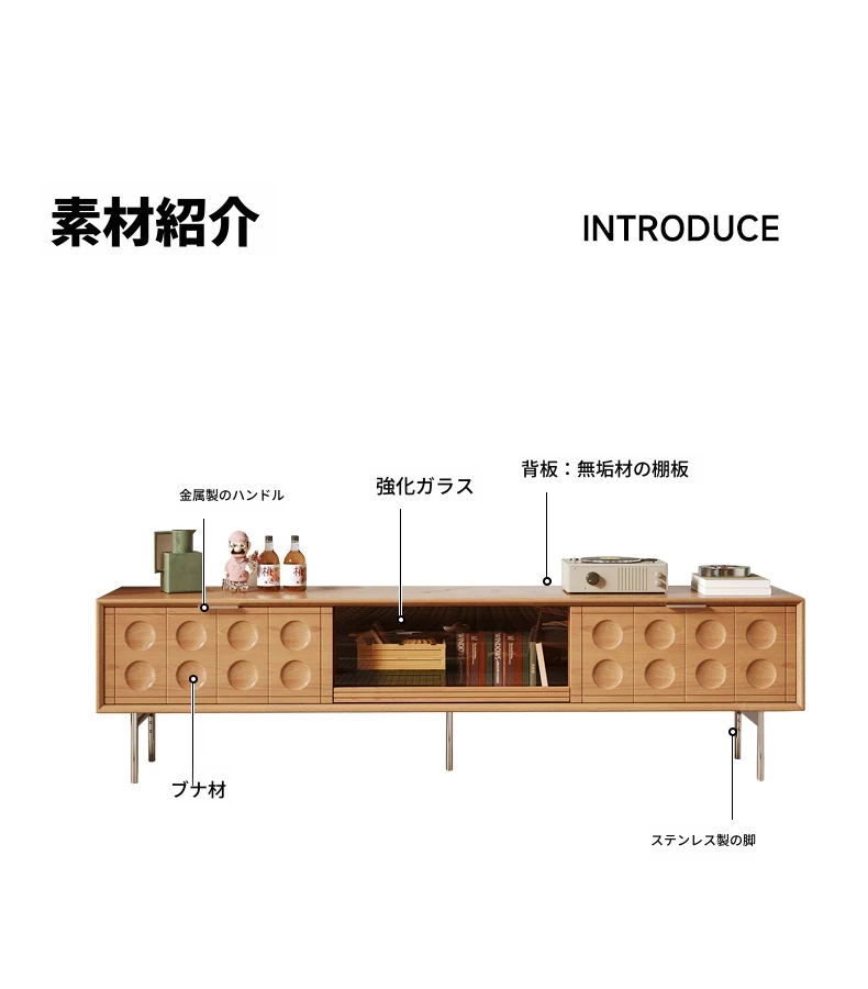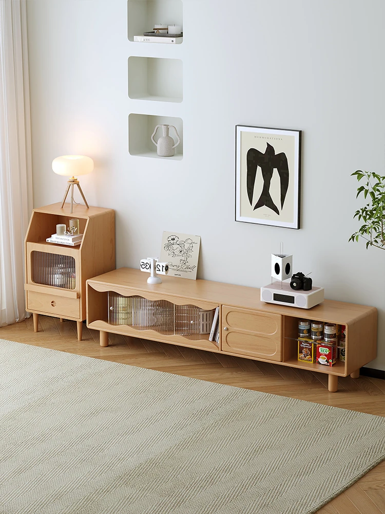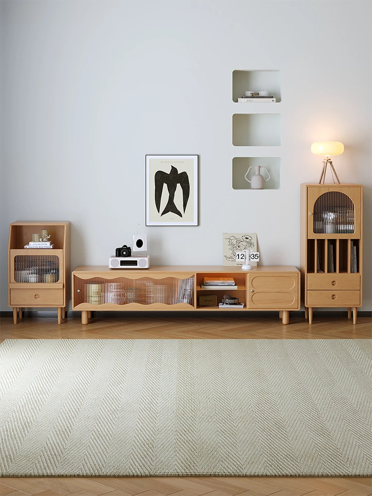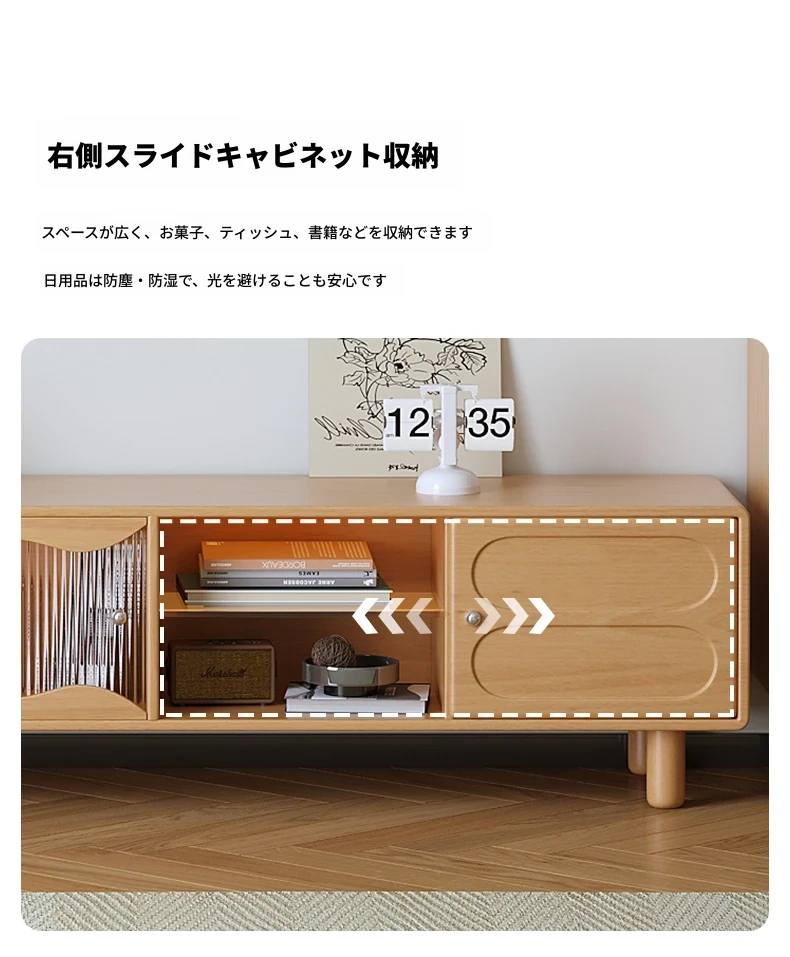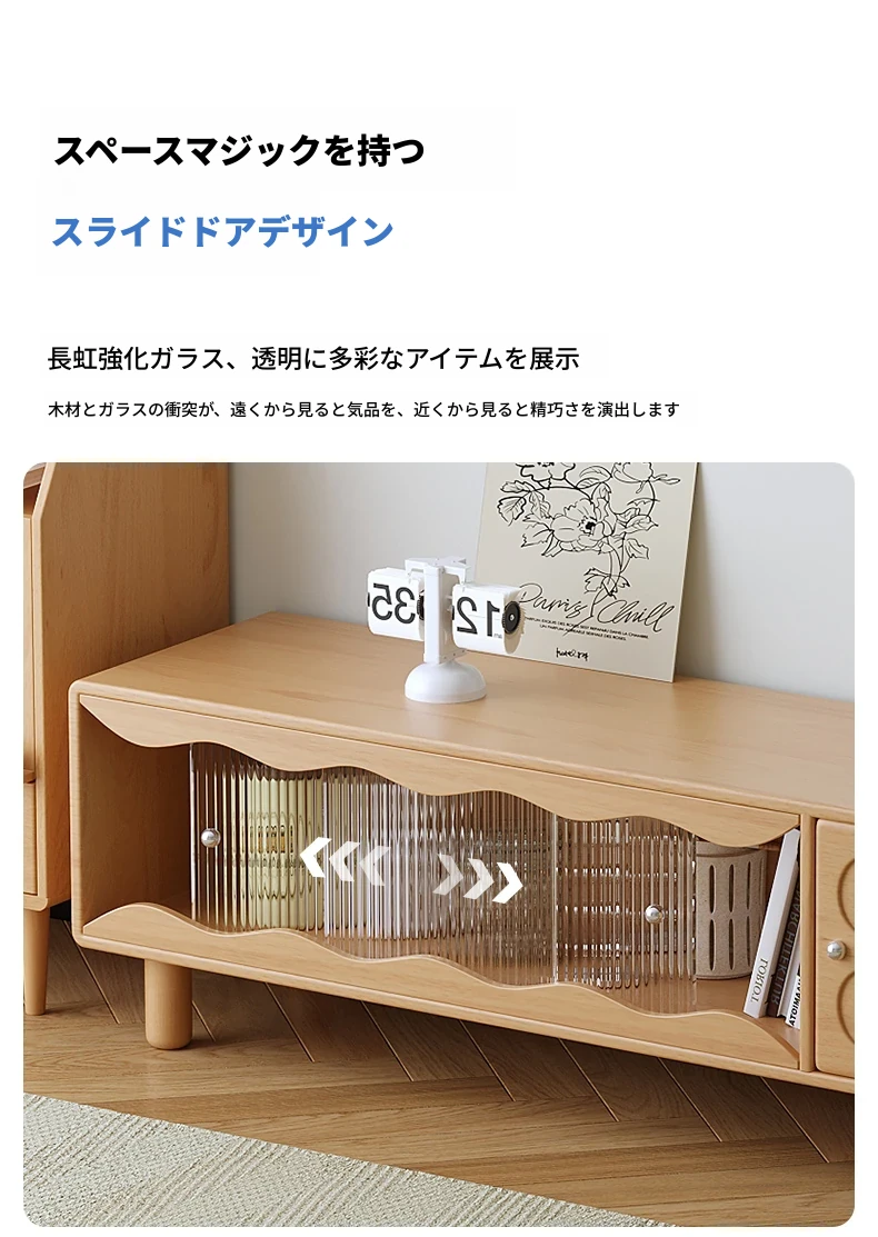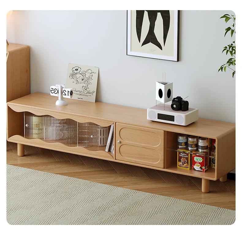 特価!ナチュラルウッド風の無垢材テレビキャビネット - 小さなリビングにぴったりなシンプルなブナ材収納キャビネット一体型!おしゃれで機能的な収納空間を実現します。
