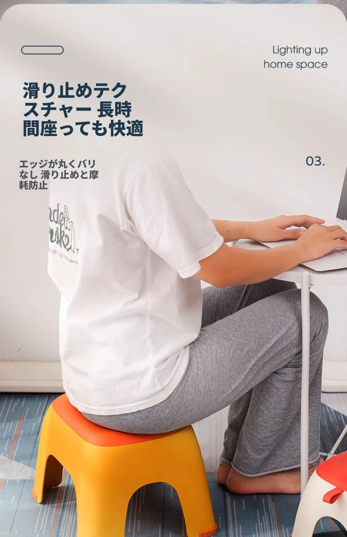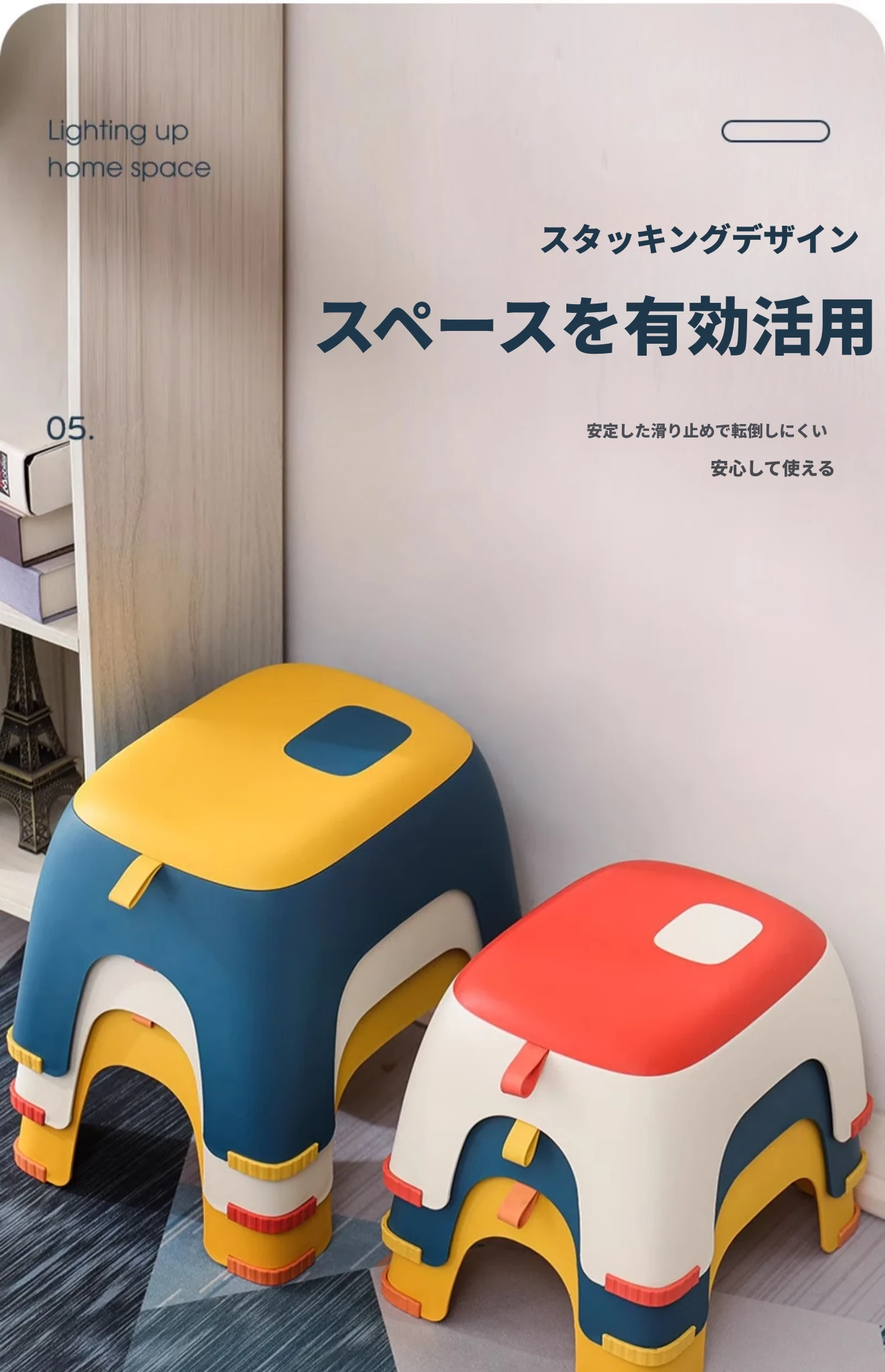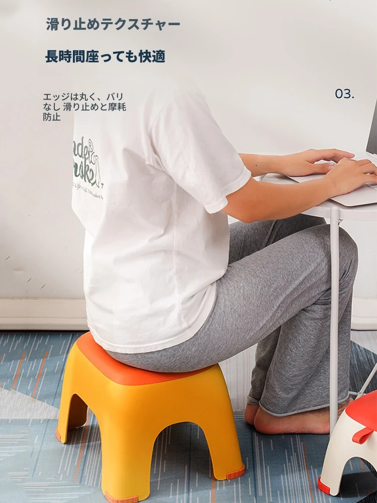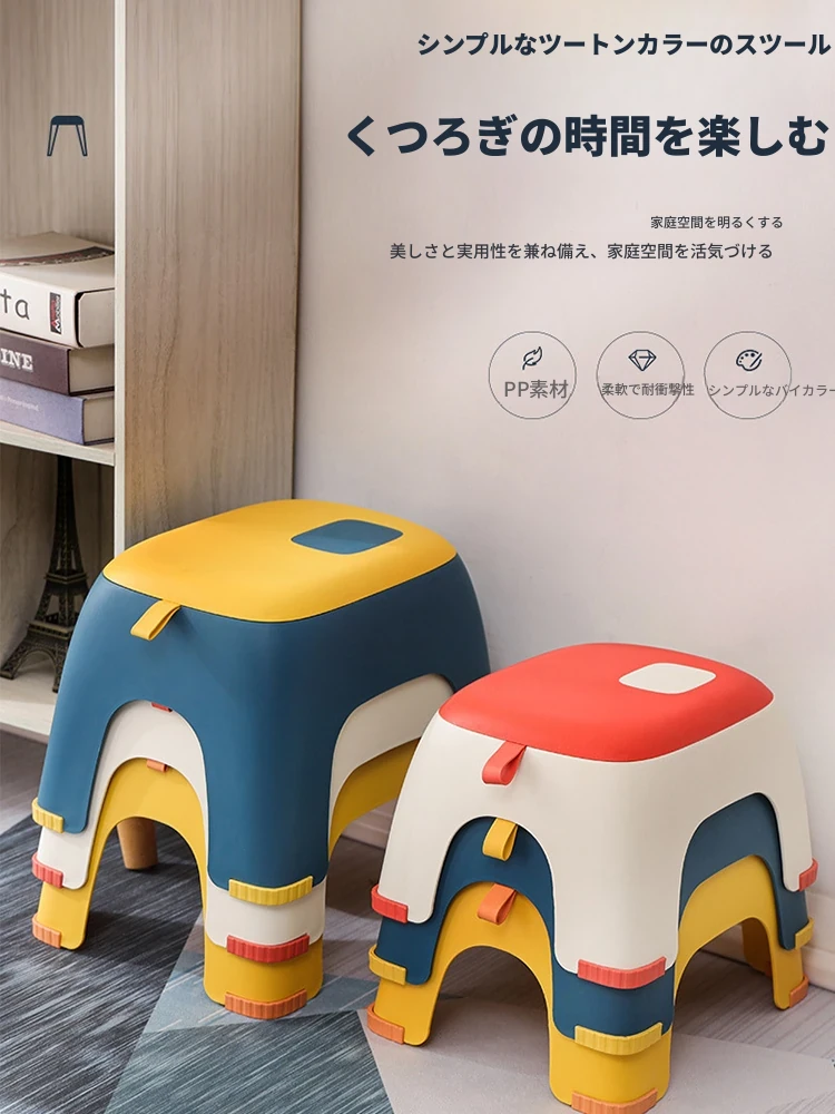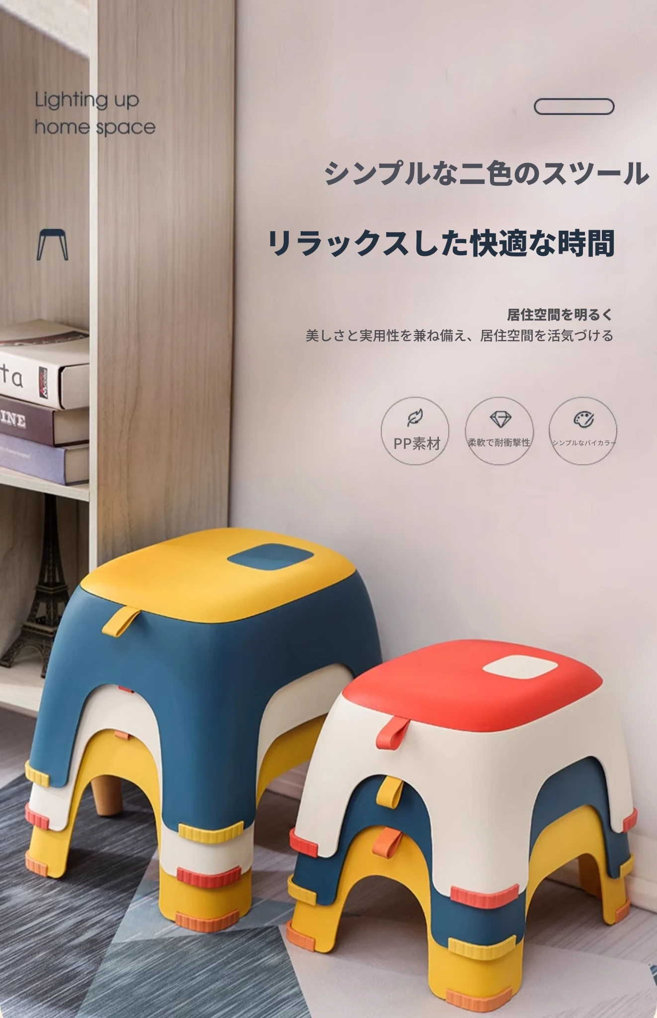 家庭用ミニスツール - おしゃれで厚みのあるプラスチック製、滑り止め付き!リビングやバスルームで大活躍の人気アイテム。快適な座り心地で、どんな場所にもぴったり!