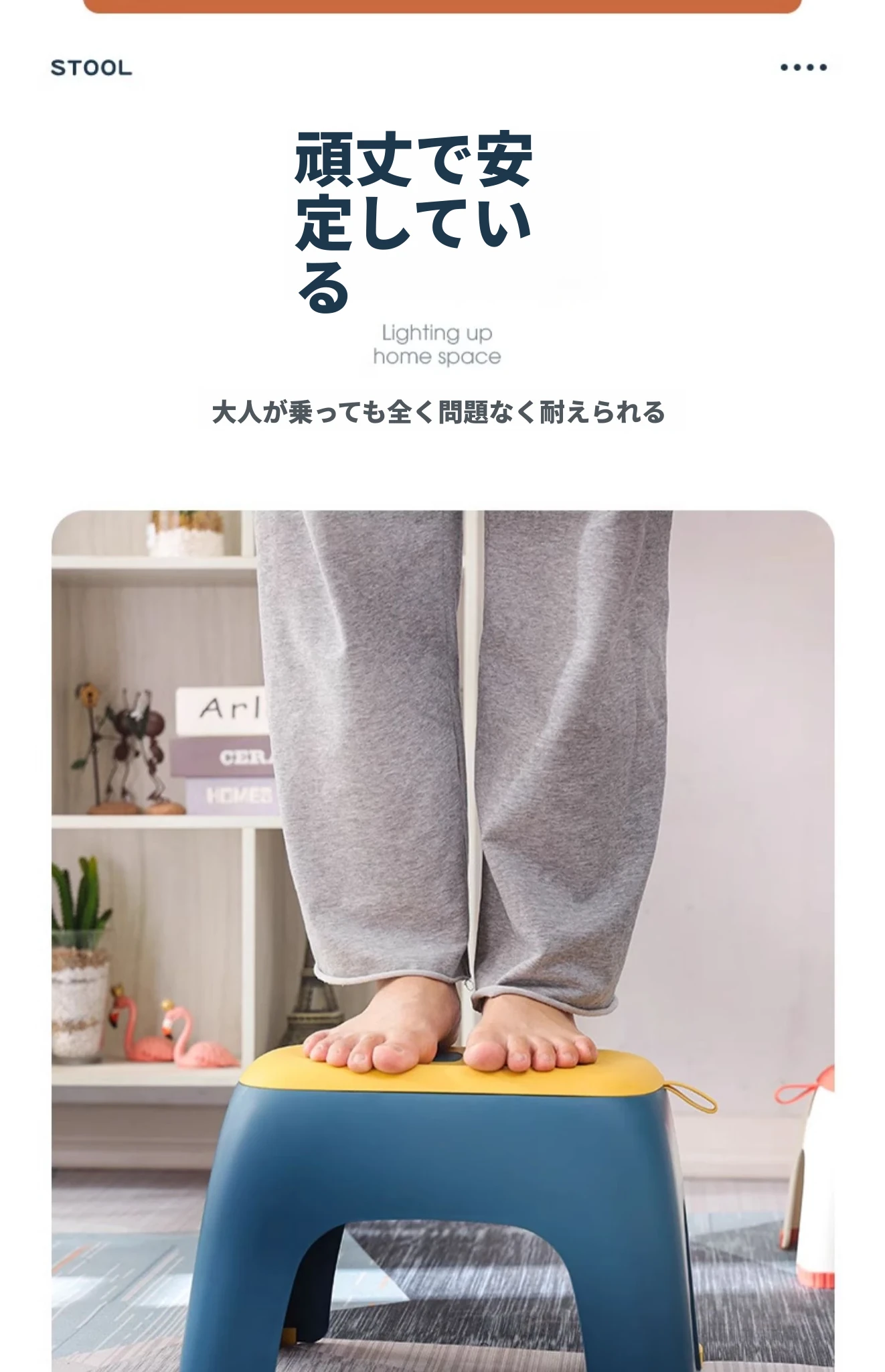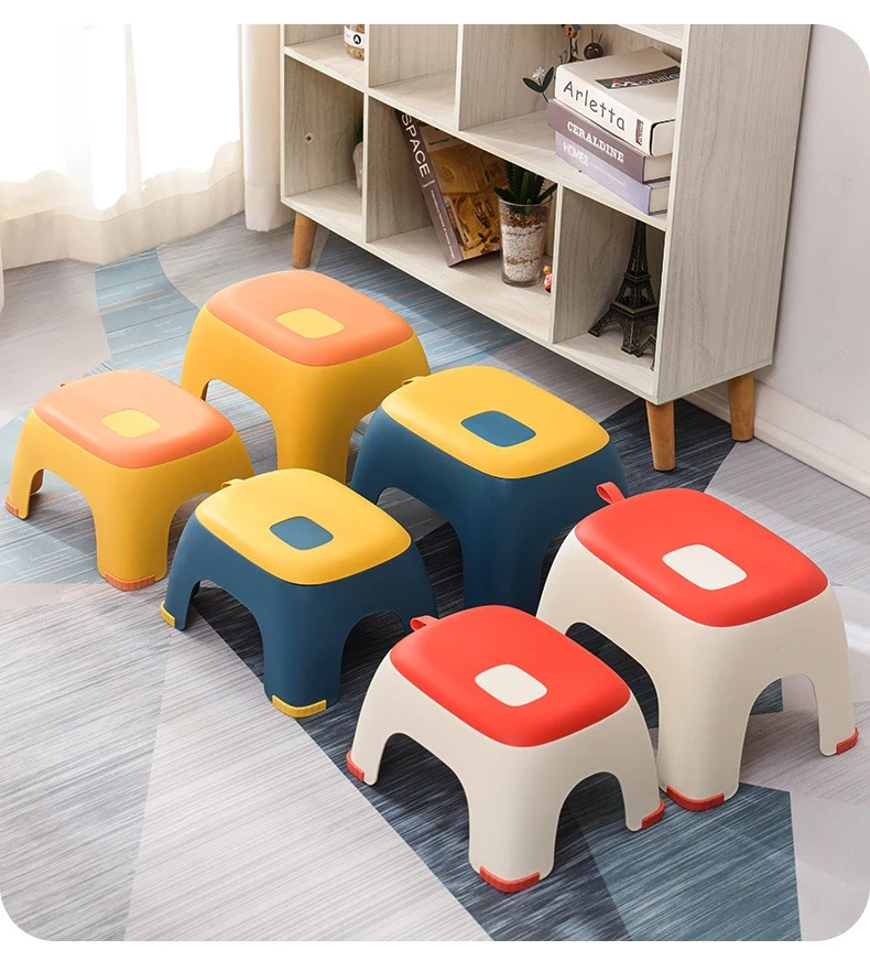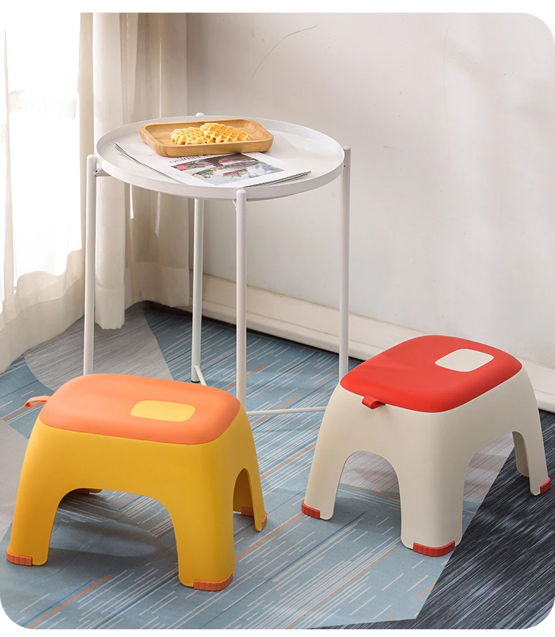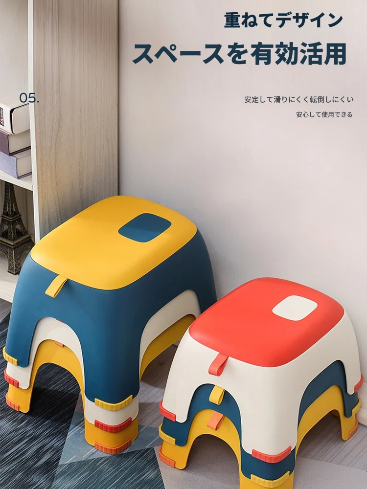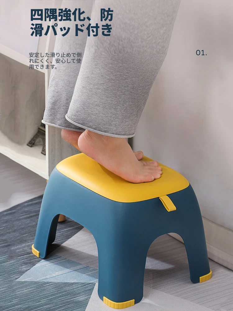 家庭用ミニスツール - おしゃれで厚みのあるプラスチック製、滑り止め付き!リビングやバスルームで大活躍の人気アイテム。快適な座り心地で、どんな場所にもぴったり!