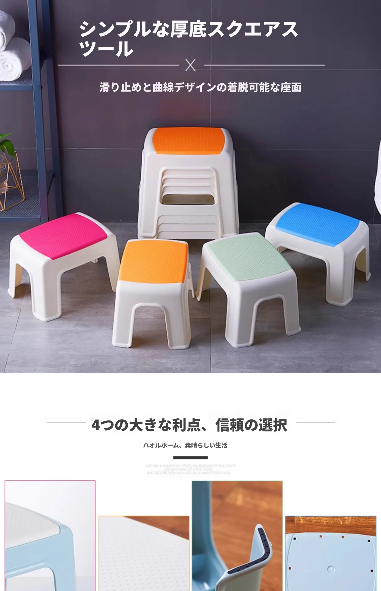 厚手で頑丈な家庭用プラスチックスツール!リビングやバスルームにぴったりのコンパクトサイズ。大人も子供も安心して使える安定感抜群のスクエアベンチ!おしゃれで便利なアイテムです!