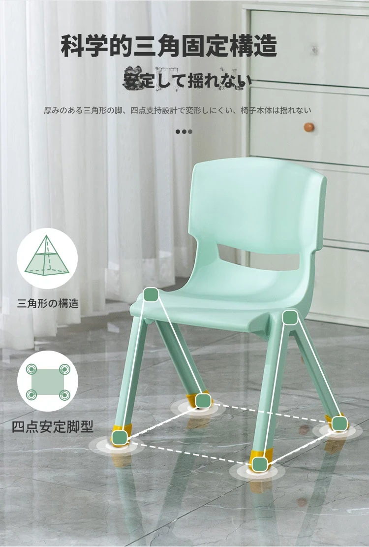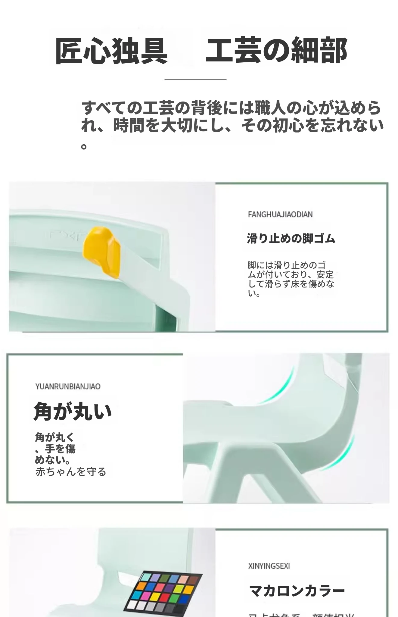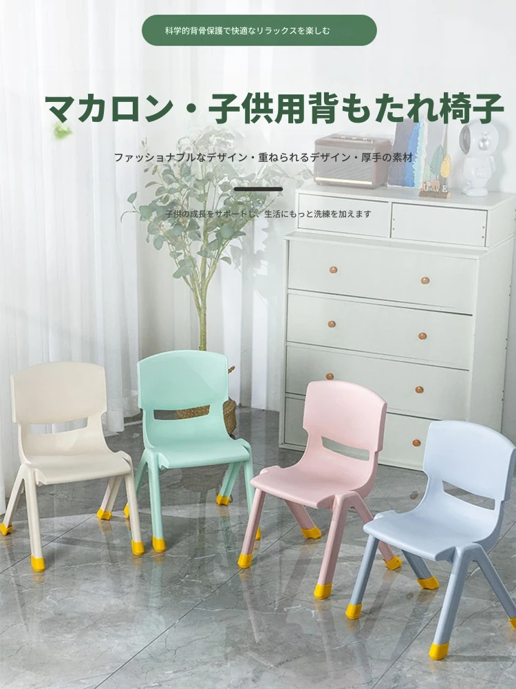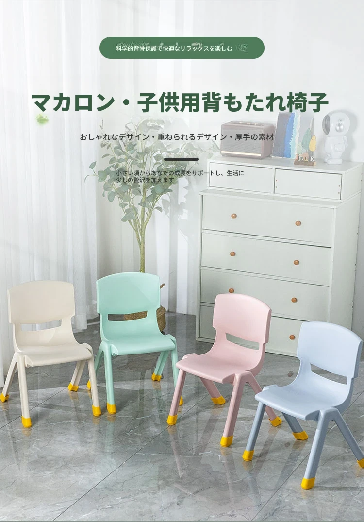 厚手プラスチック製キッズチェア|幼稚園用育成背もたれ付き|赤ちゃん用の家庭用スツール|滑り止め機能付きで安心!