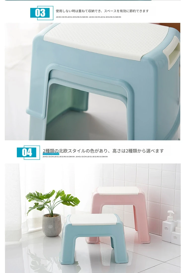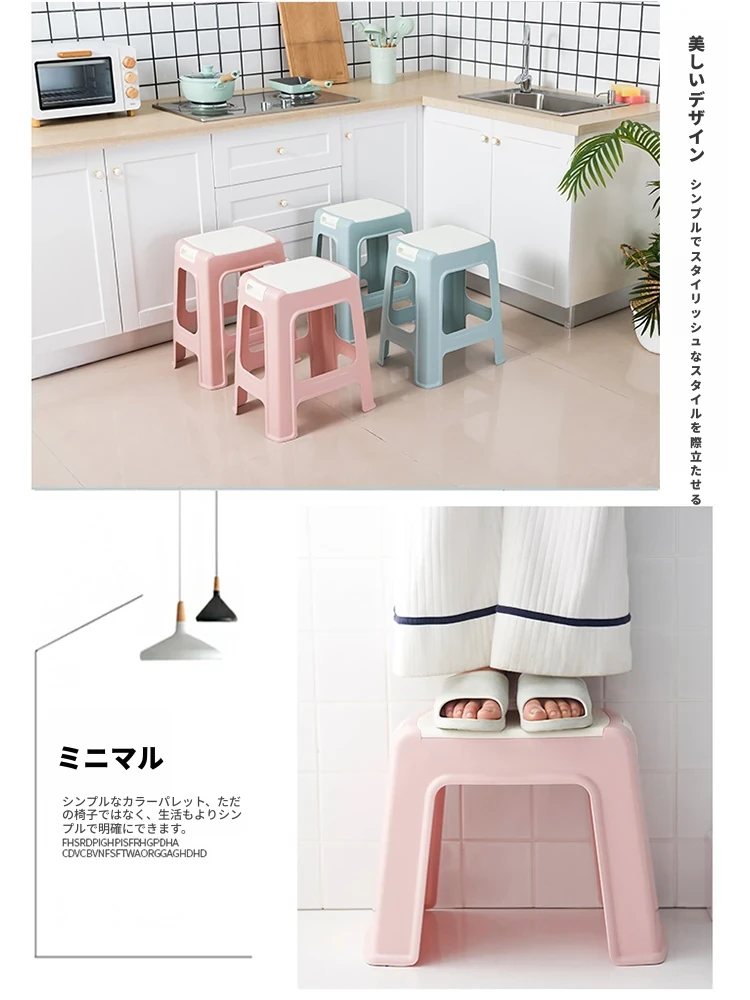 厚手作りの家庭用プラスチックスツール!リビングやバスルームに最適なスタッキング可能な高椅子。子供用バスルームにもぴったりな滑り止め付きの安定した低椅子!収納も簡単でスペースを有効活用!