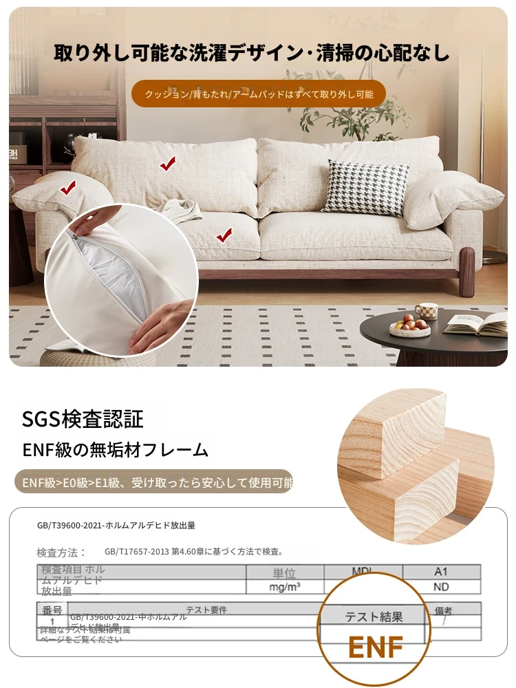 輸入ENFホワイトウッドフレーム+取り外し可能な座包/クッション/アームレストパック